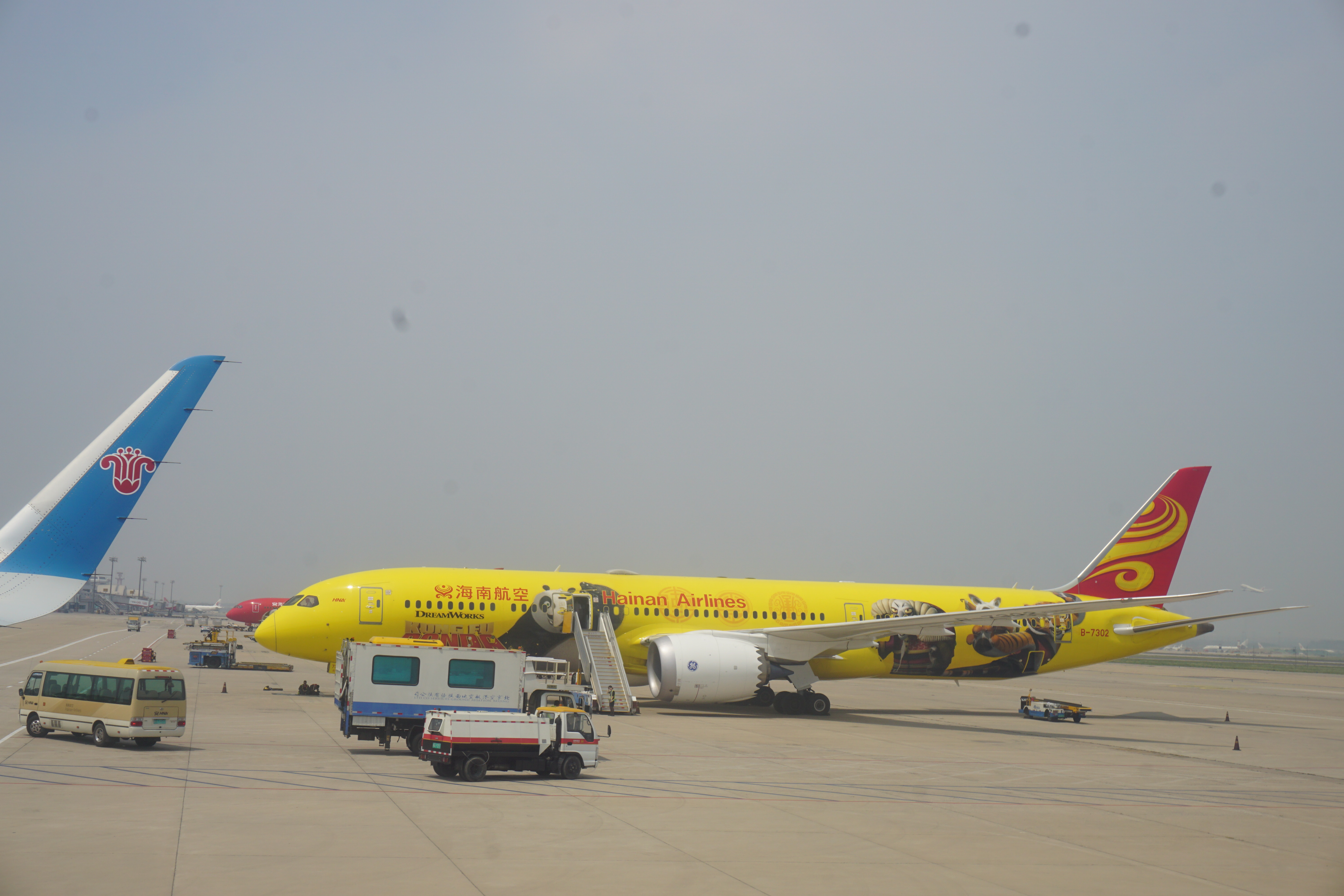 바로 비행기 앞에 중국어가 적혀 있다