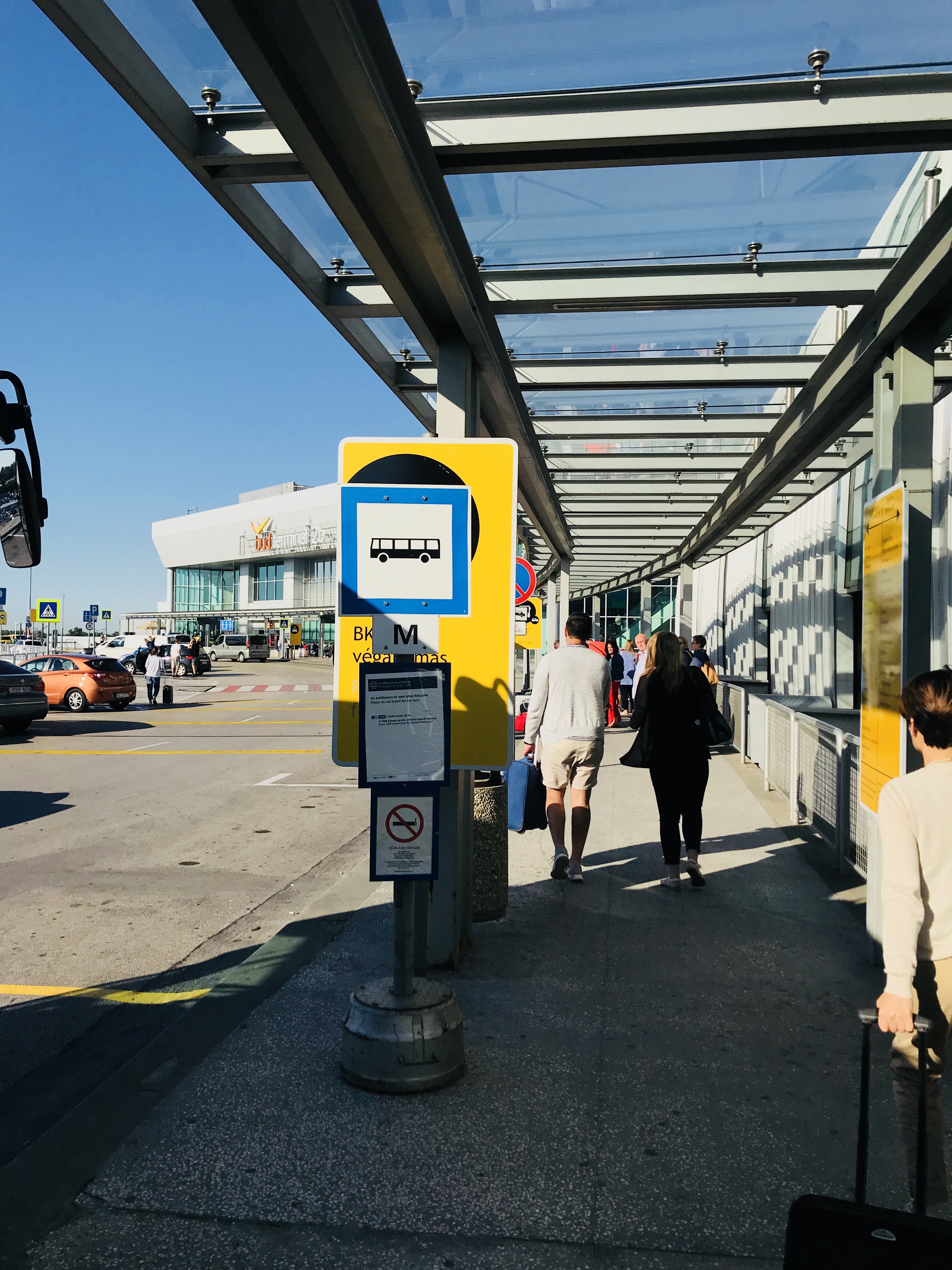 공항으로 가는 버스를 기다리는 중