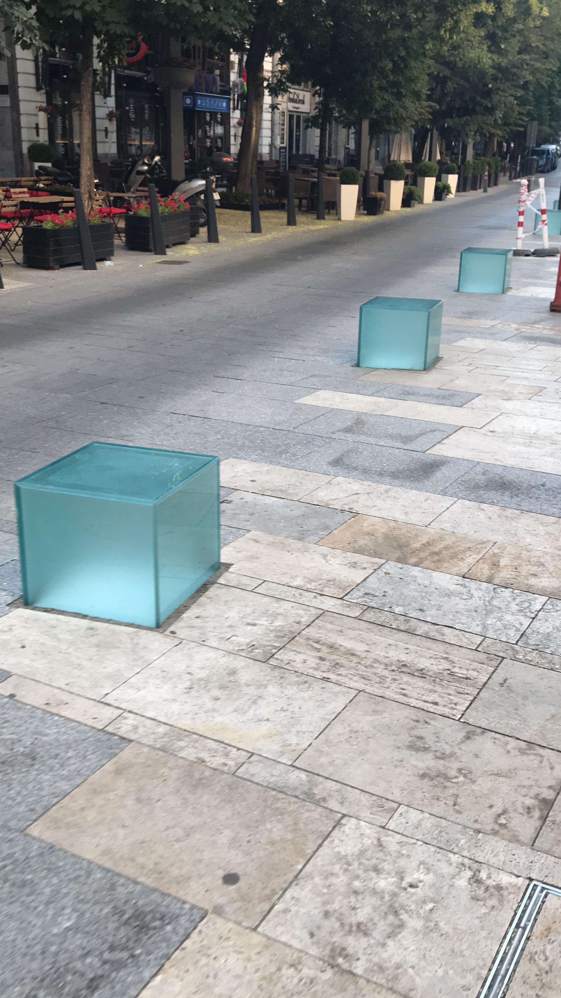 이상한 유리 박스가 길에 놓여있다