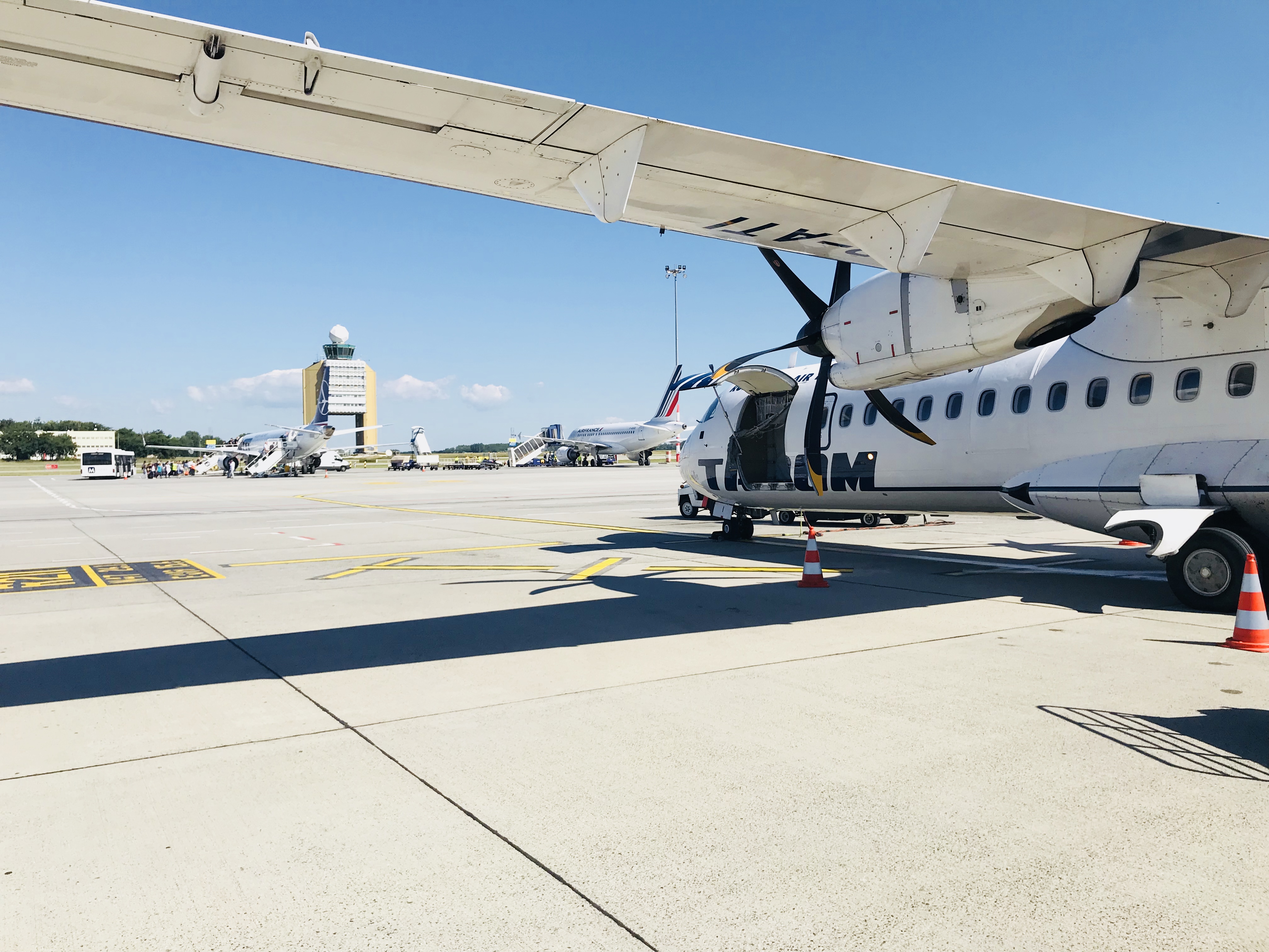 보딩브릿지를 누리지 못하고 비행기에 직접 올라타다보니 이렇게 공항 건물도 한눈에 볼 수 있다