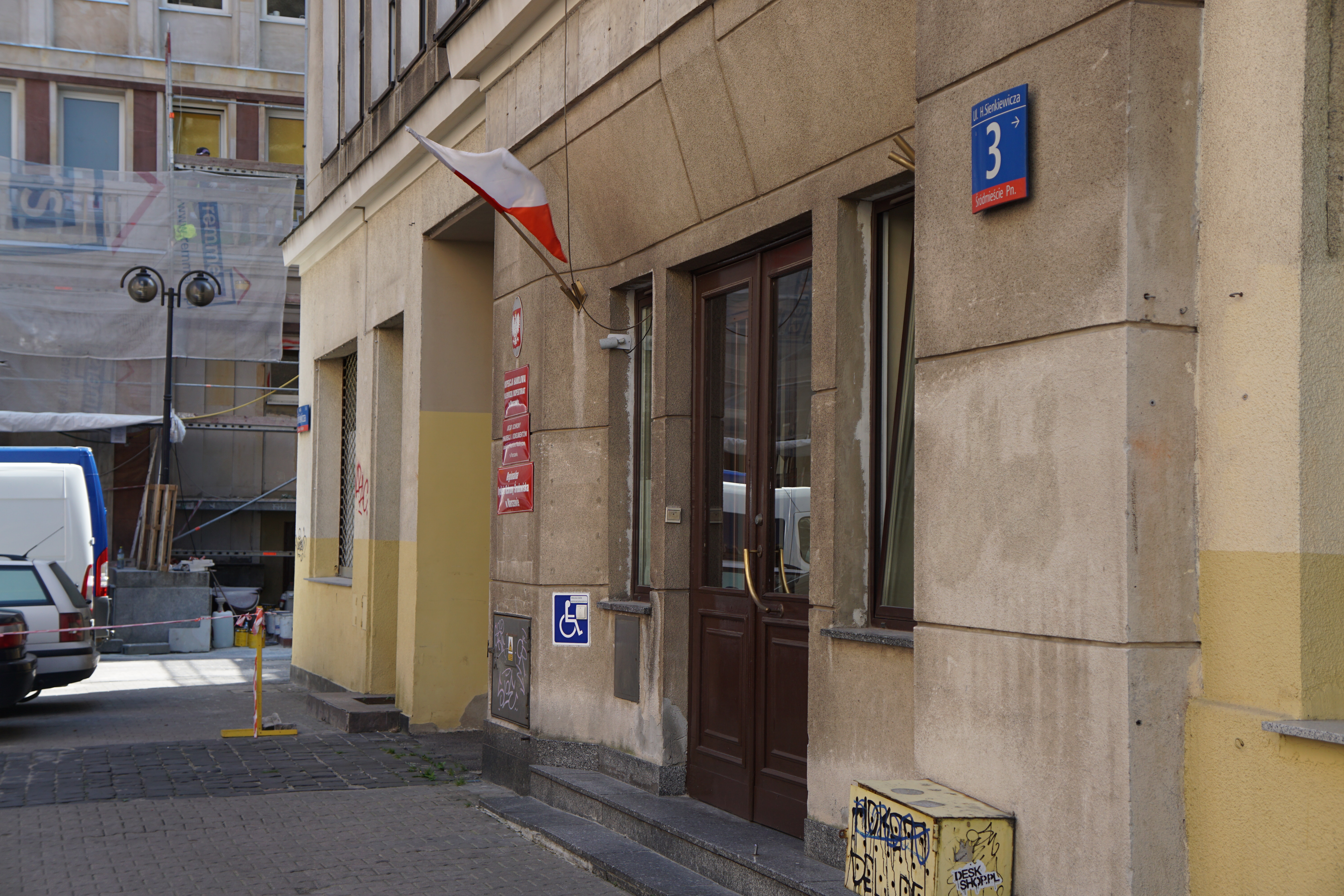 폴란드 국기가 걸린 관공서 건물
