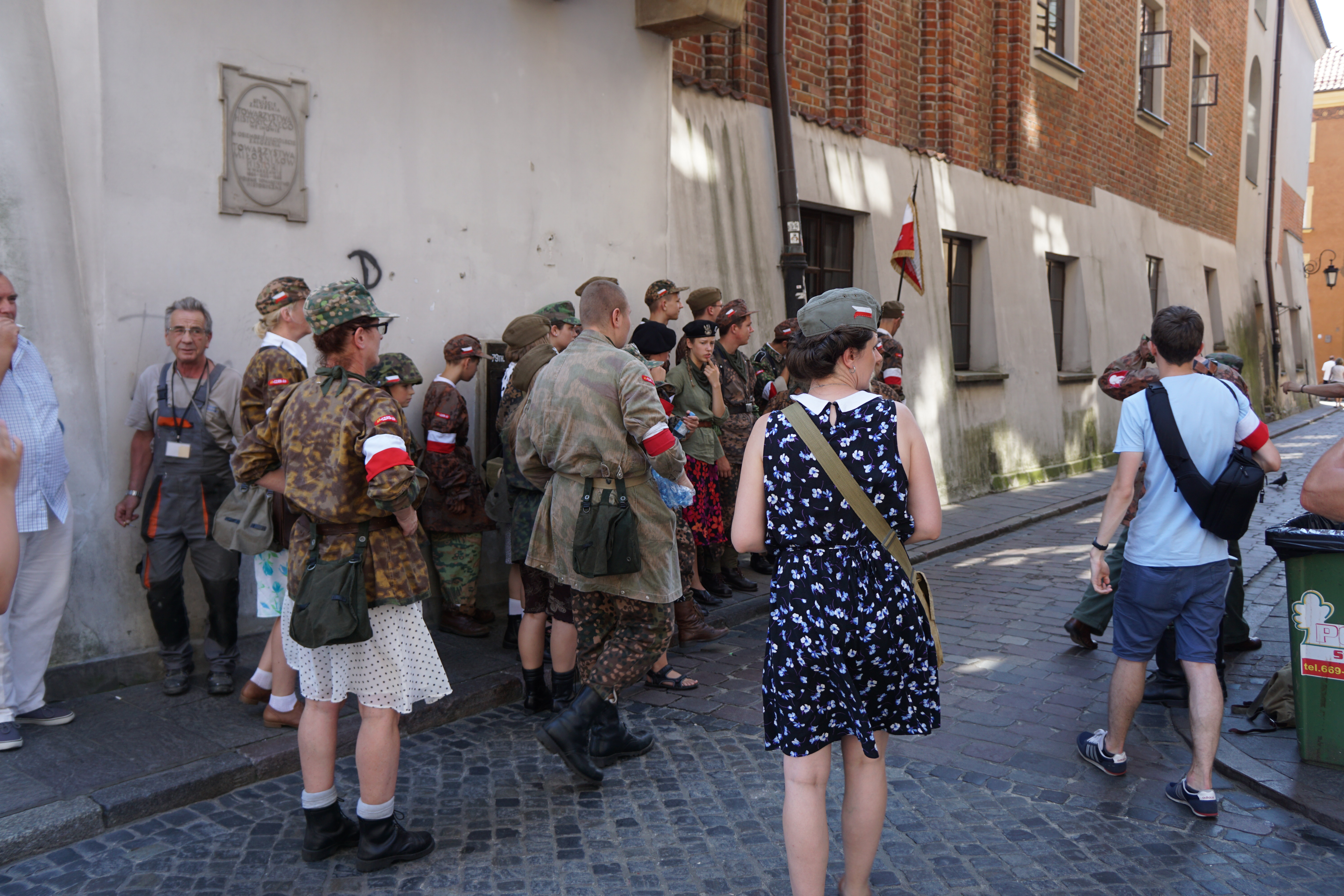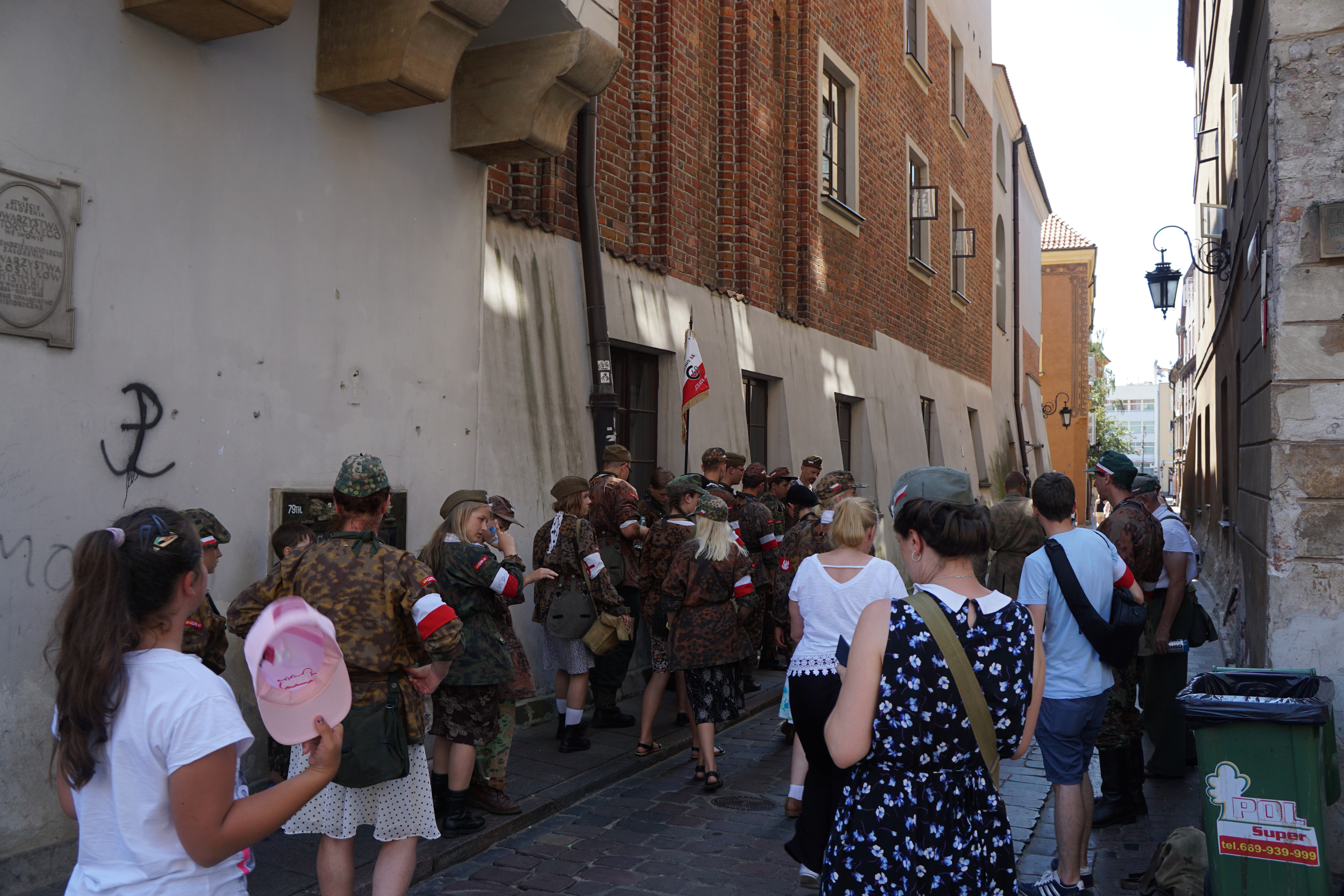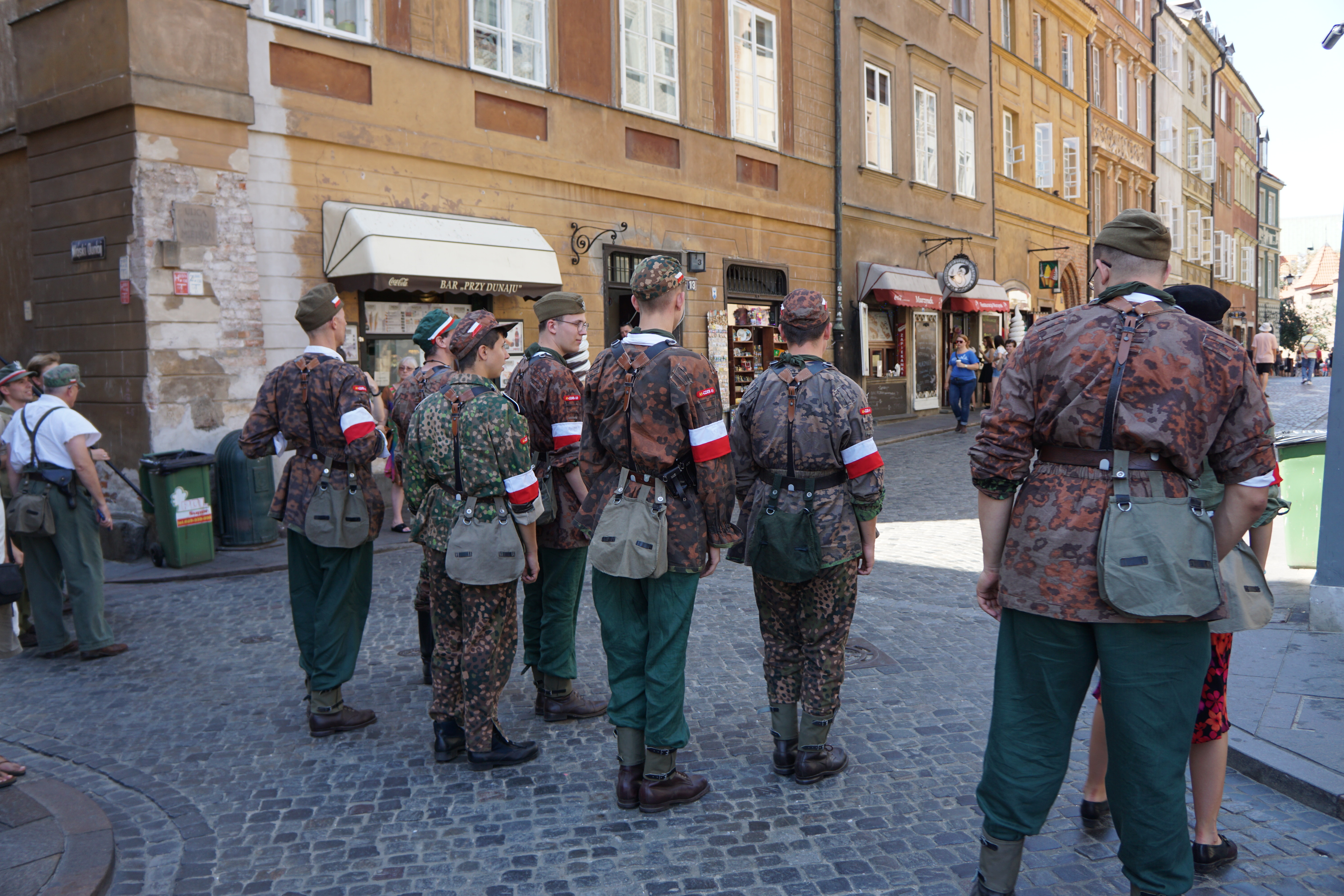 폴란드 국기를 팔에 매고 군사훈련 비슷한 걸 체험하고 있었다