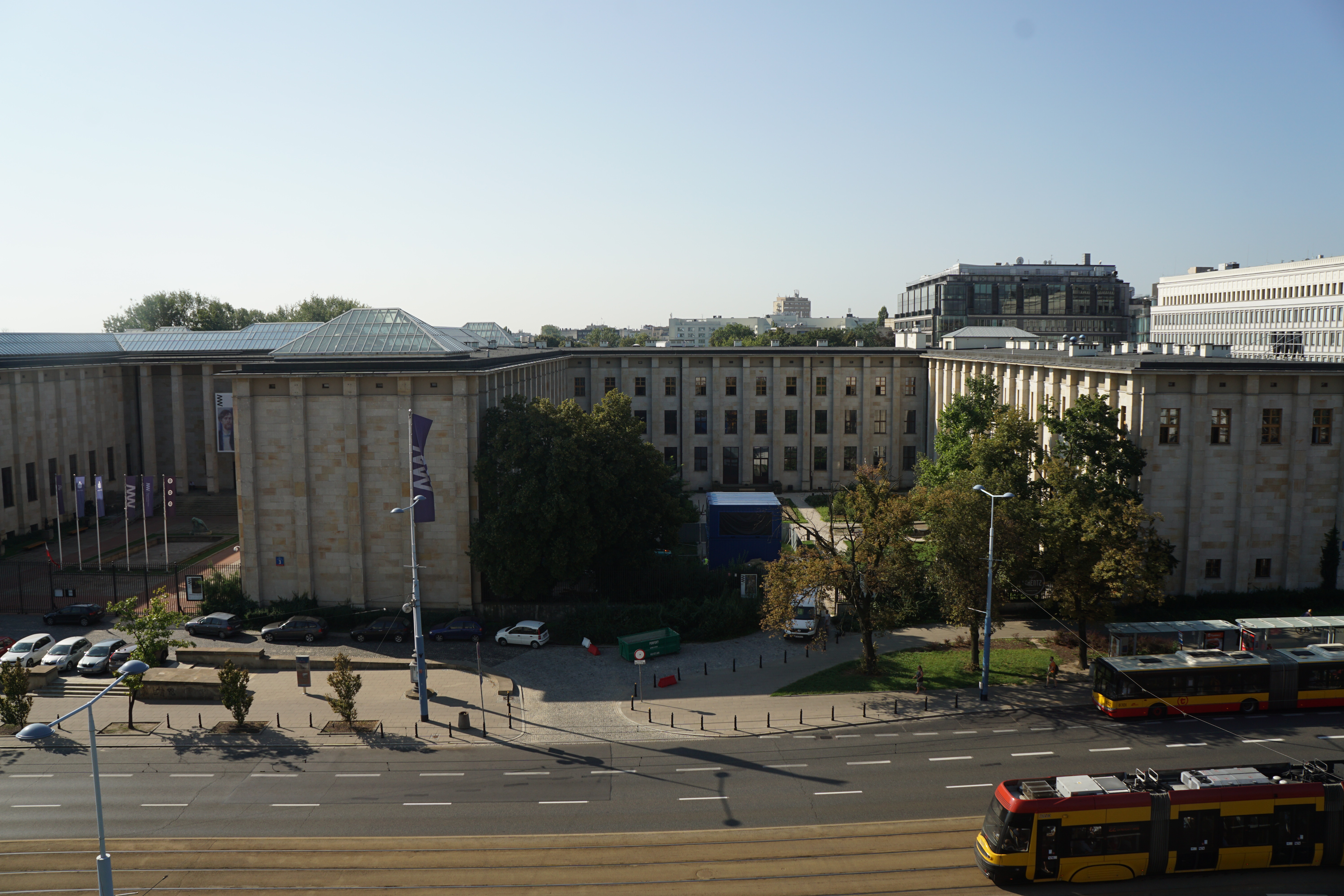 알파벳 E처럼 생긴 건물은 바르샤바 국립미술관이다