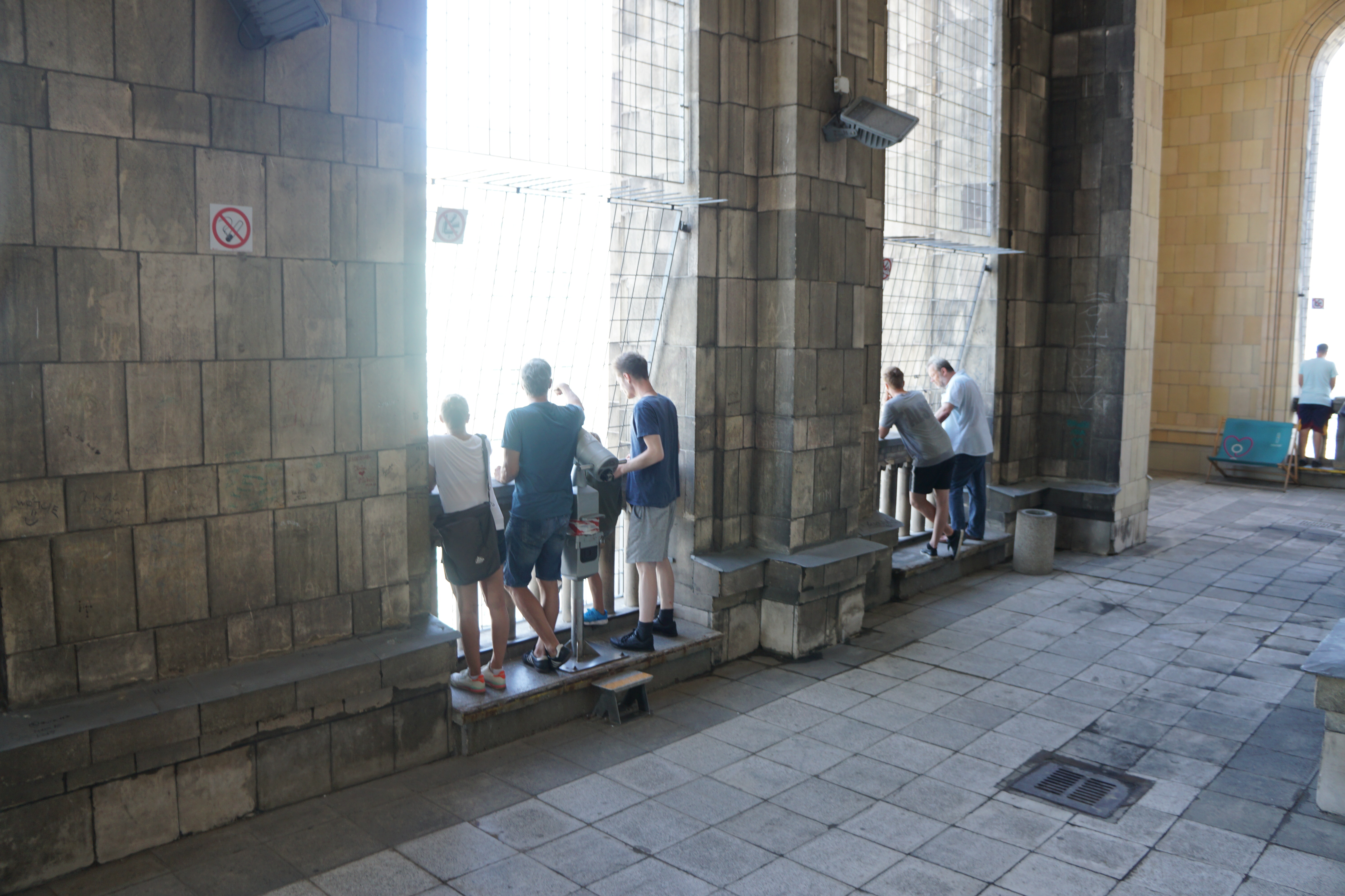 철창 너머로 도시의 풍경을 바라볼 수 있다