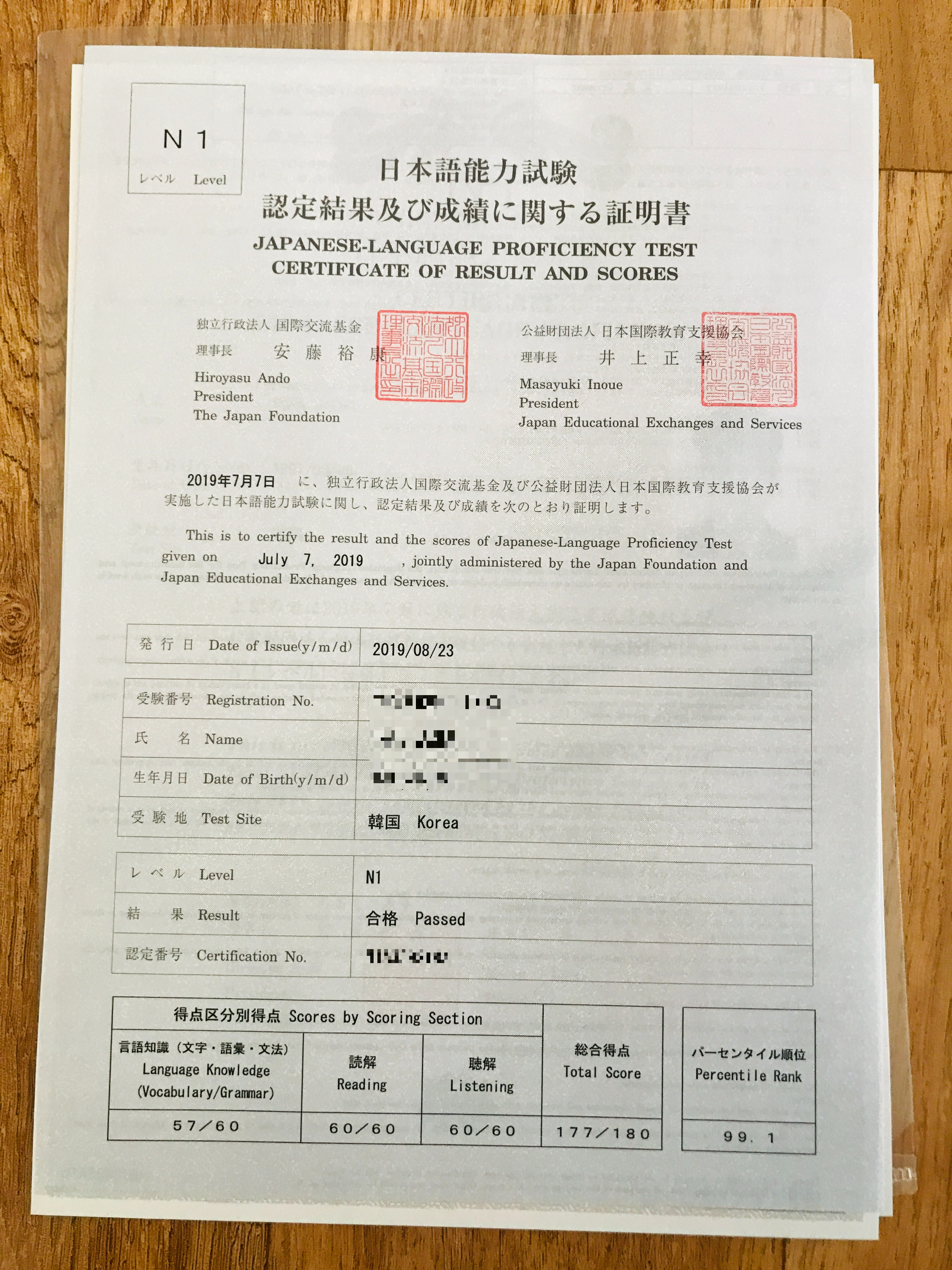 저번에 시험친 거 결과 나왔다