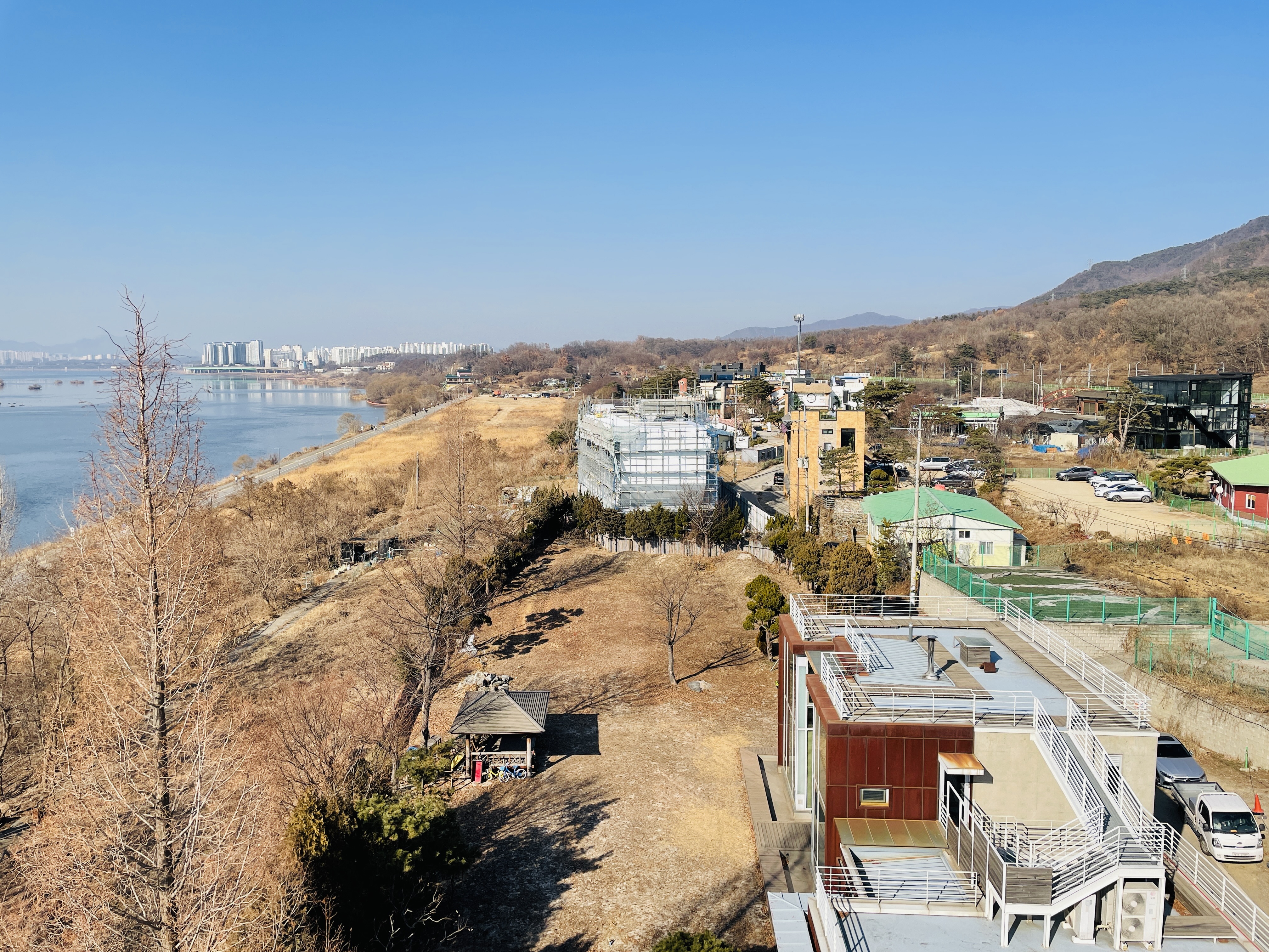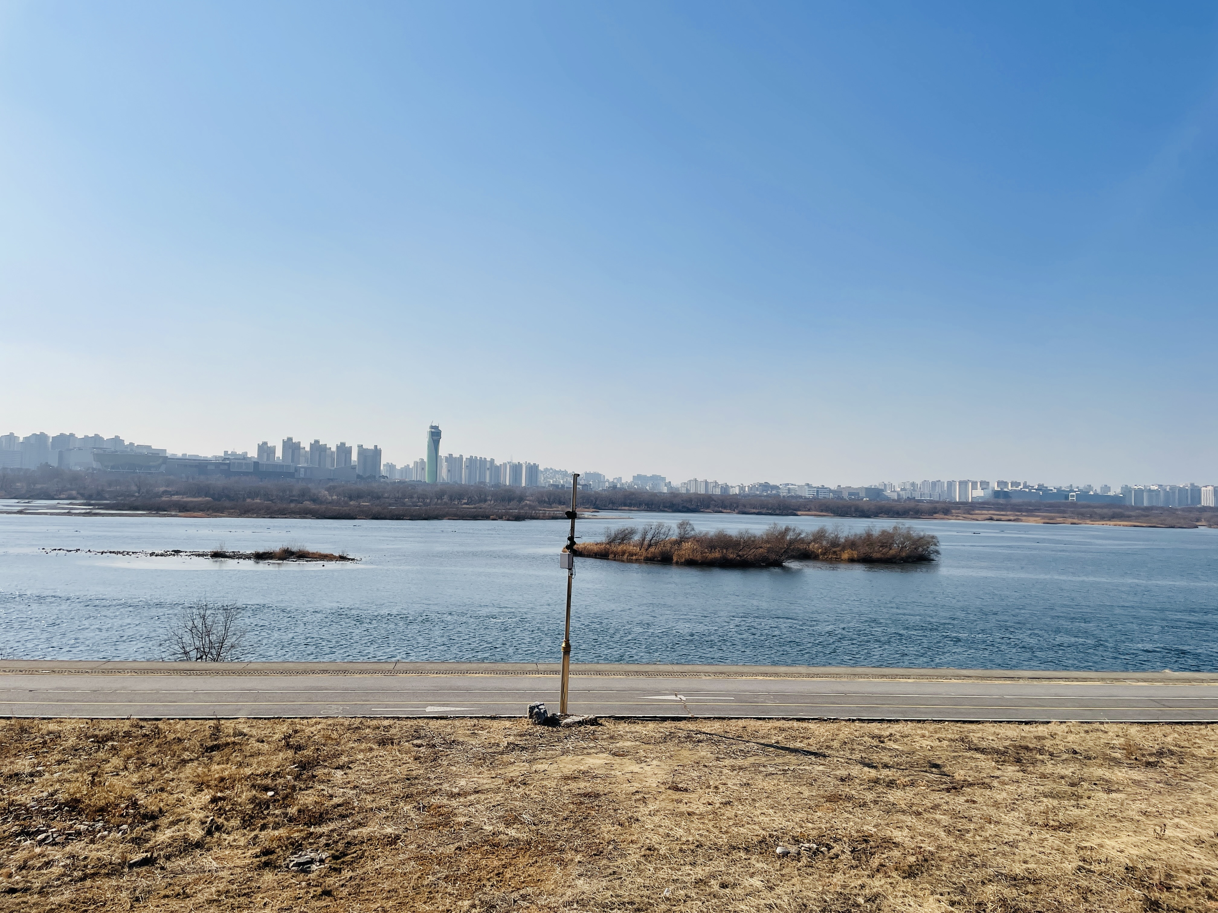 한강과 유니온타워가 보인다