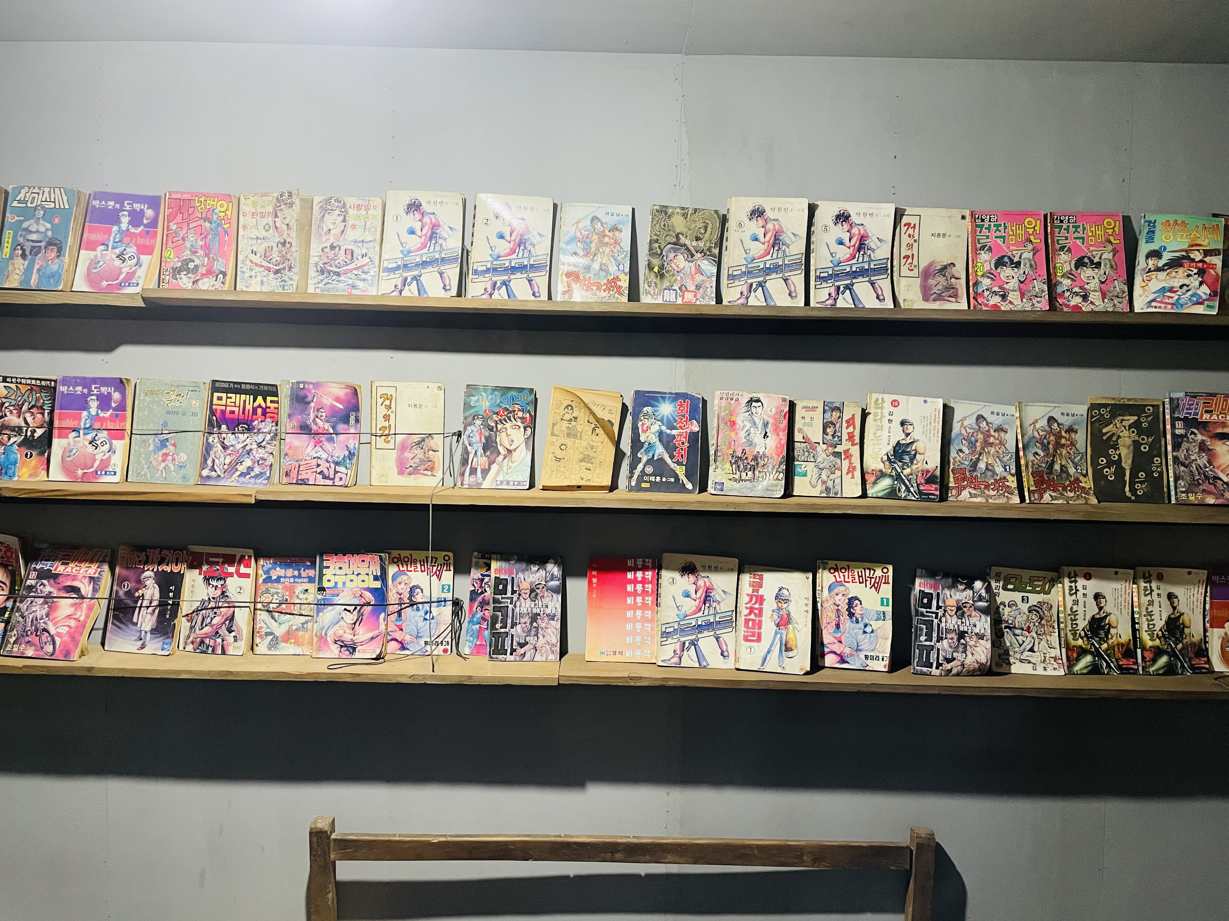 선반에 놓인 옛날 만화책