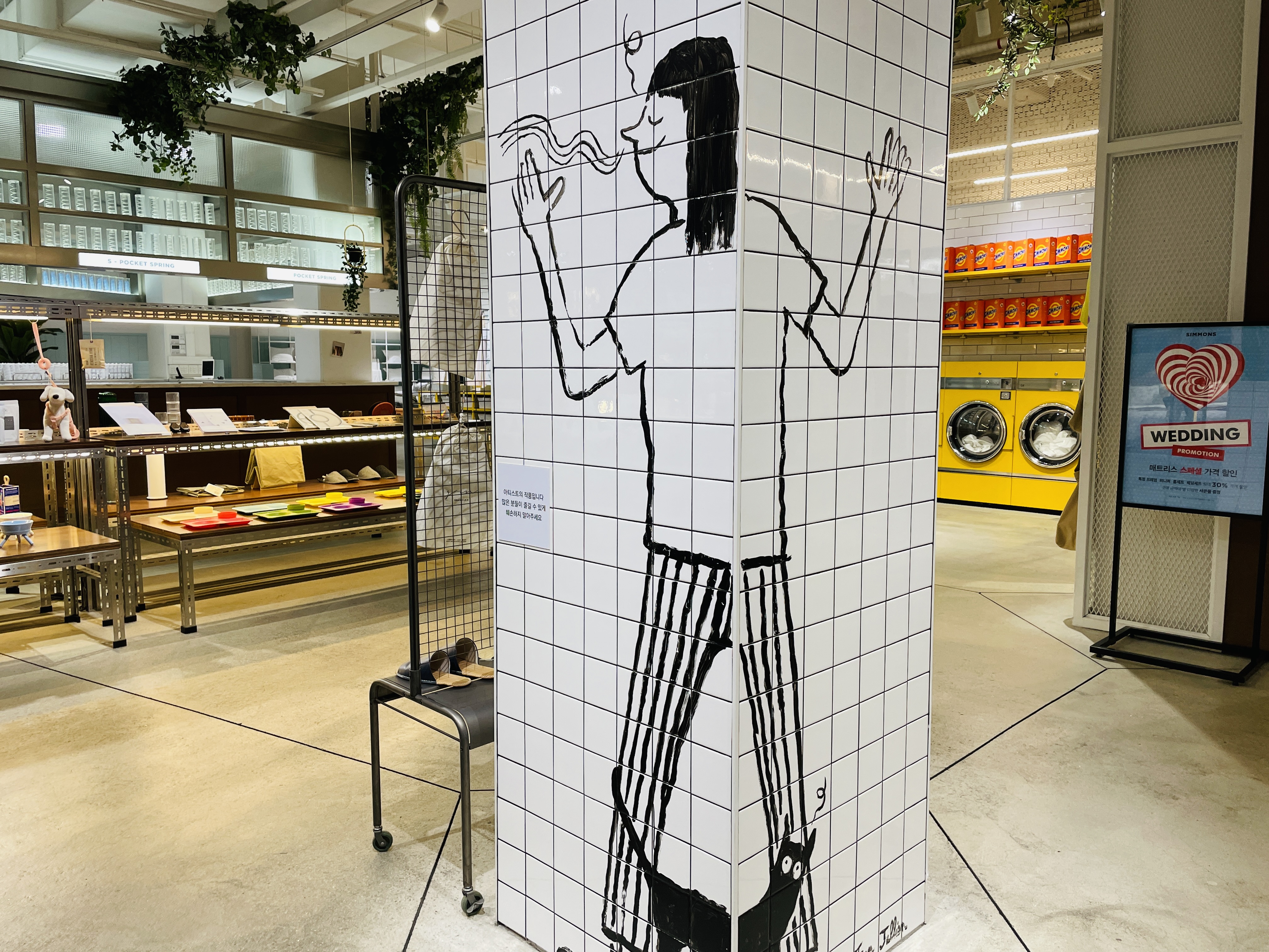시몬스 관련 물품들을 전시해두었다
