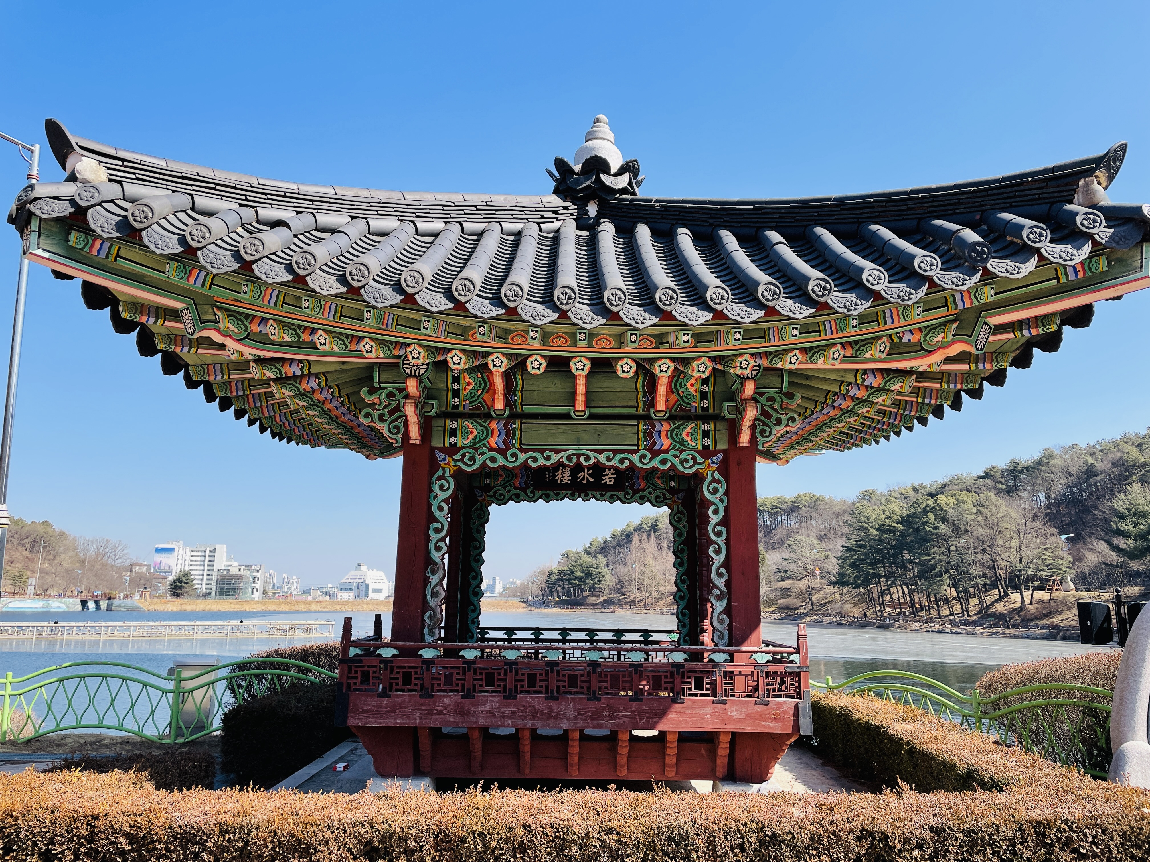 호수를 바라보는 정자
