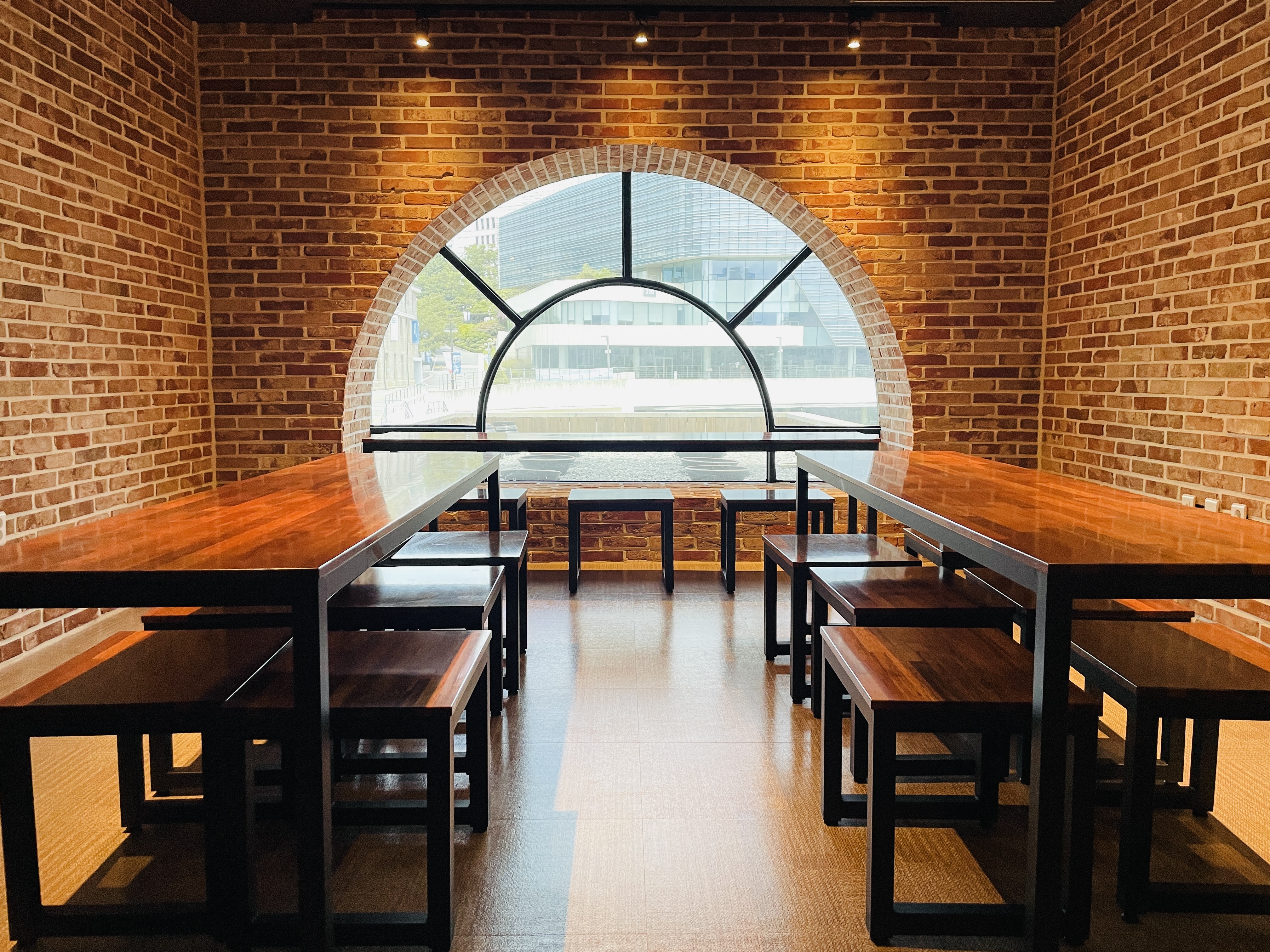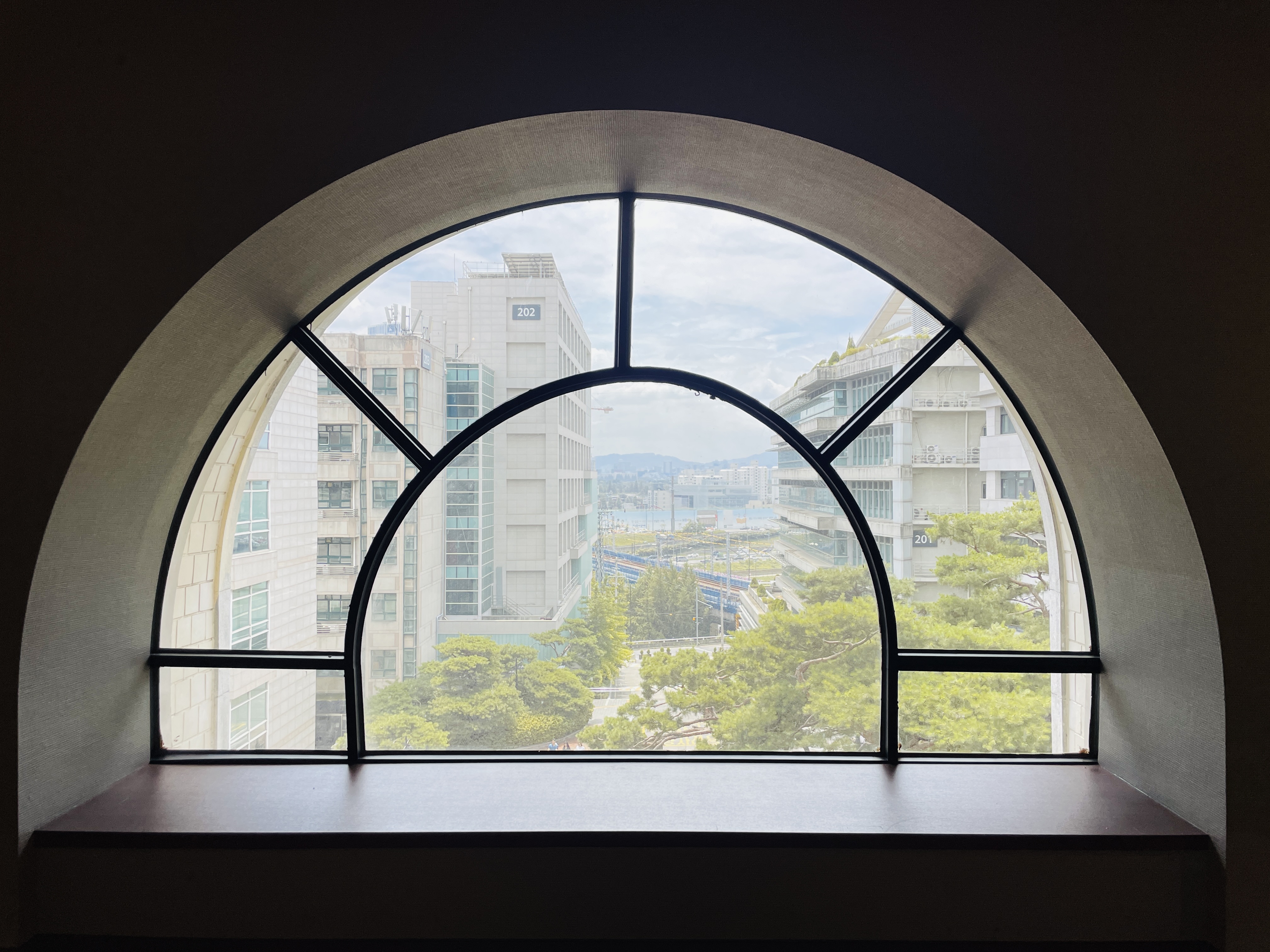 반달모양 창 너머로 보이는 풍경