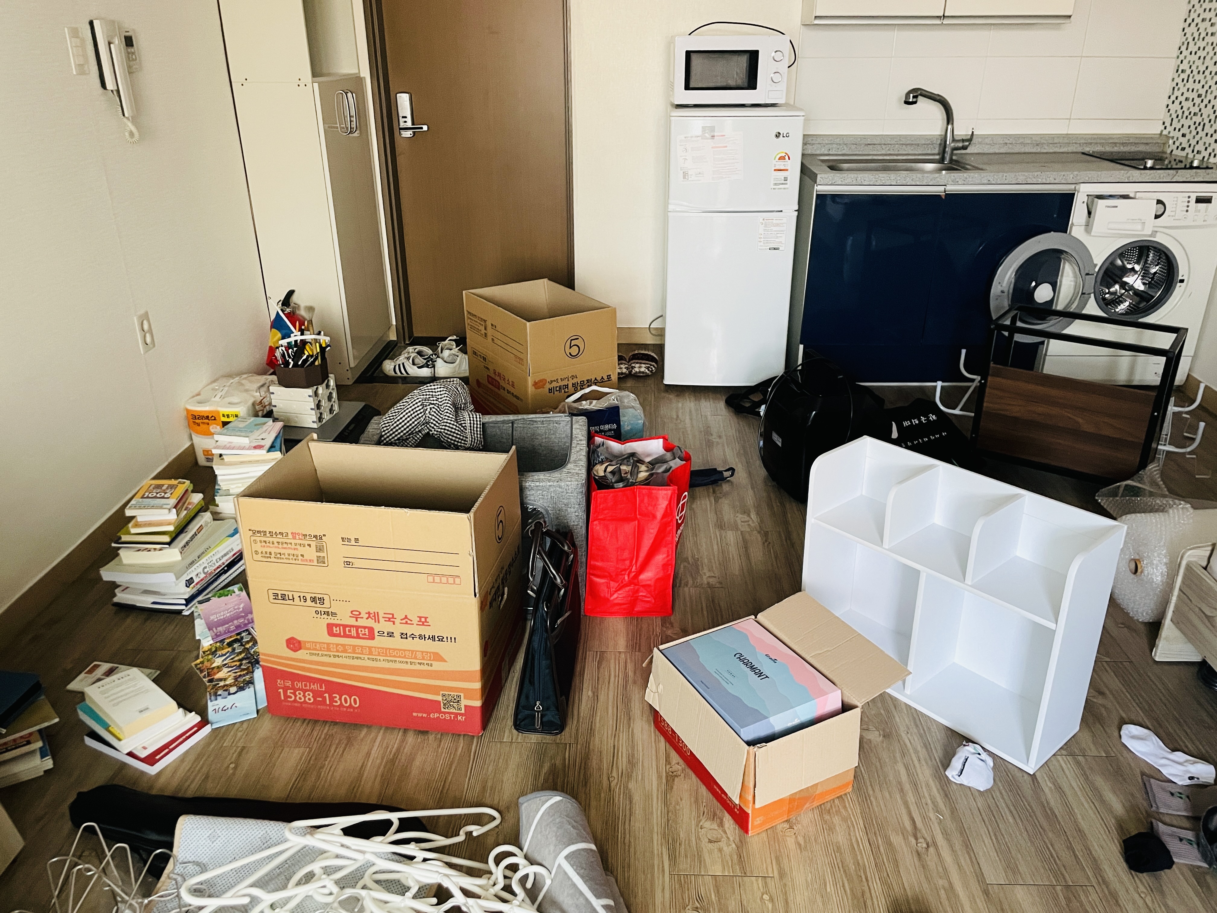 급하게 짐을 싸느라 엉망진창임