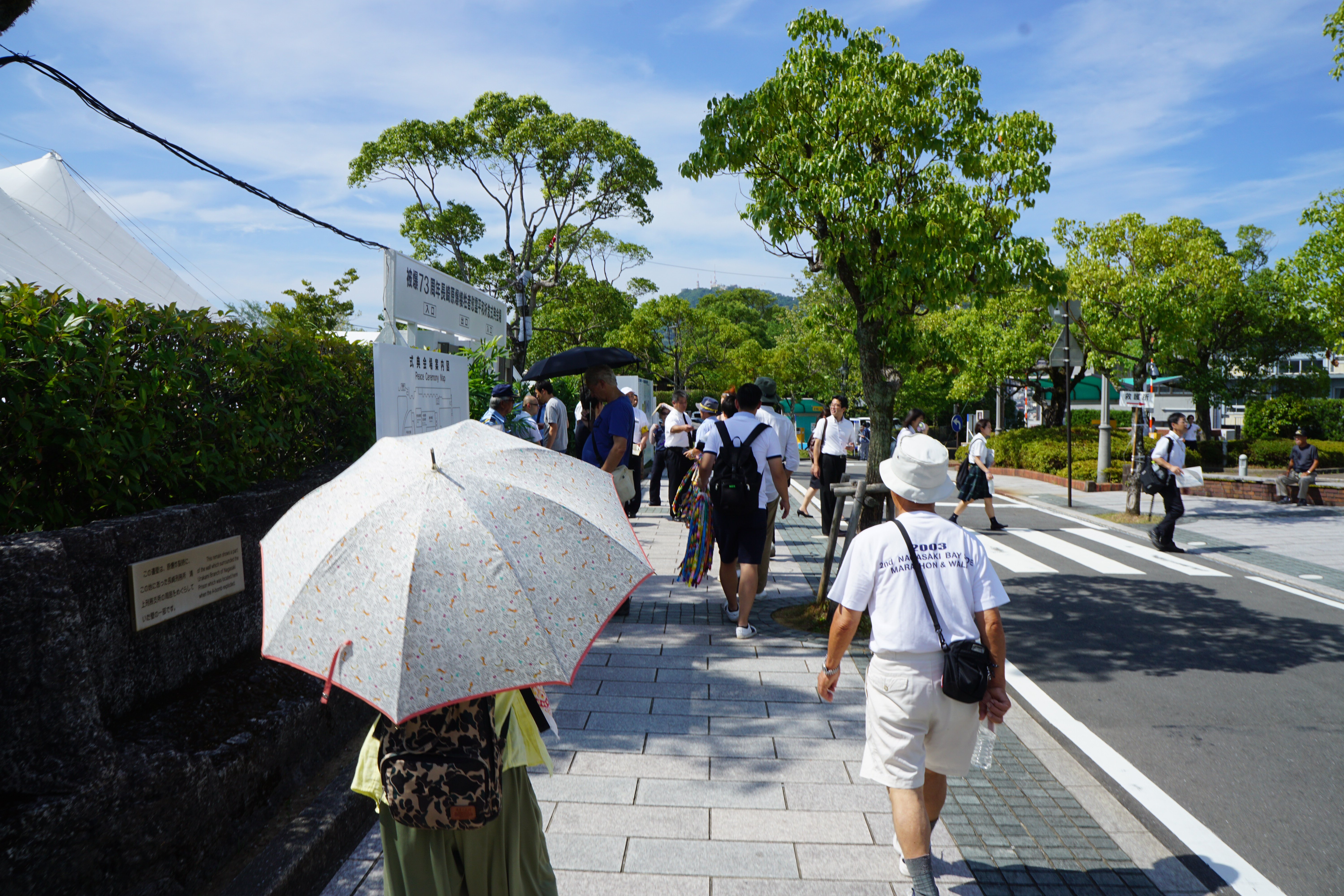 경비가 삼업하길래 뭔가 했더니 원폭희생자기념식전이 열리고 있었다