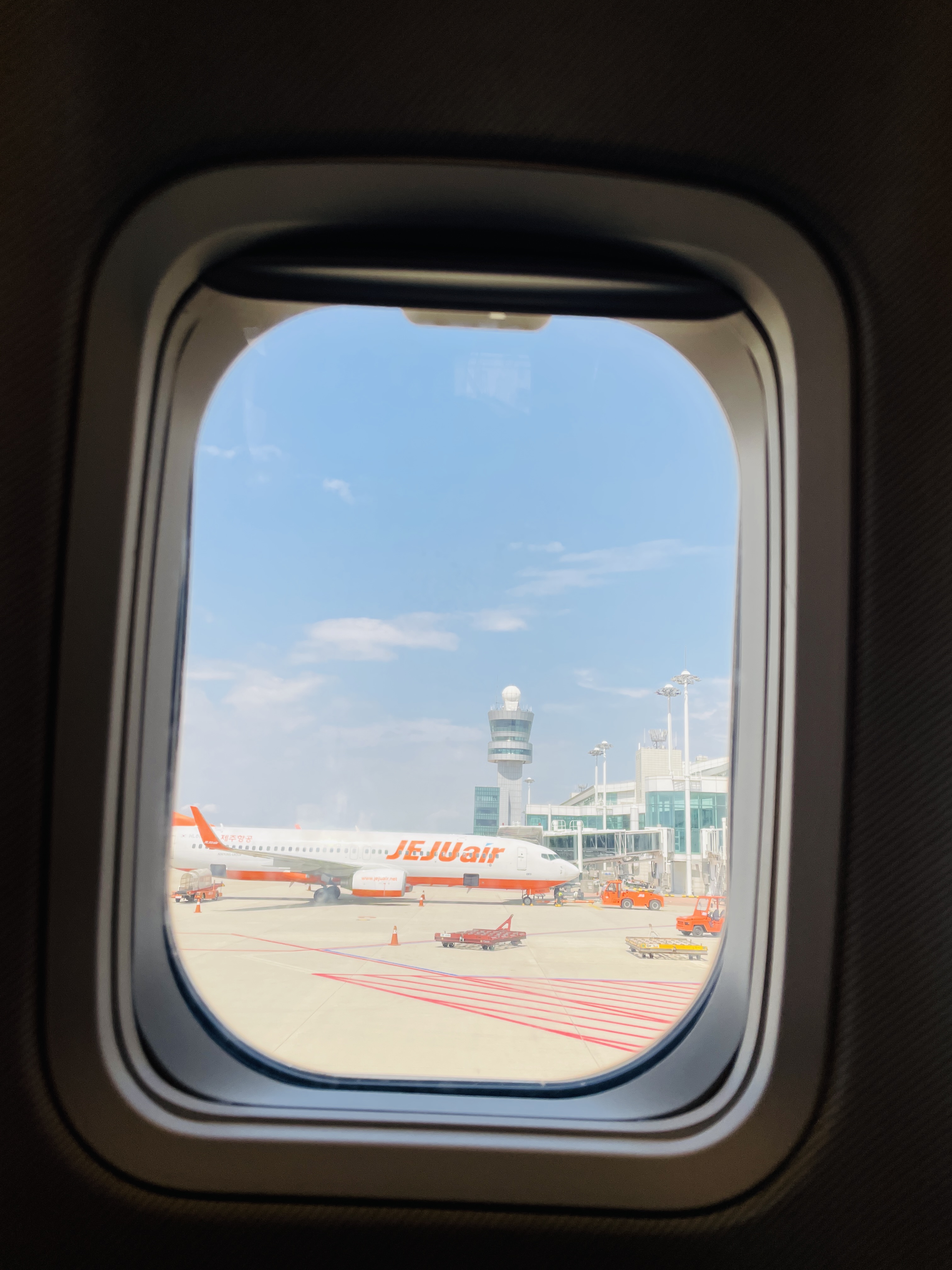 입국심사로 가는 길에 이렇게 큰 창으로 비행기를 볼 수 있었다