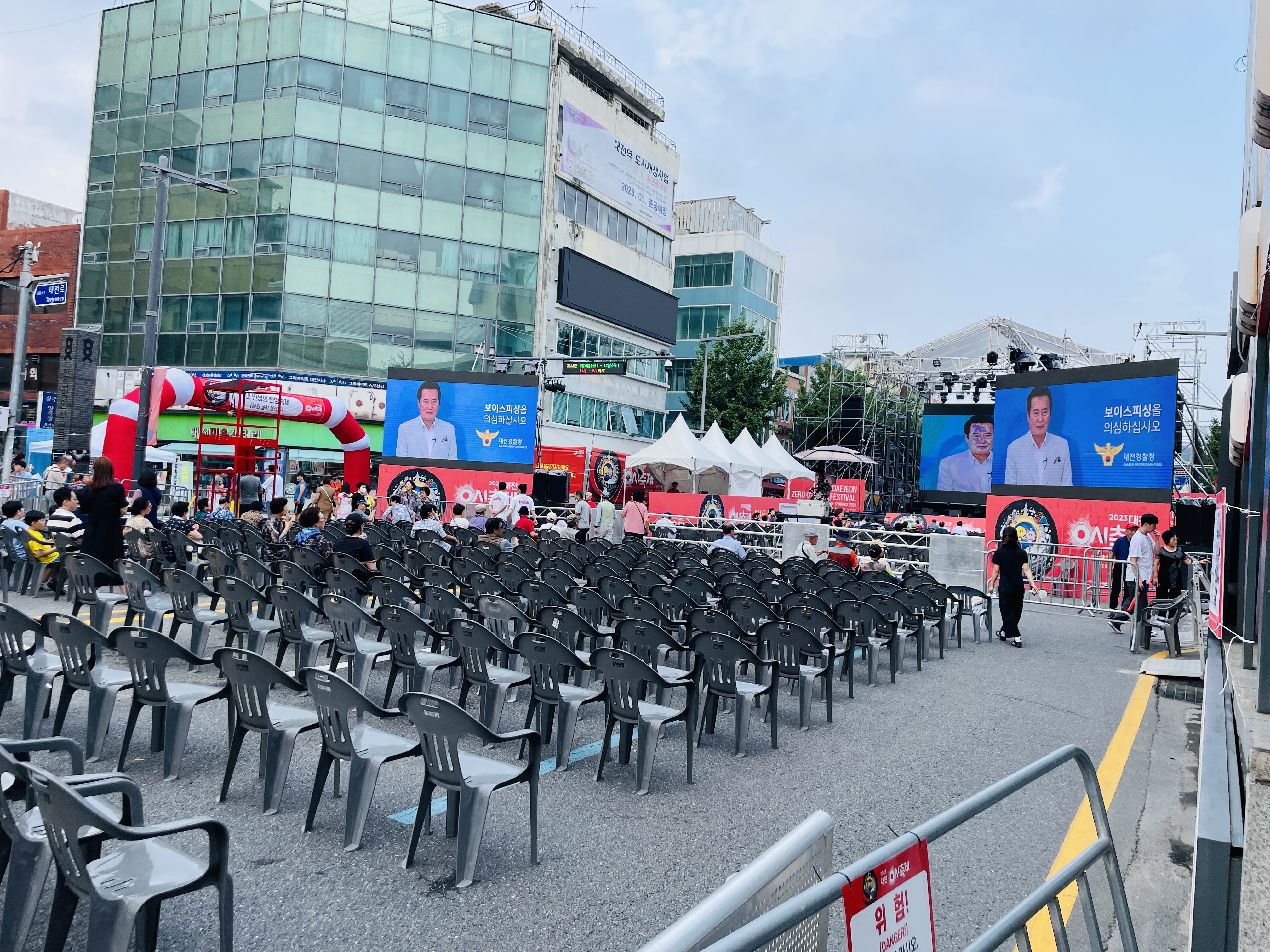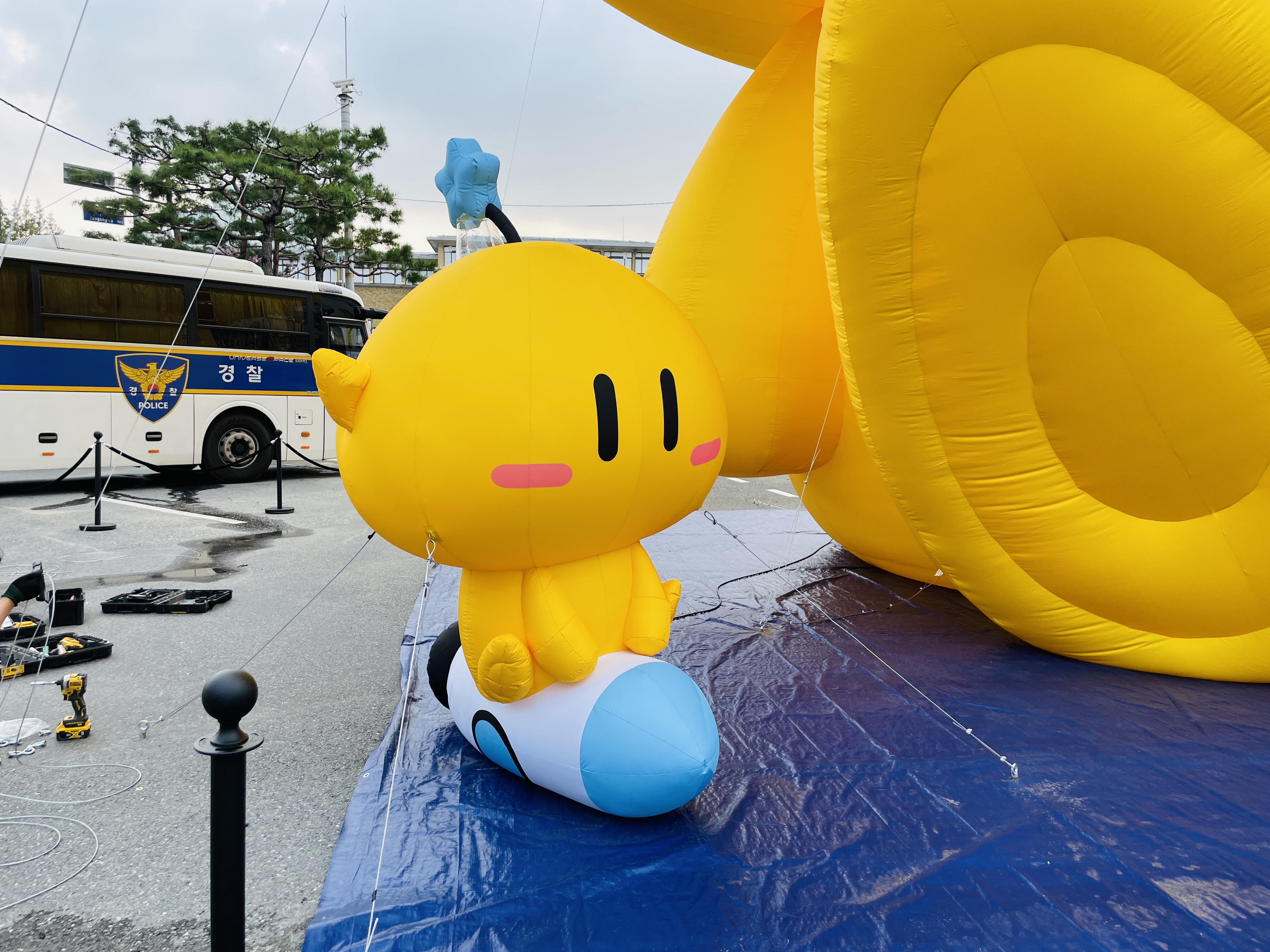 도로를 통제하고 행사 준비를 하고 있었다