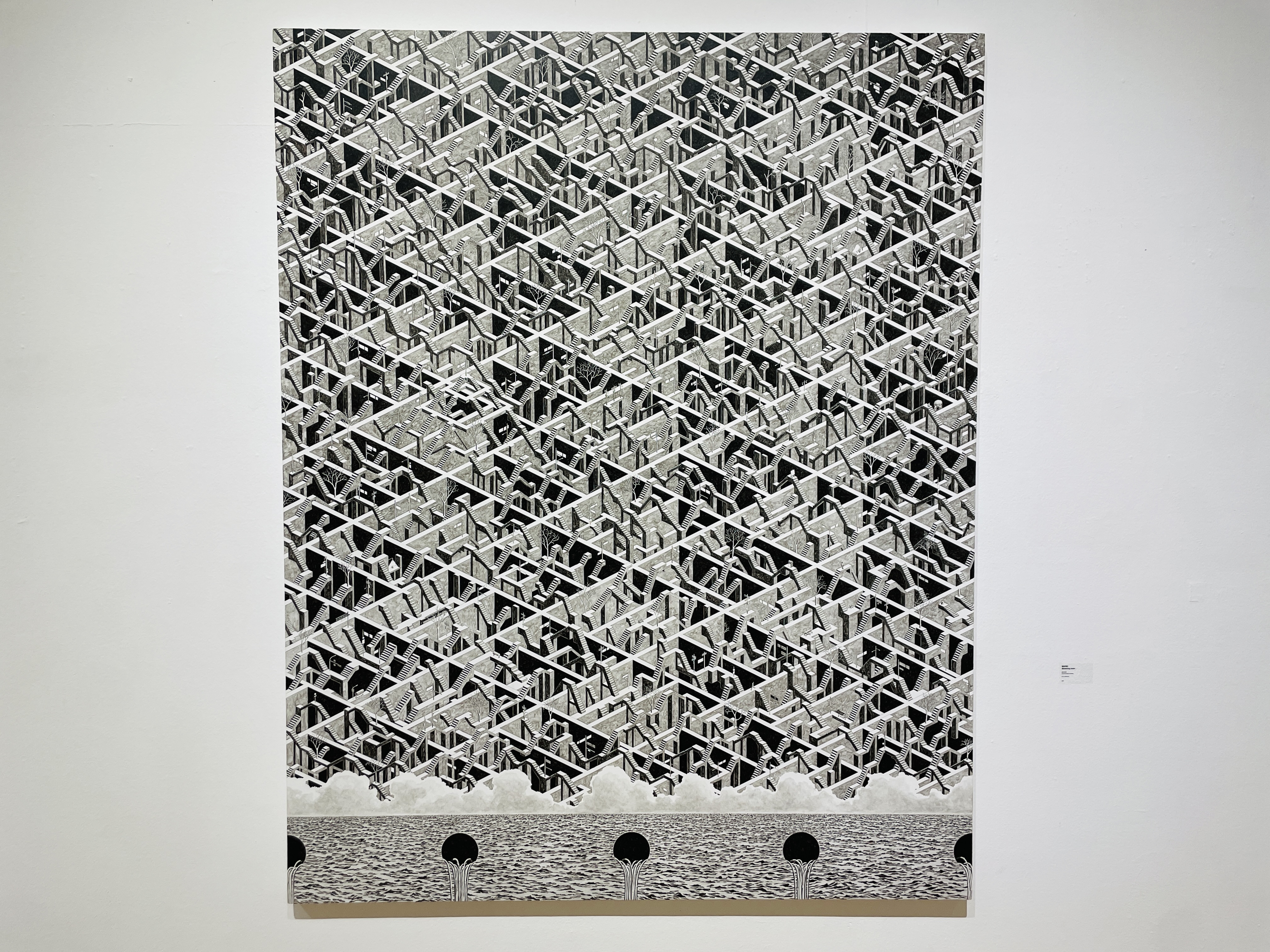 자칫 단조로울 수 있는 물결에 인공적이고 기하학적인 의문의 수직 공간을 만듦으로써 긴장감을 유발하고 우리에게 신선함을 안겨줌