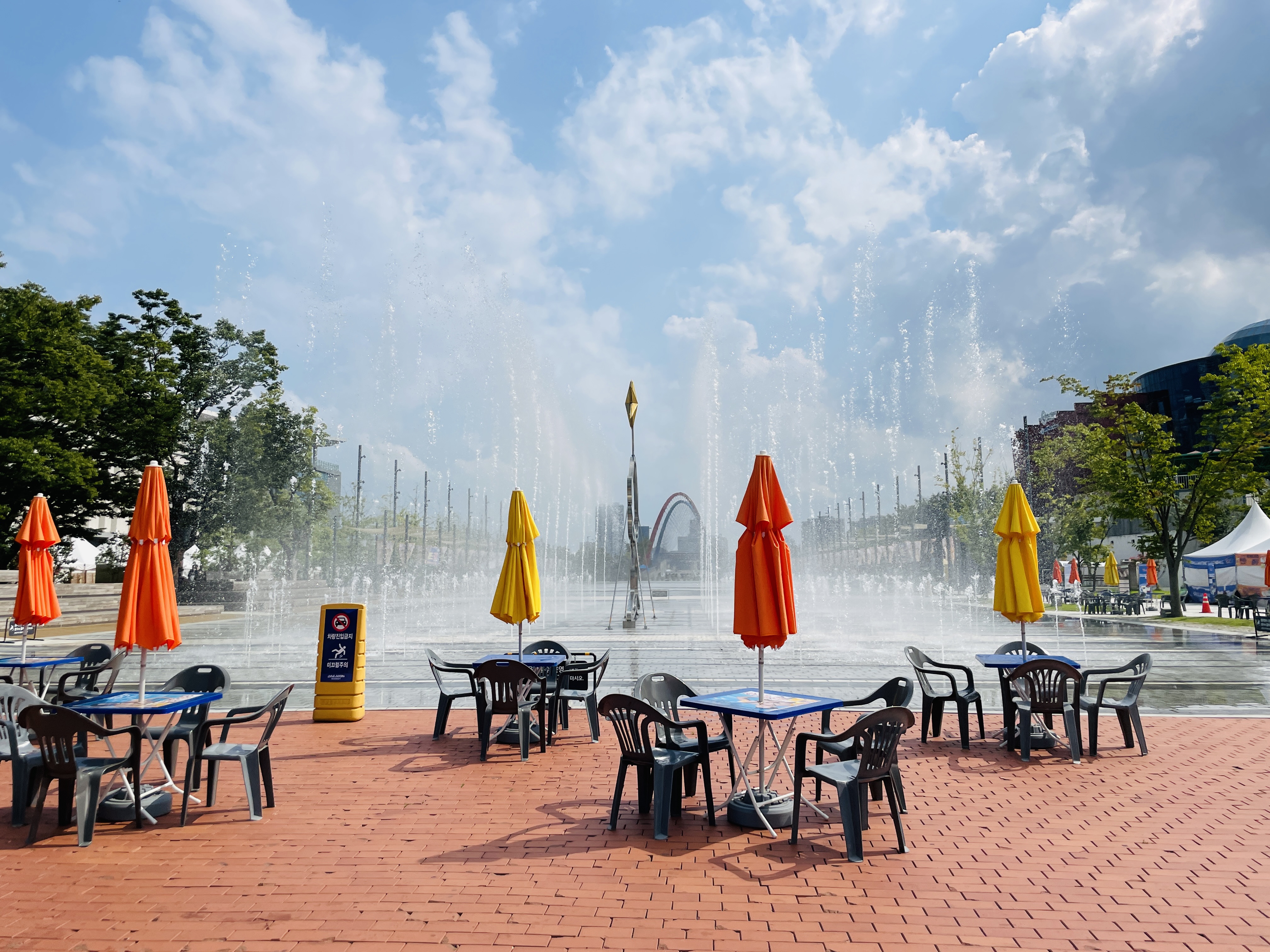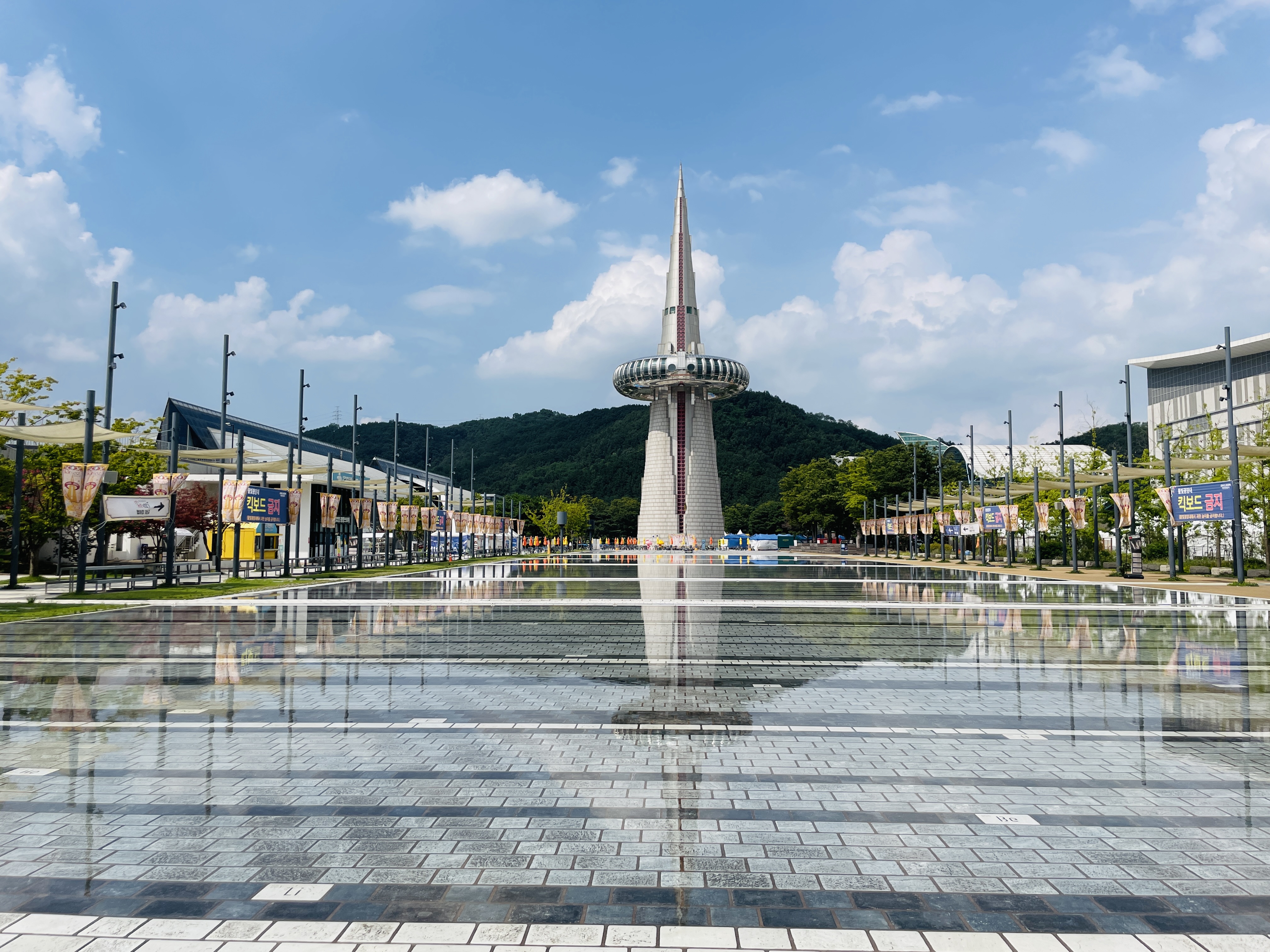 분수를 가동했는지 아까랑 다르게 물이 흥건히 고여있었다