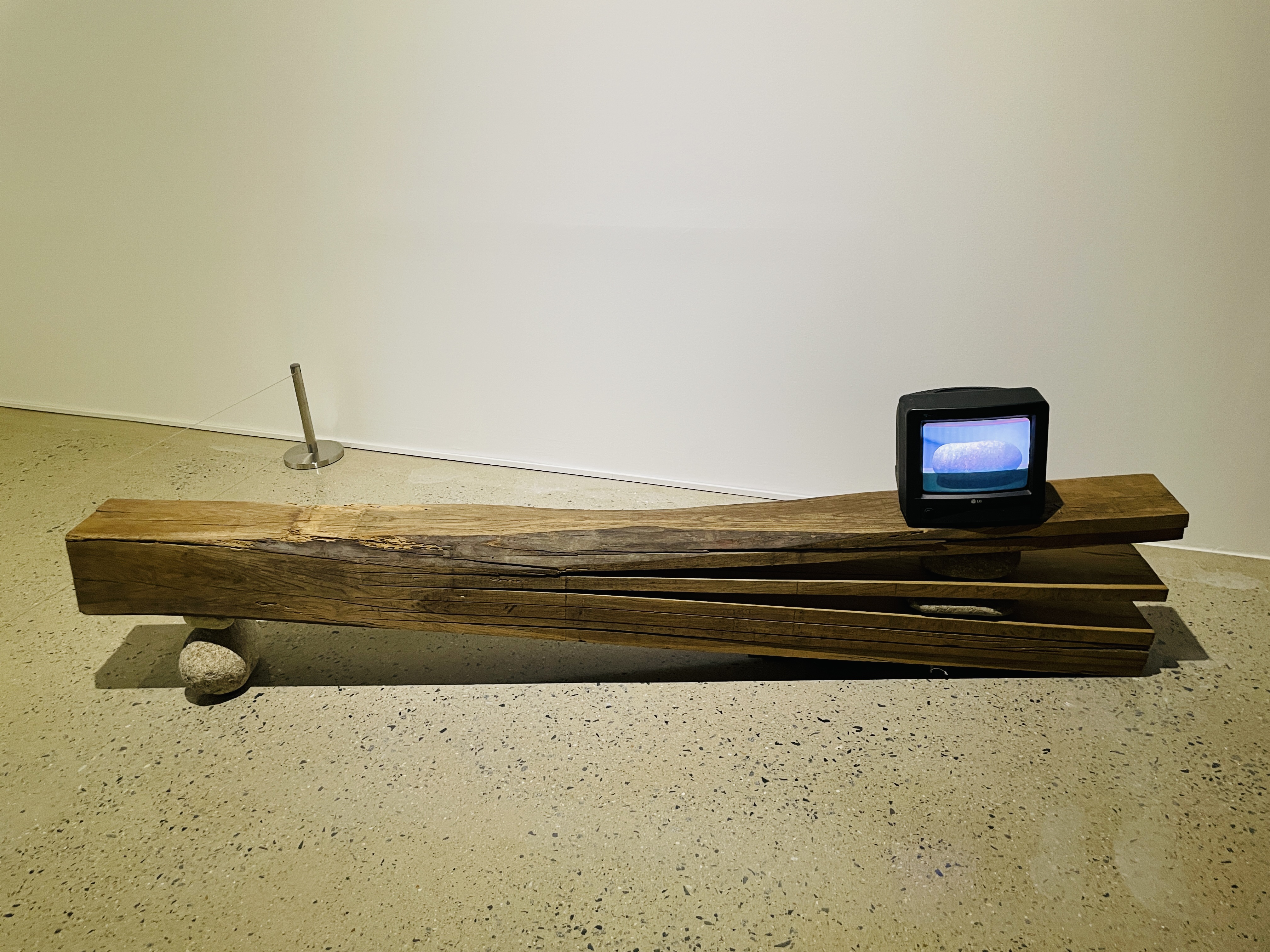 두동강 난 불상은 나무와 철이라는 두 가지 소재로 하나의 불상을 표현한 것이다