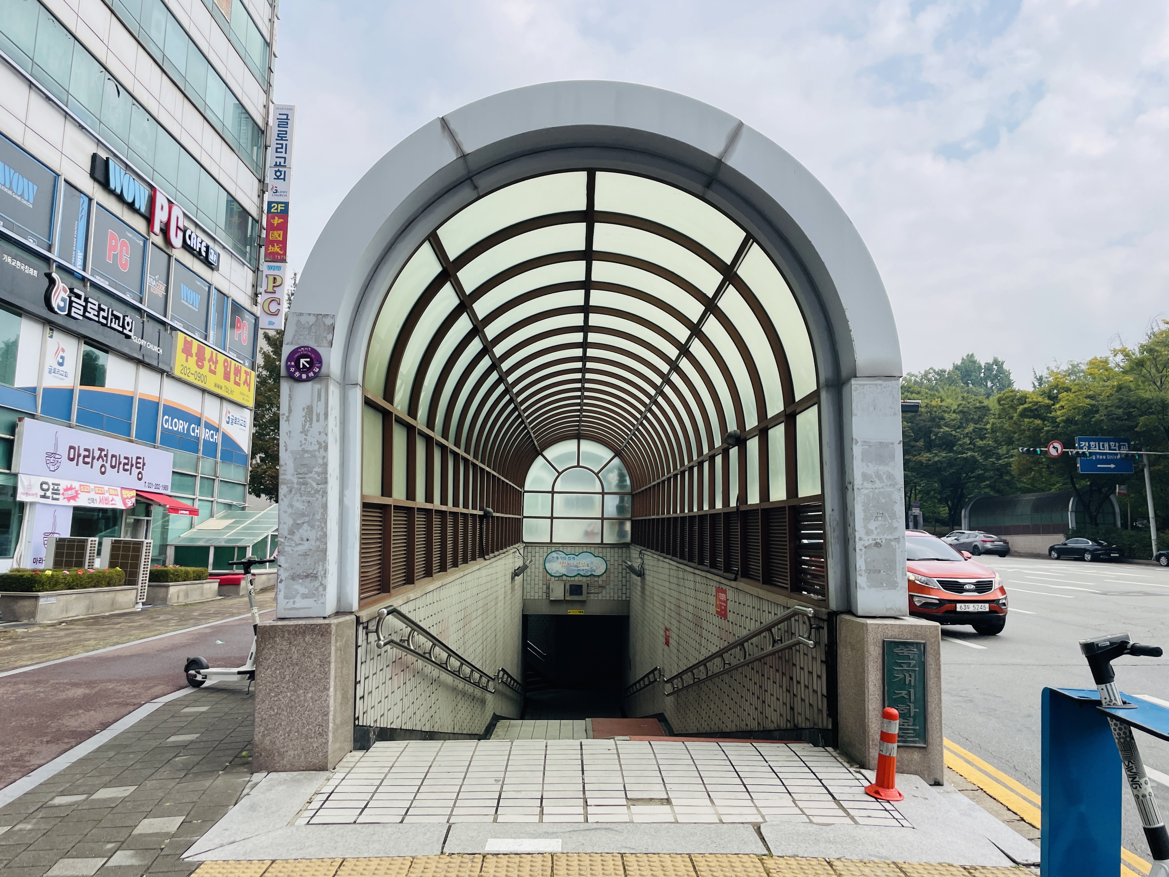 넓은 도로 건너편에 경희대 국제캠이 있었다