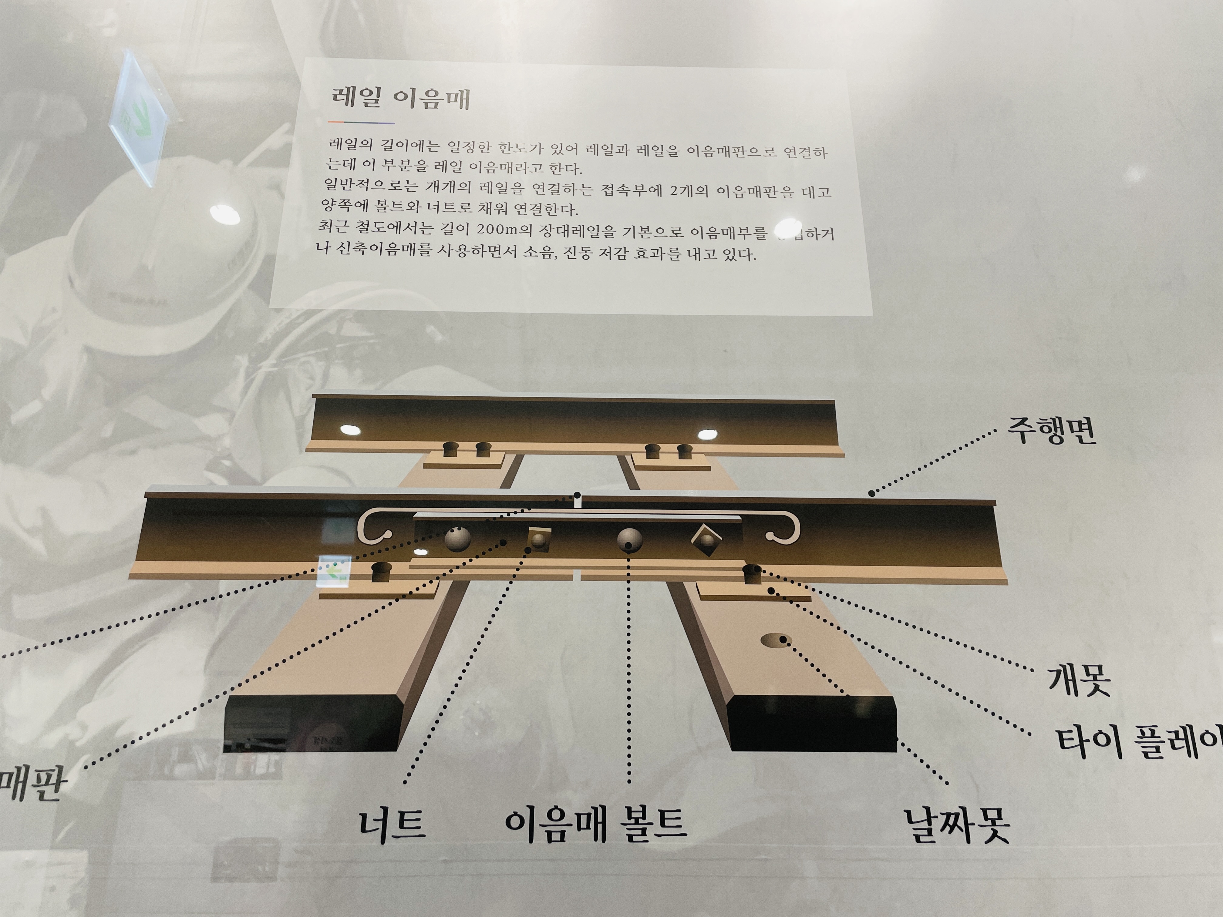 침목은 철로 사이에 있는 지지대인데 예전에는 나무였으나 요즘은 내구성도 좋고 썩지 않는 재료로 만든다