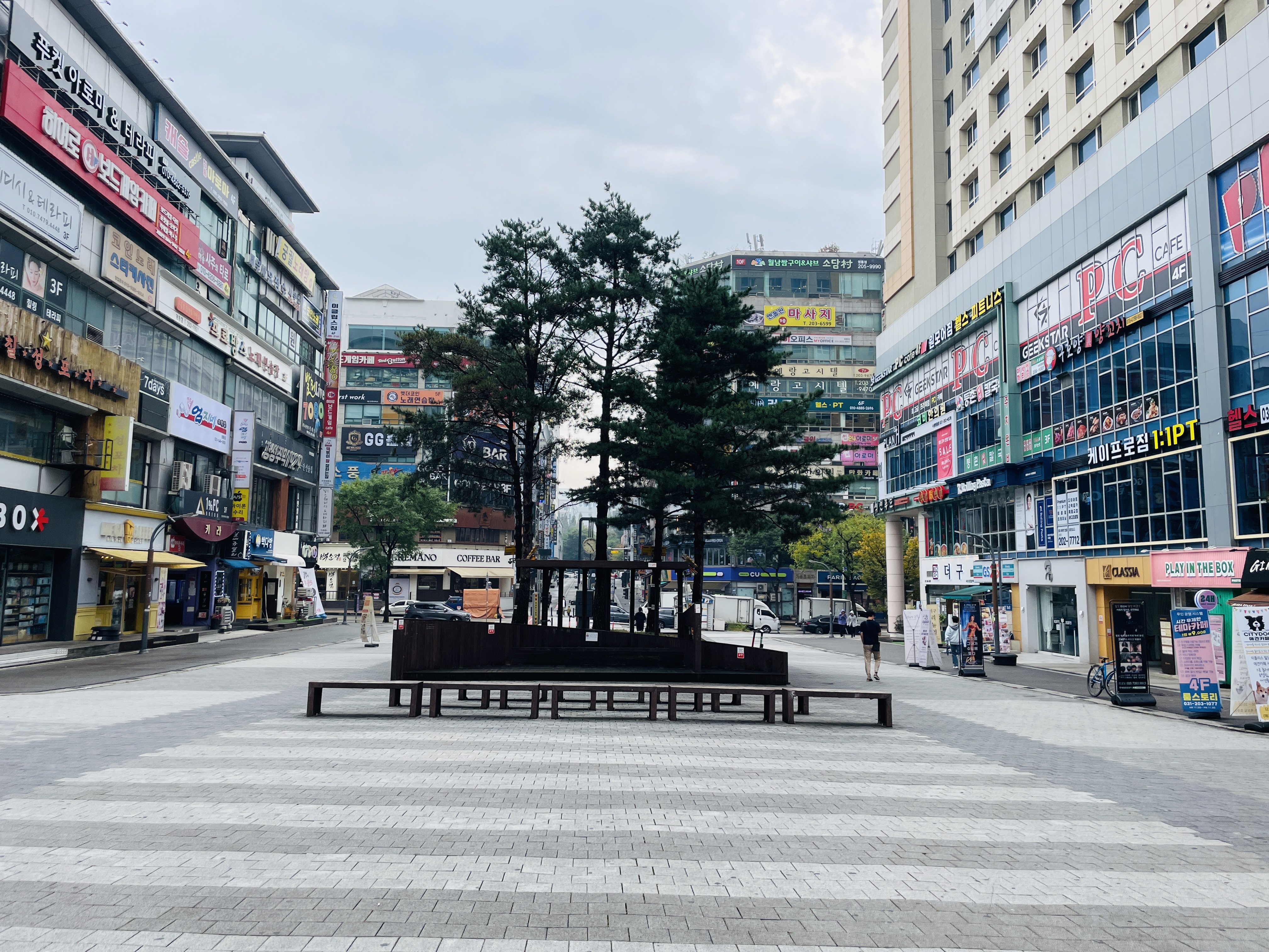 도서관을 나와 광장 옆에 있는 벤치