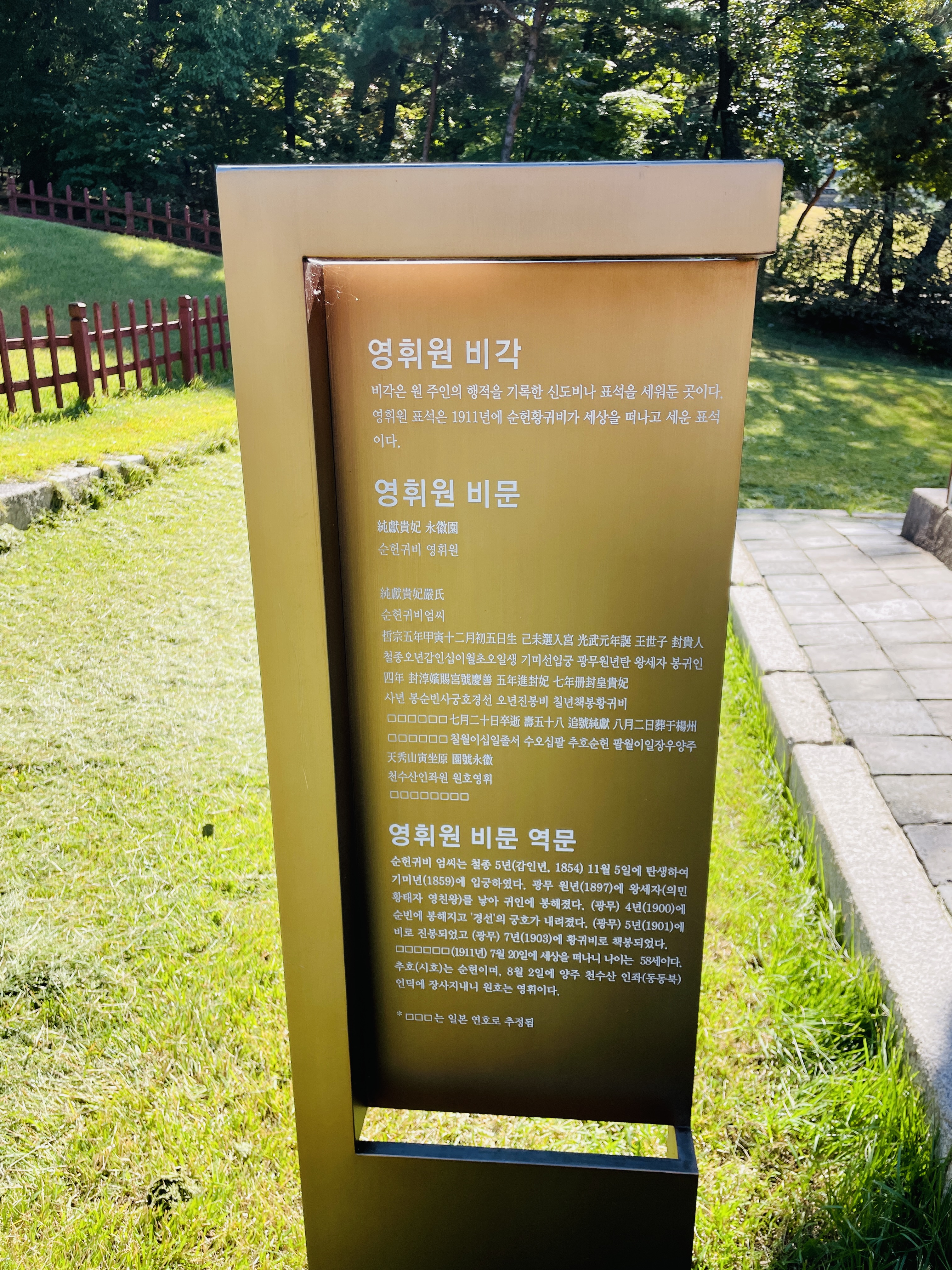 순헌귀비 영휘원이라 적혀있다