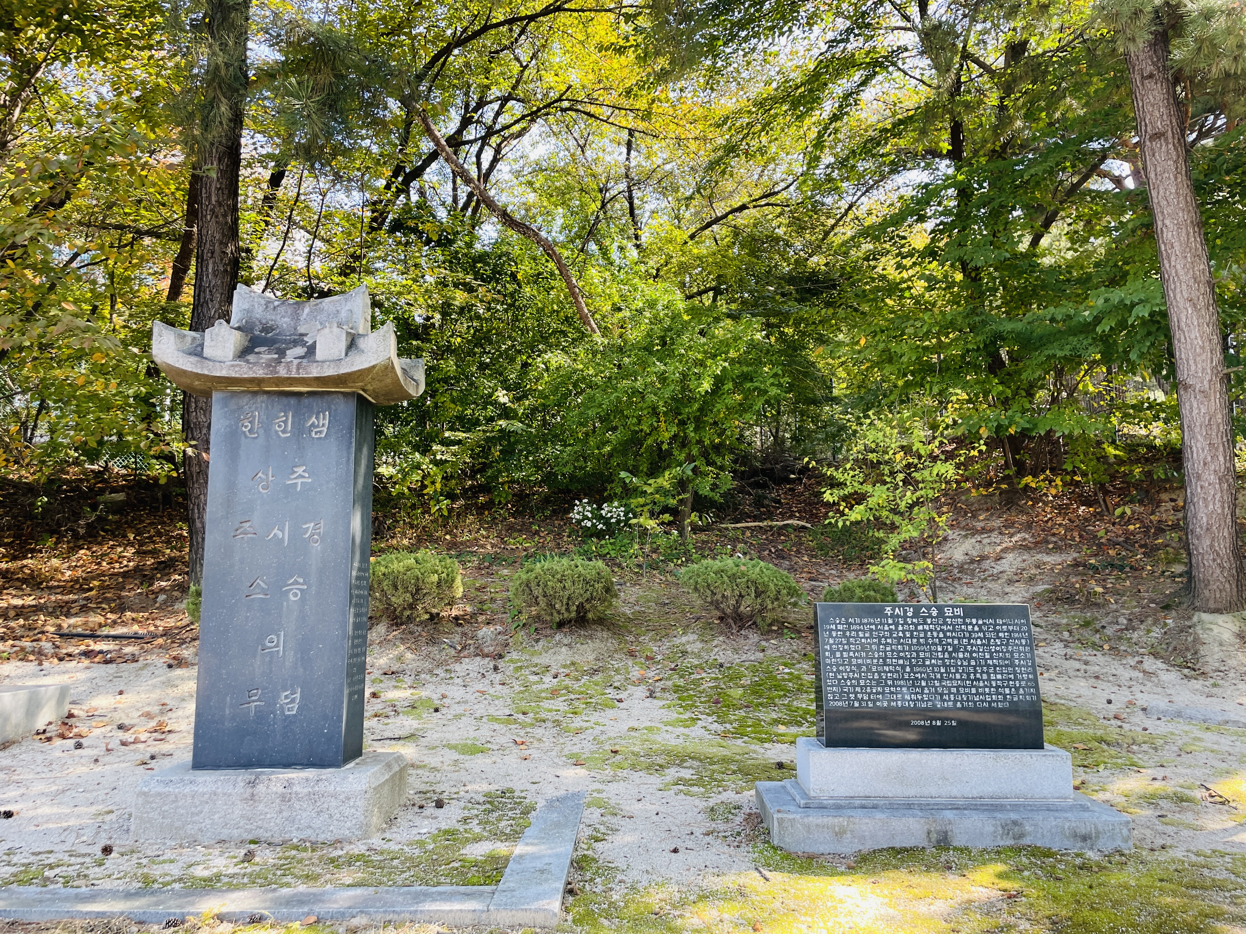주시경 선생님의 묘비가 있었다
