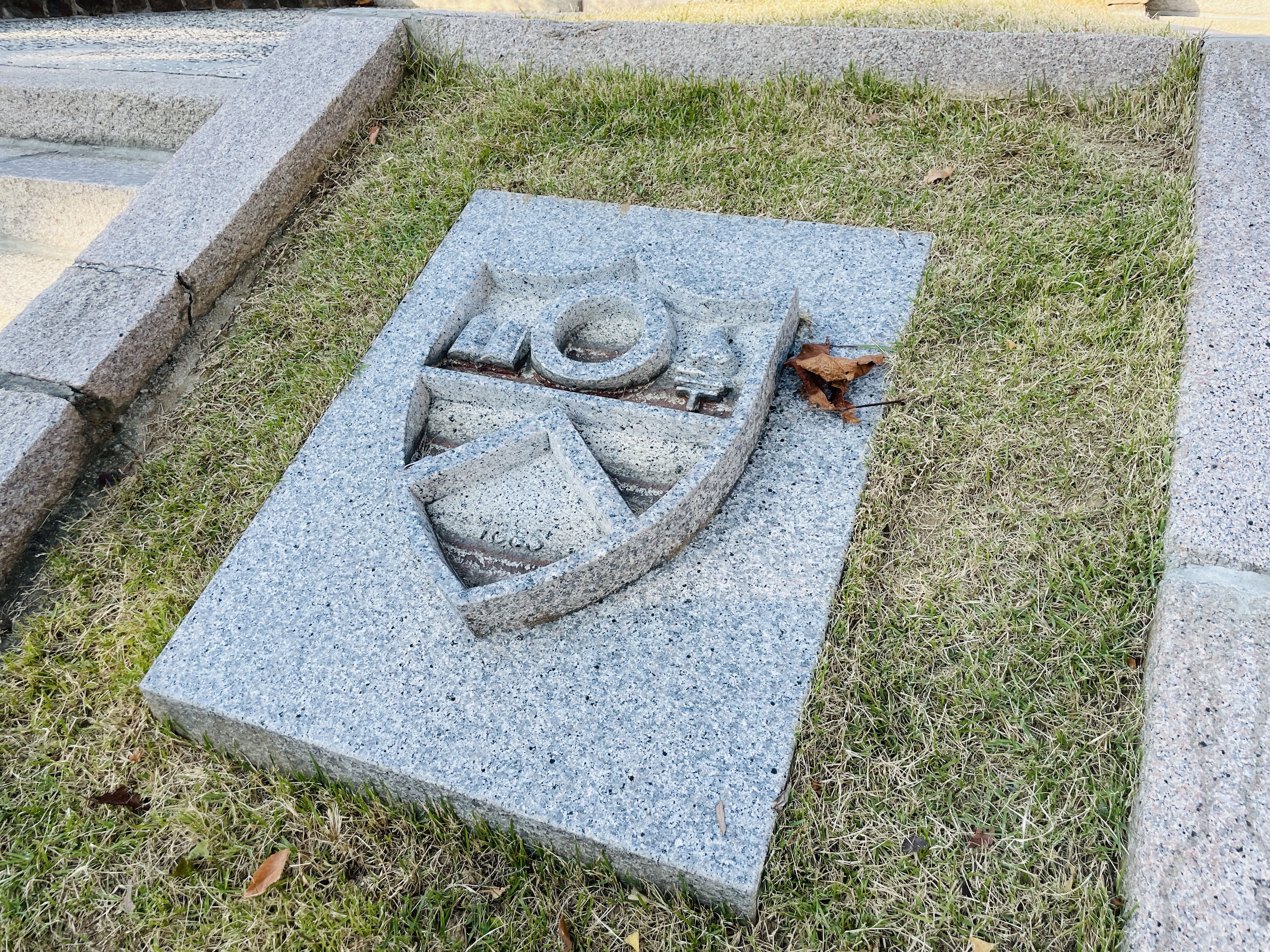 계단에 있는 대학 문양