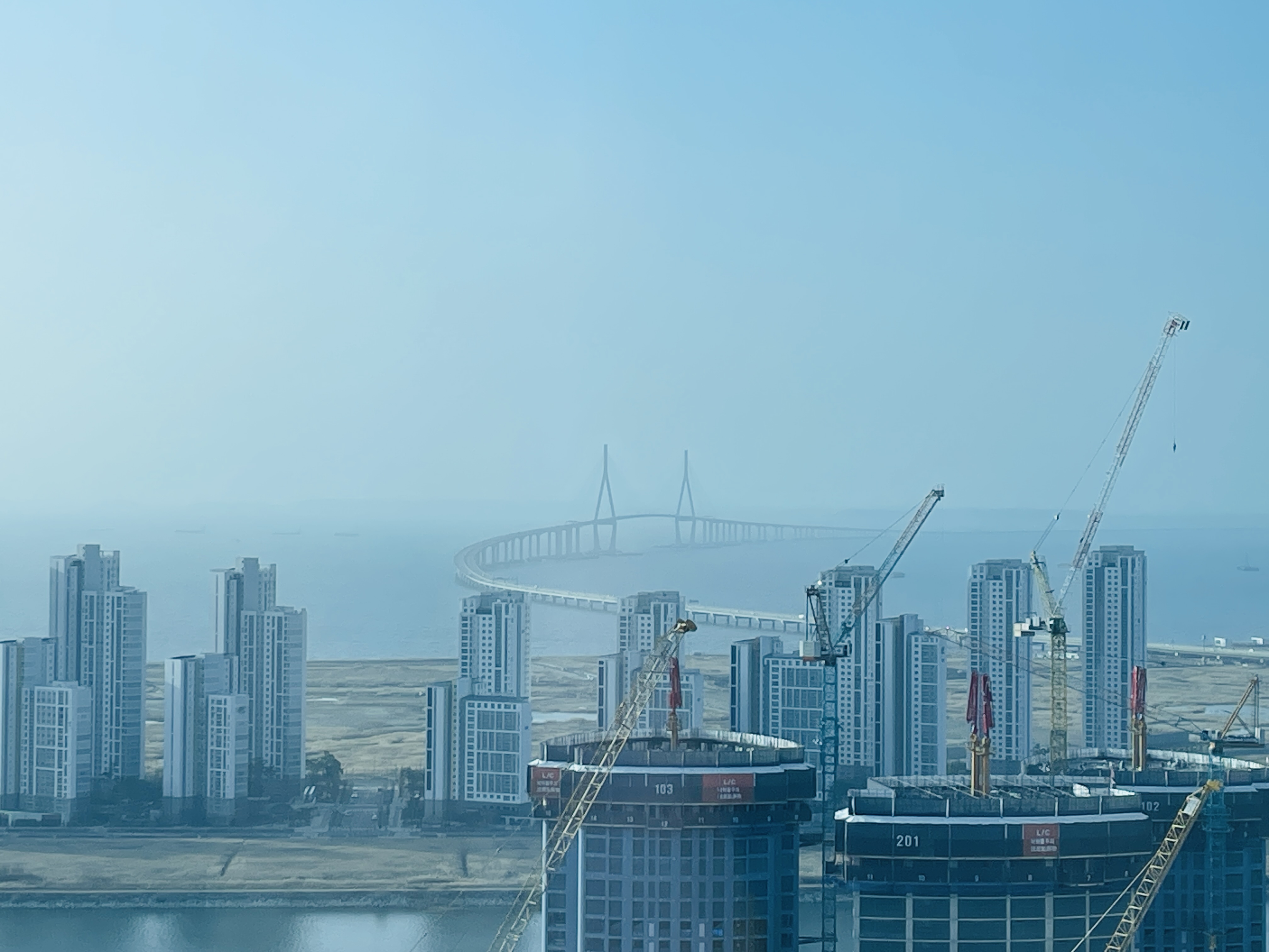 공장이 있기 때문에 완벽한 수평선은 아니지만