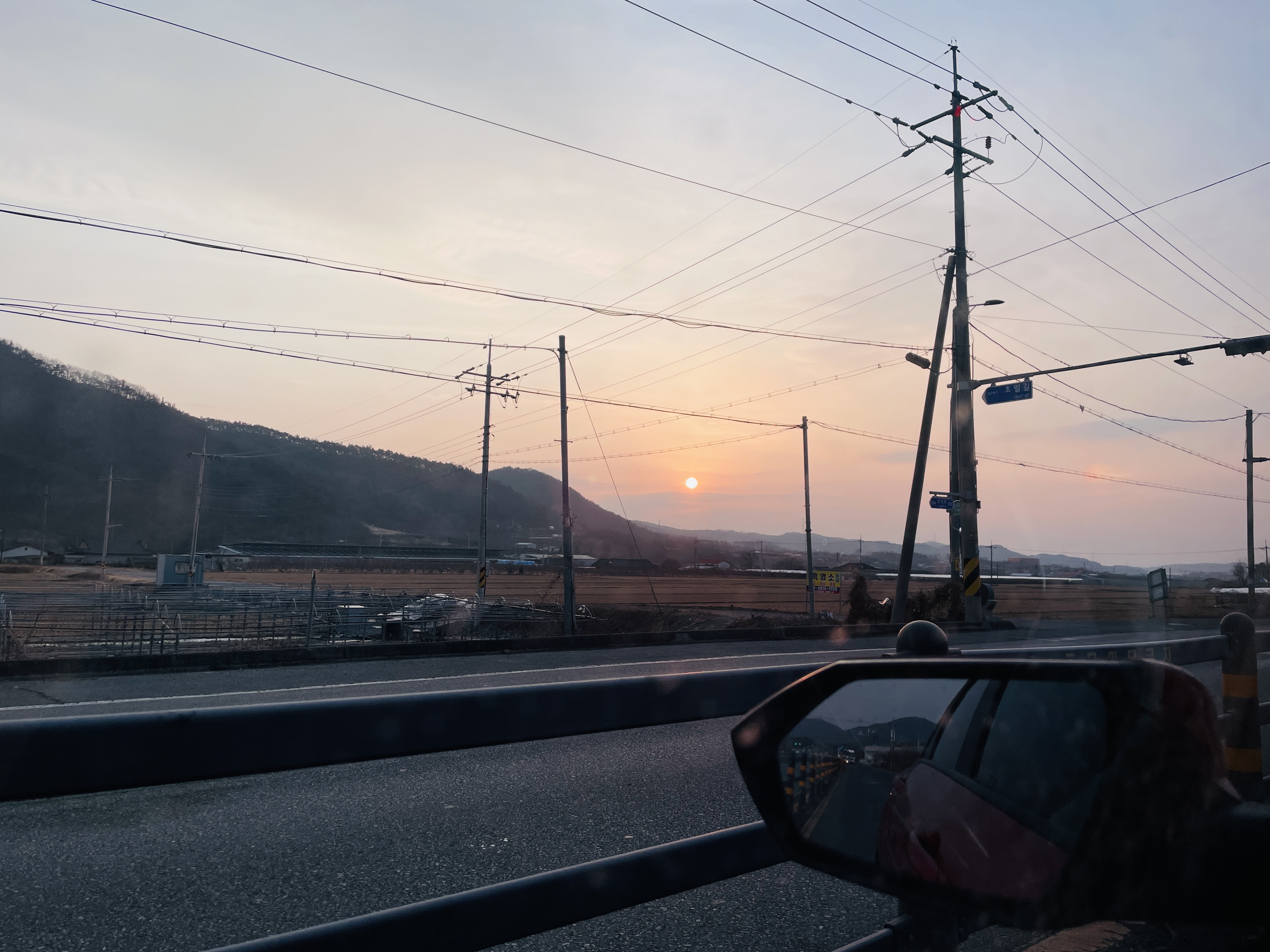 신호에 걸렸을 때 찍어본 첫 해가 지는 모습