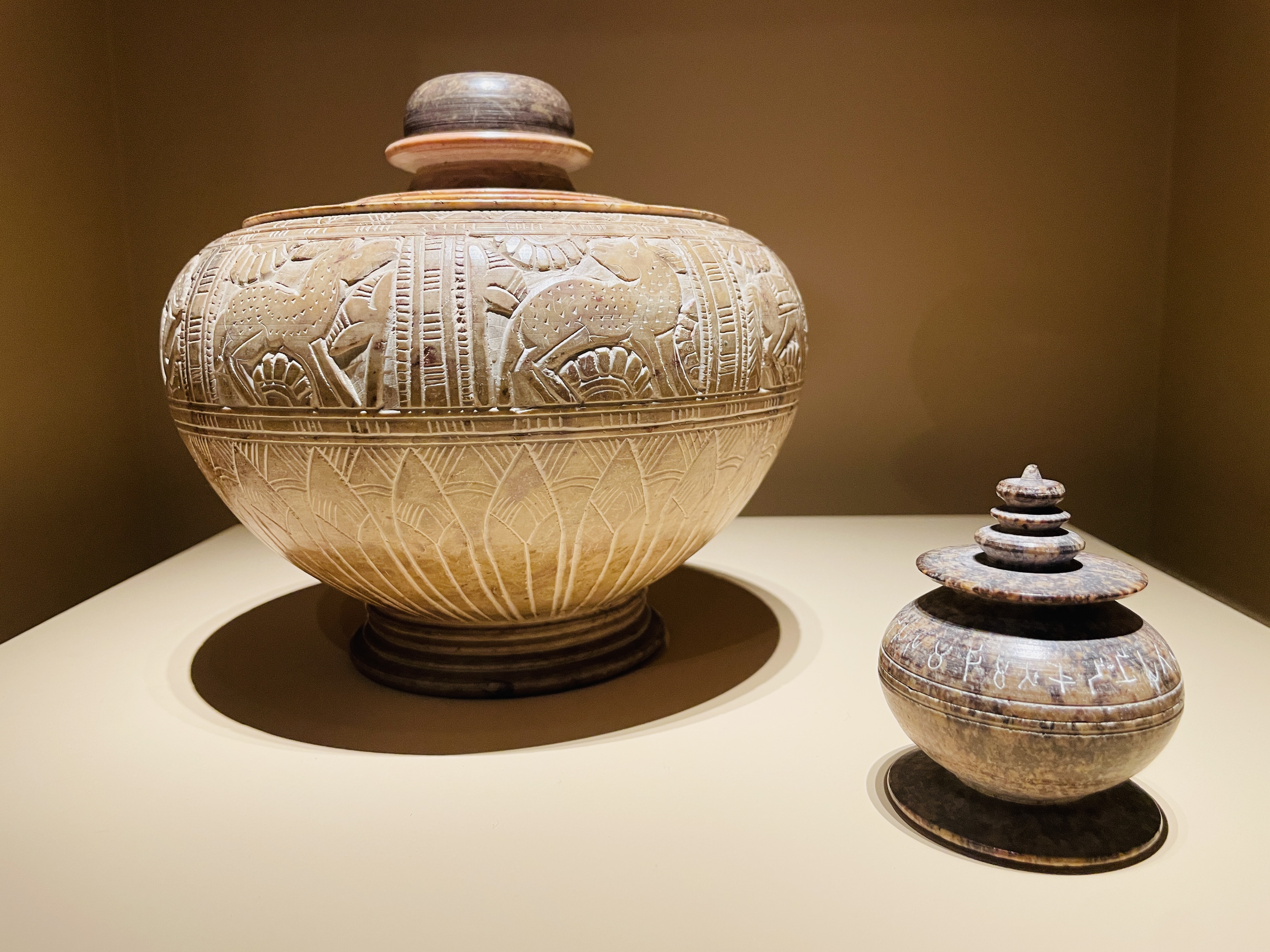 오른쪽 돌 사리함에는 문자가 새겨져있는데 아무래도 브라흐미 문자인것 같다