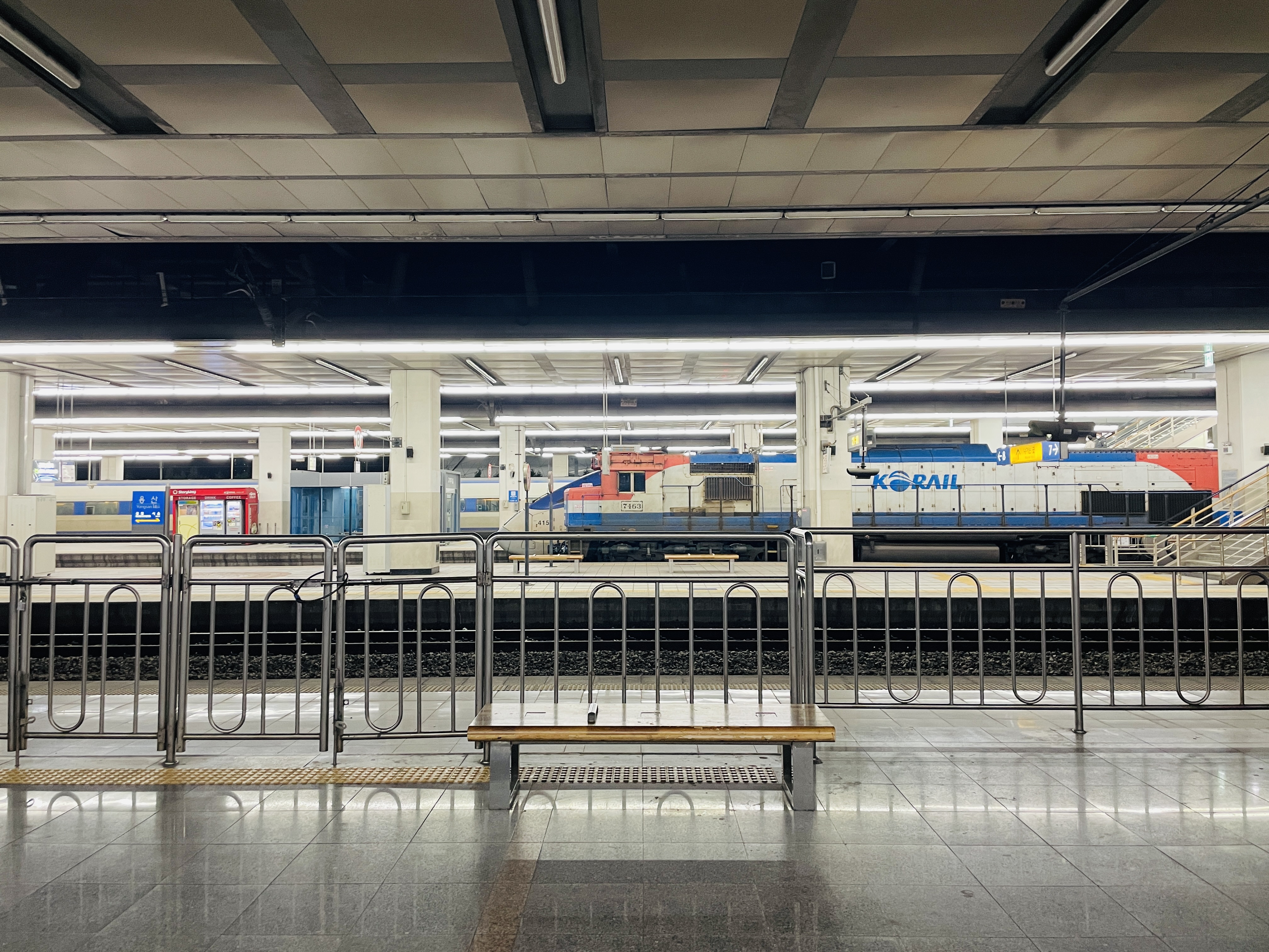 지하철을 타는데 저멀리 기차가 보인다