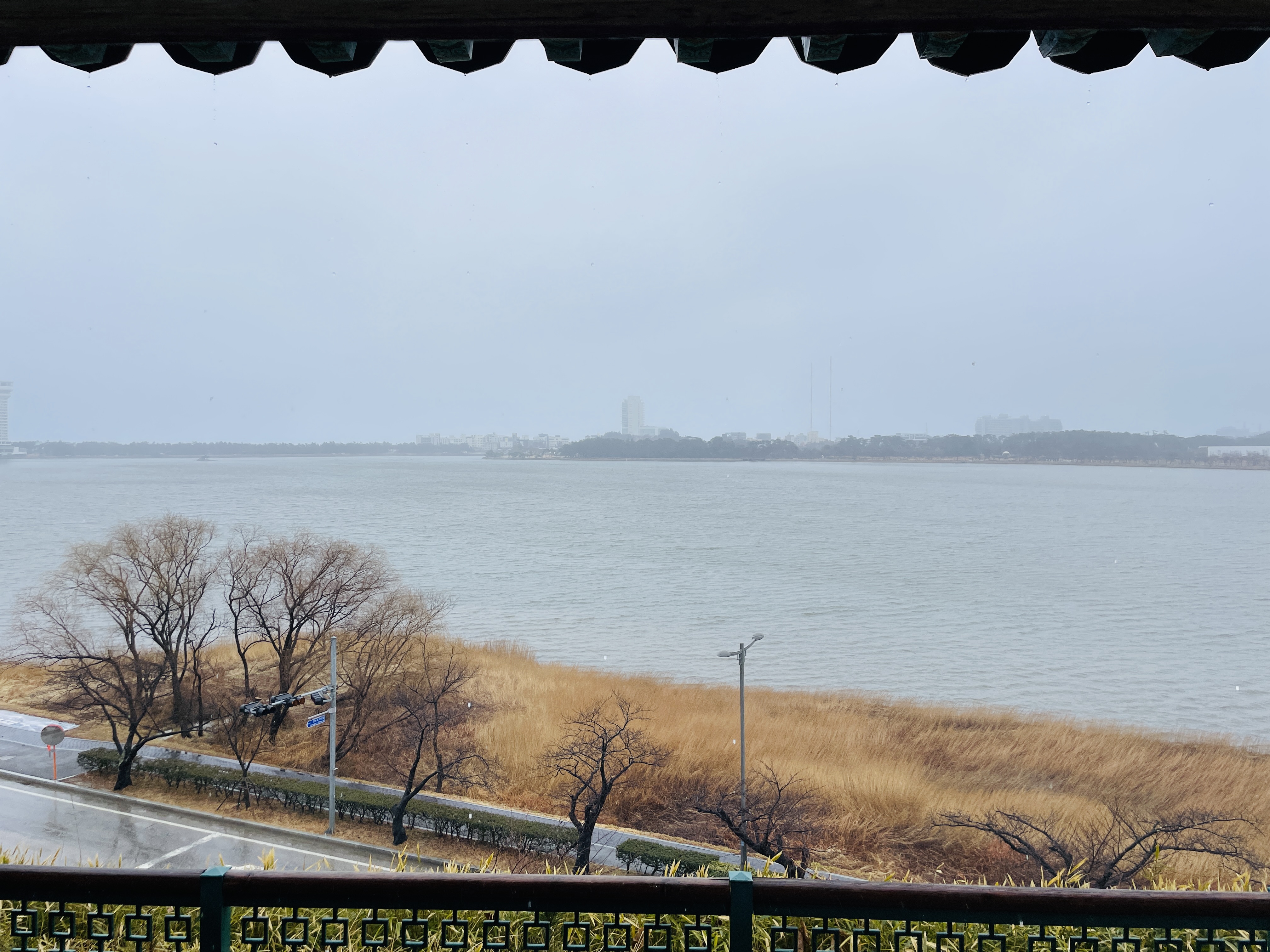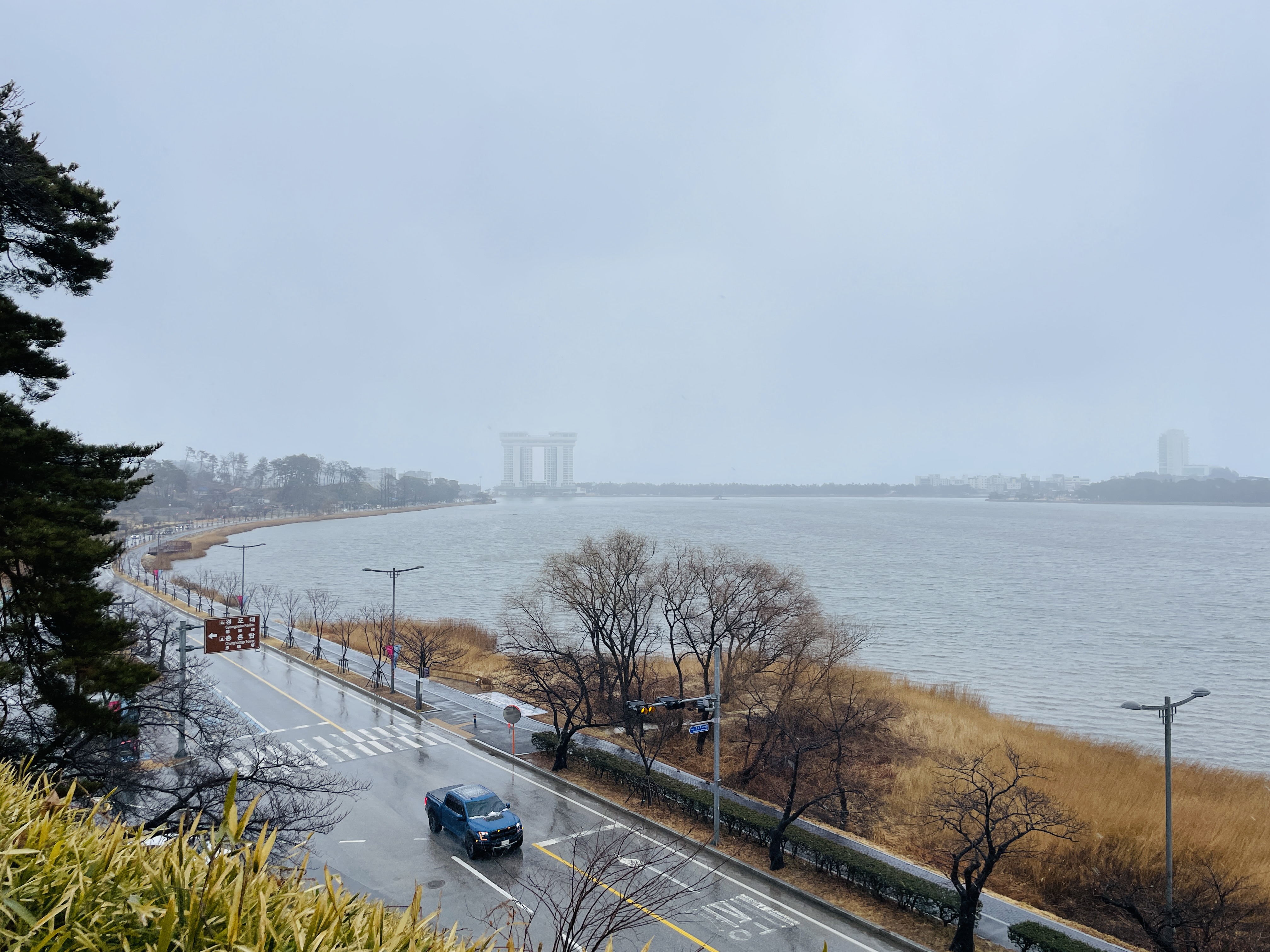 바깥으로는 경포호가 보인다