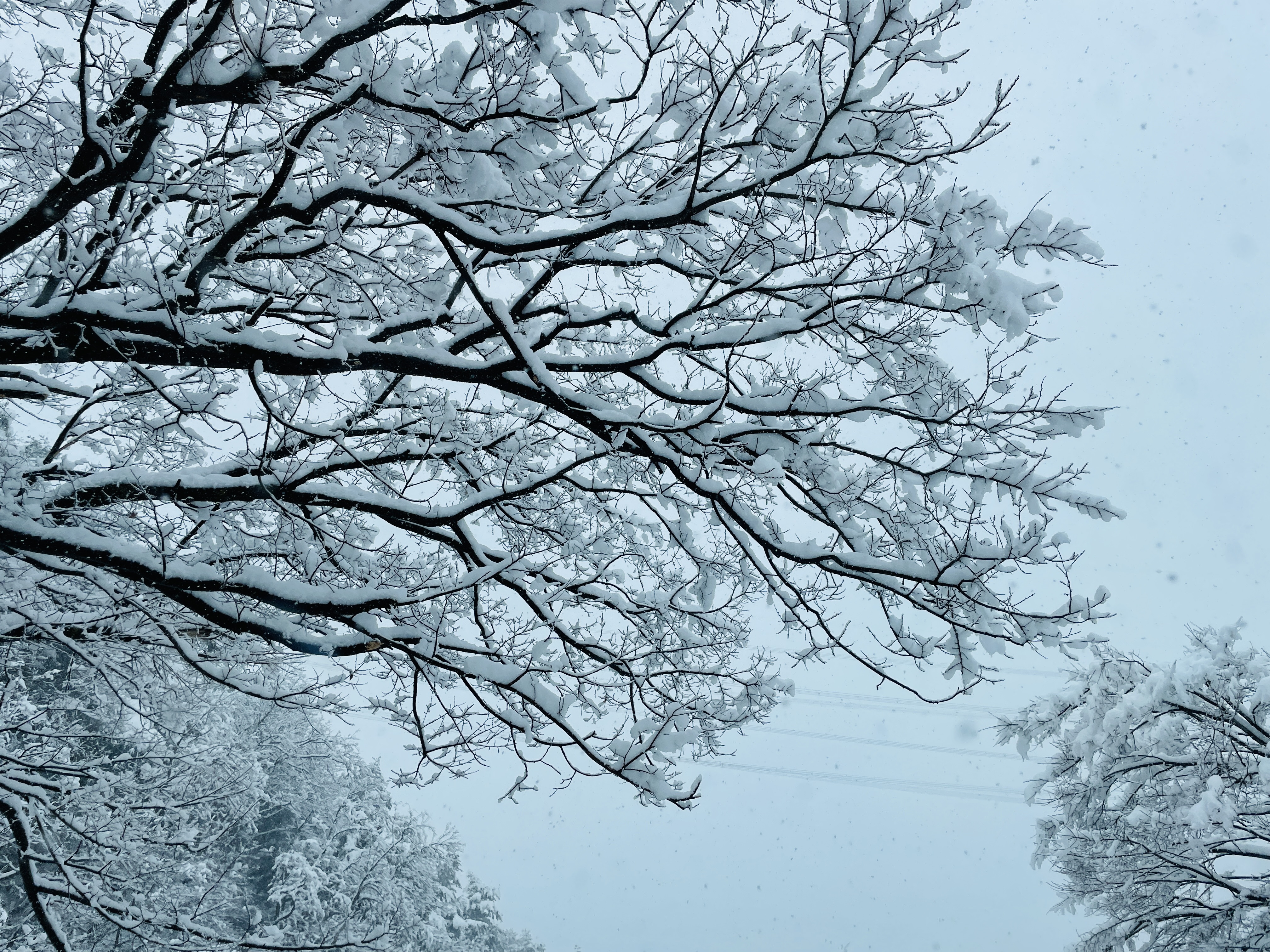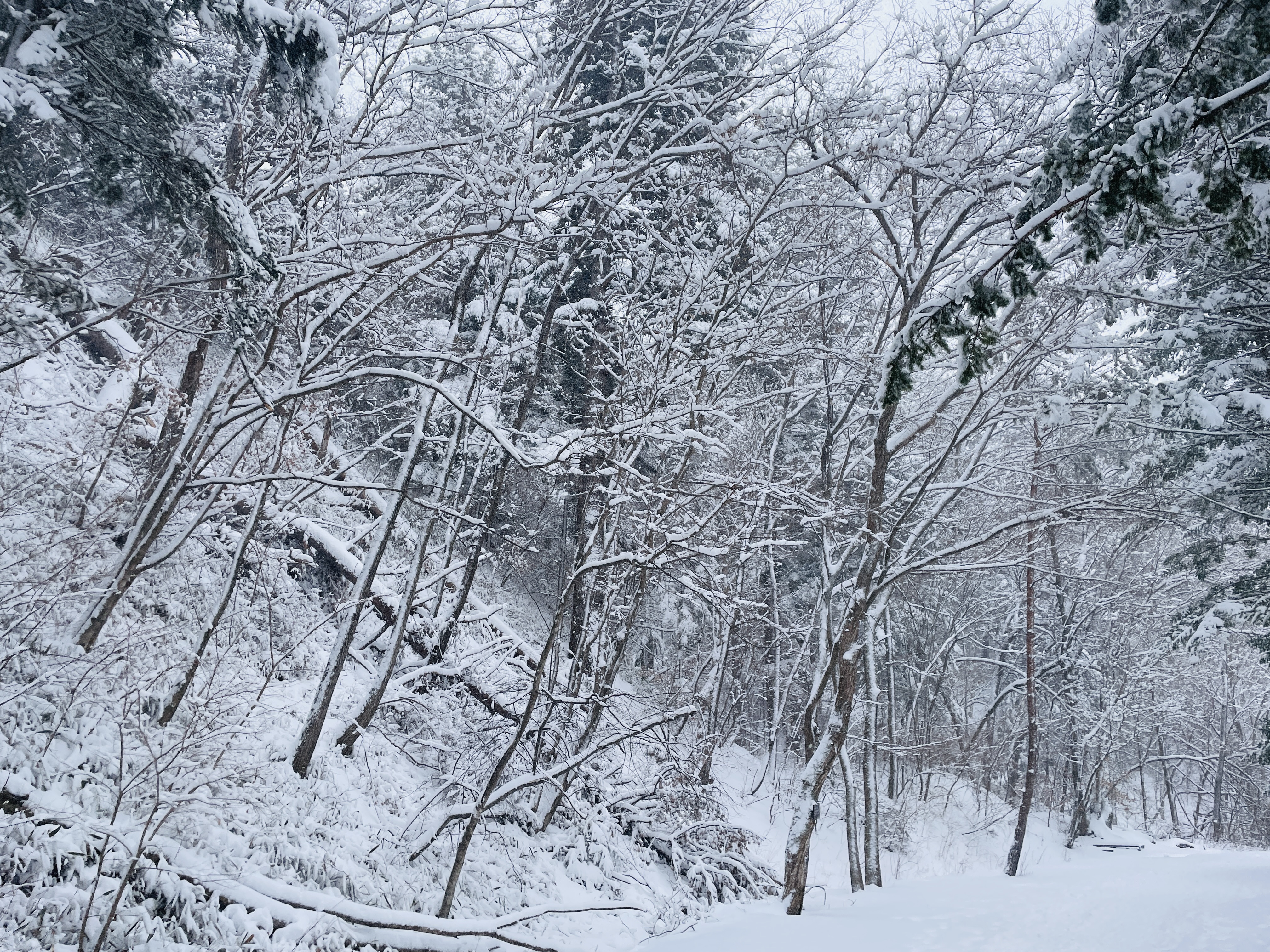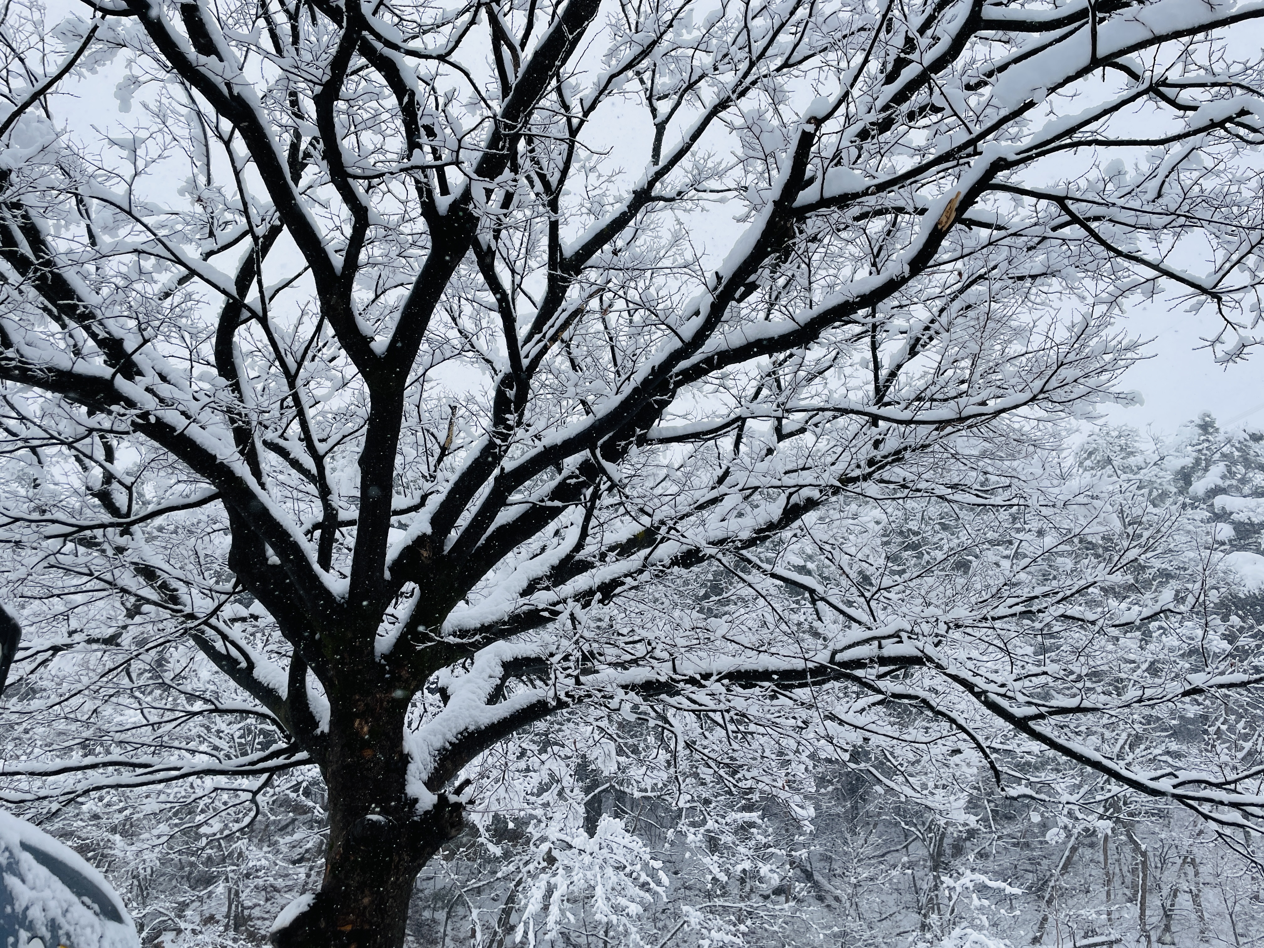나무에도 눈이 바나나처럼 쌓였다