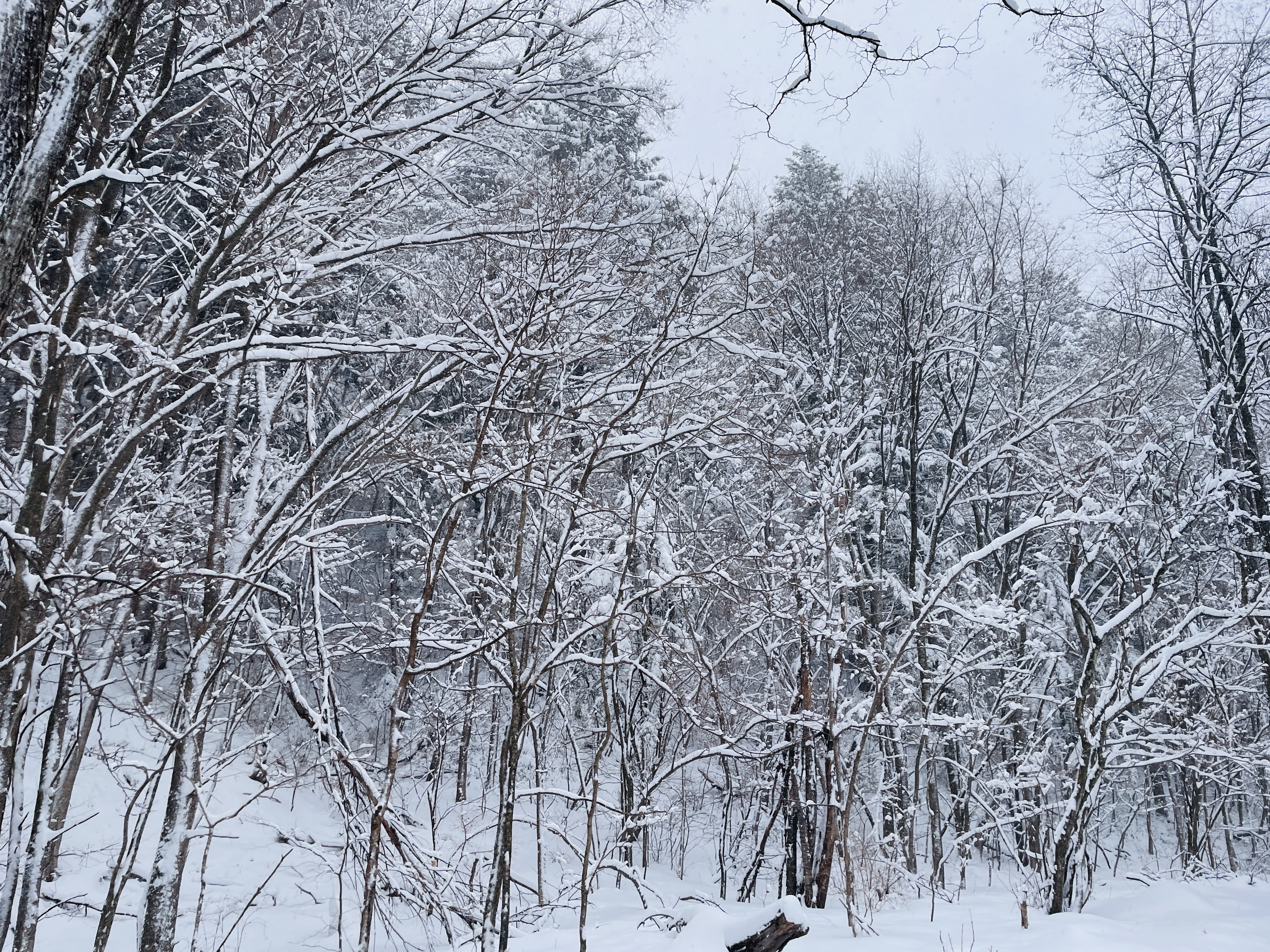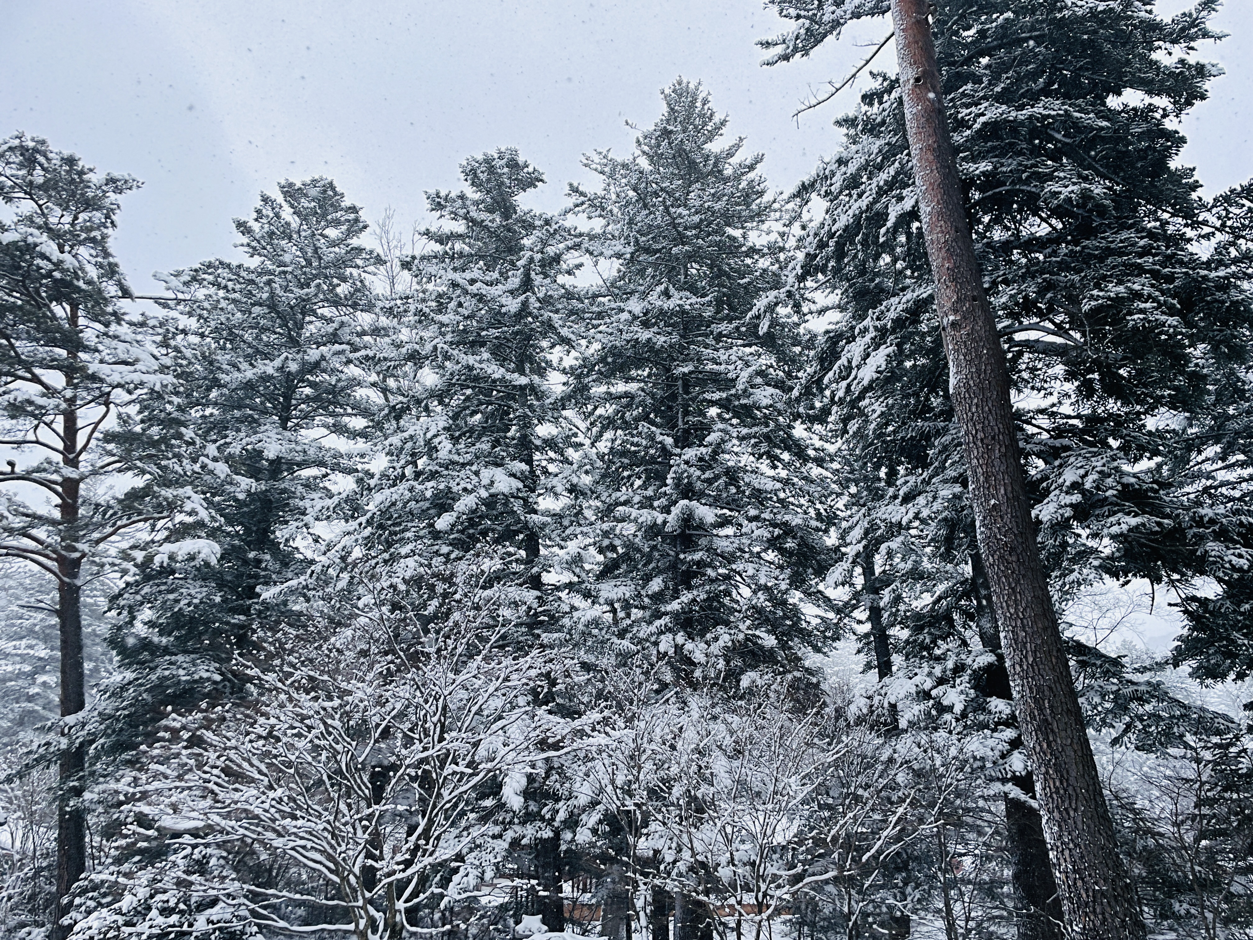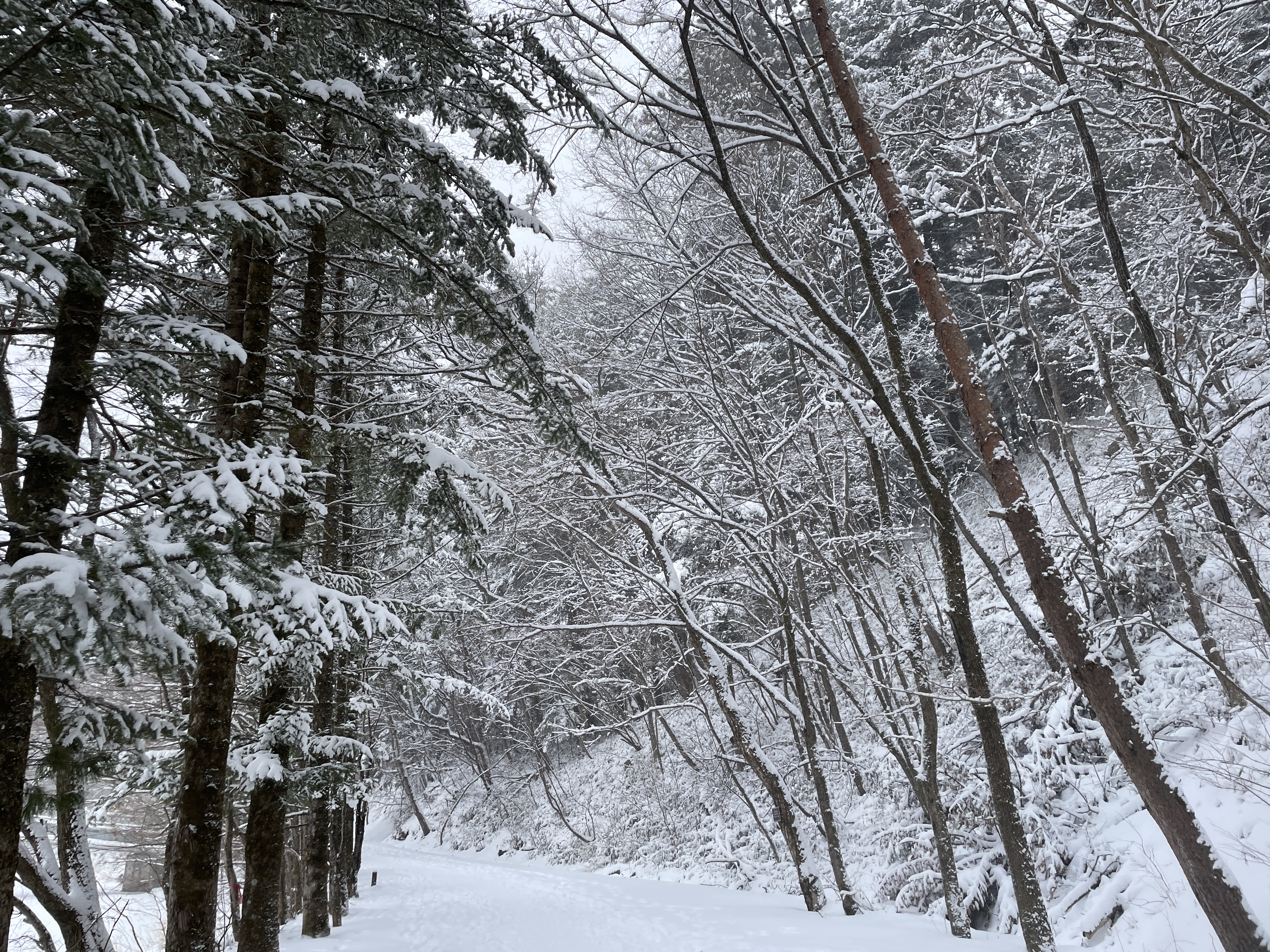 나무에도 눈이 바나나처럼 쌓였다
