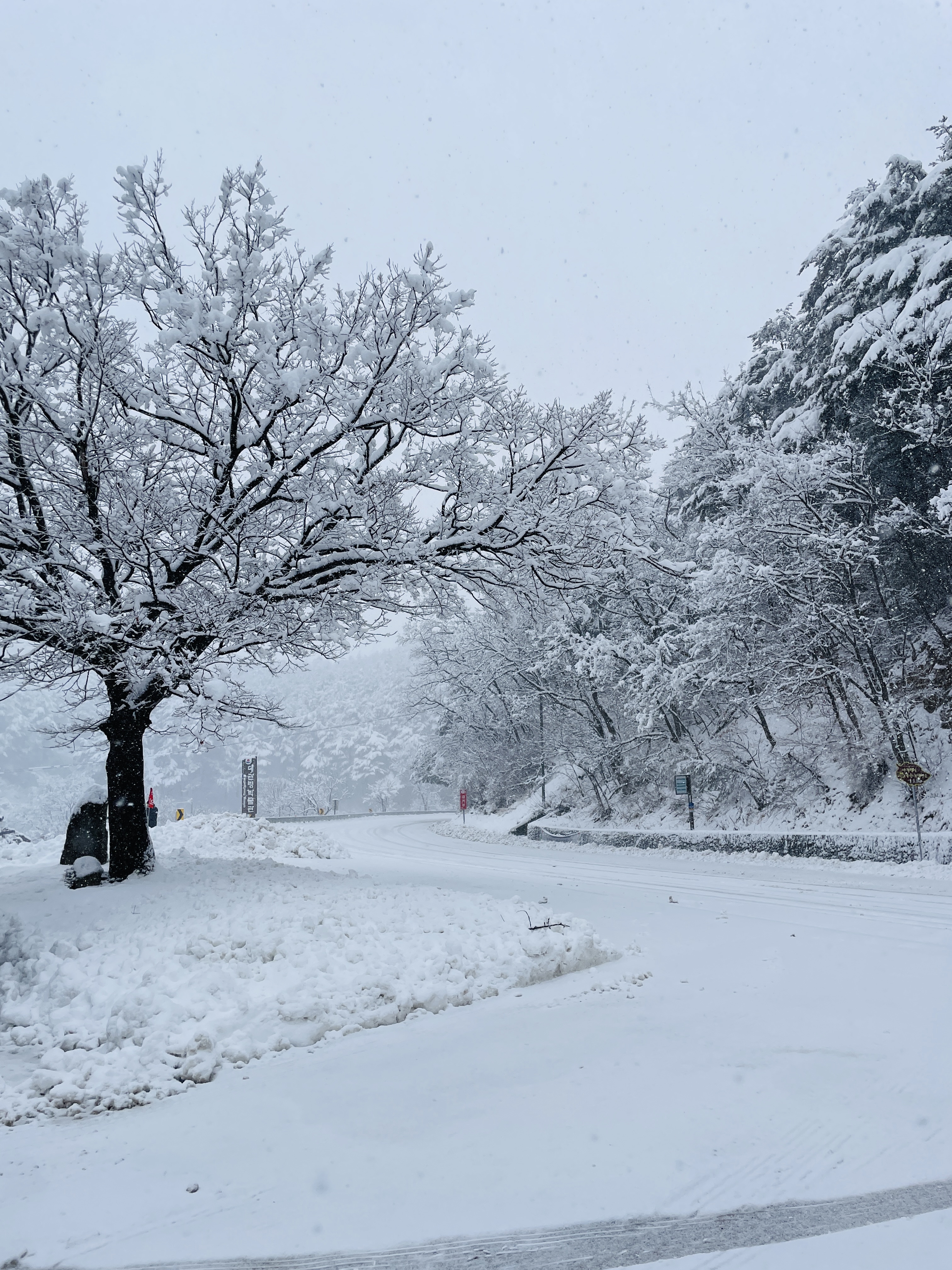 이쪽은 그래도 차가 다녀서 도로까지 눈이 뒤덮히진 않았다