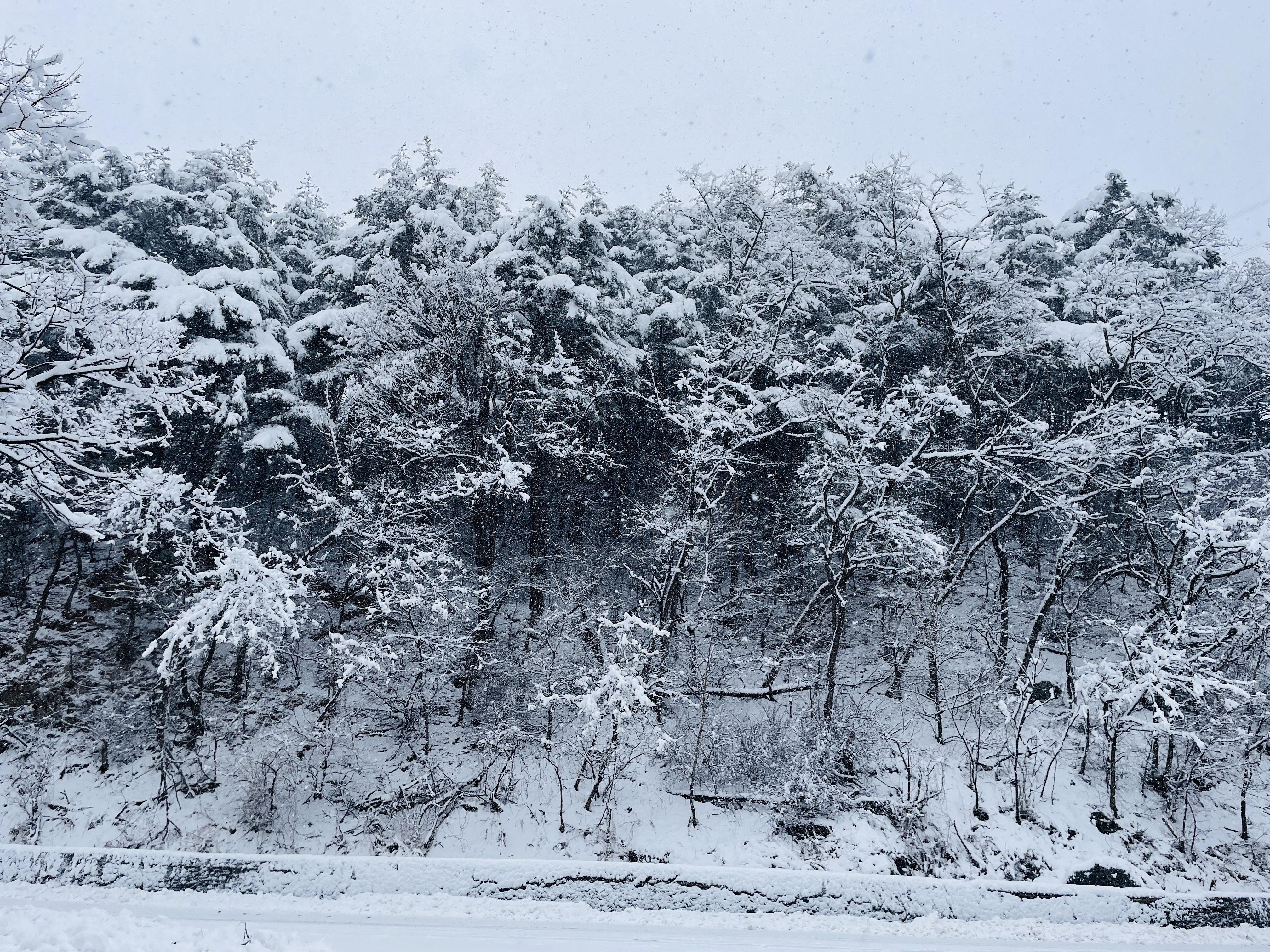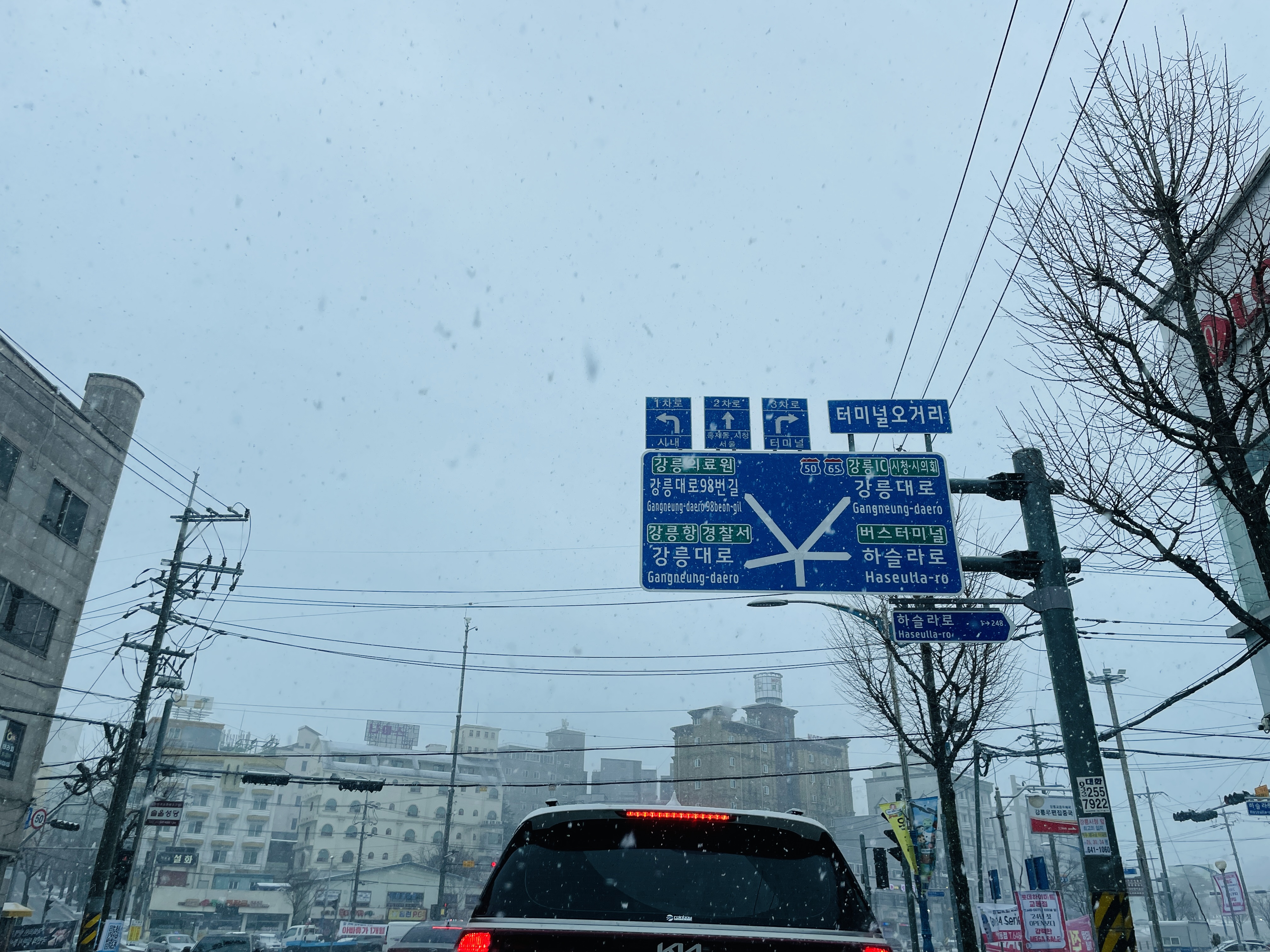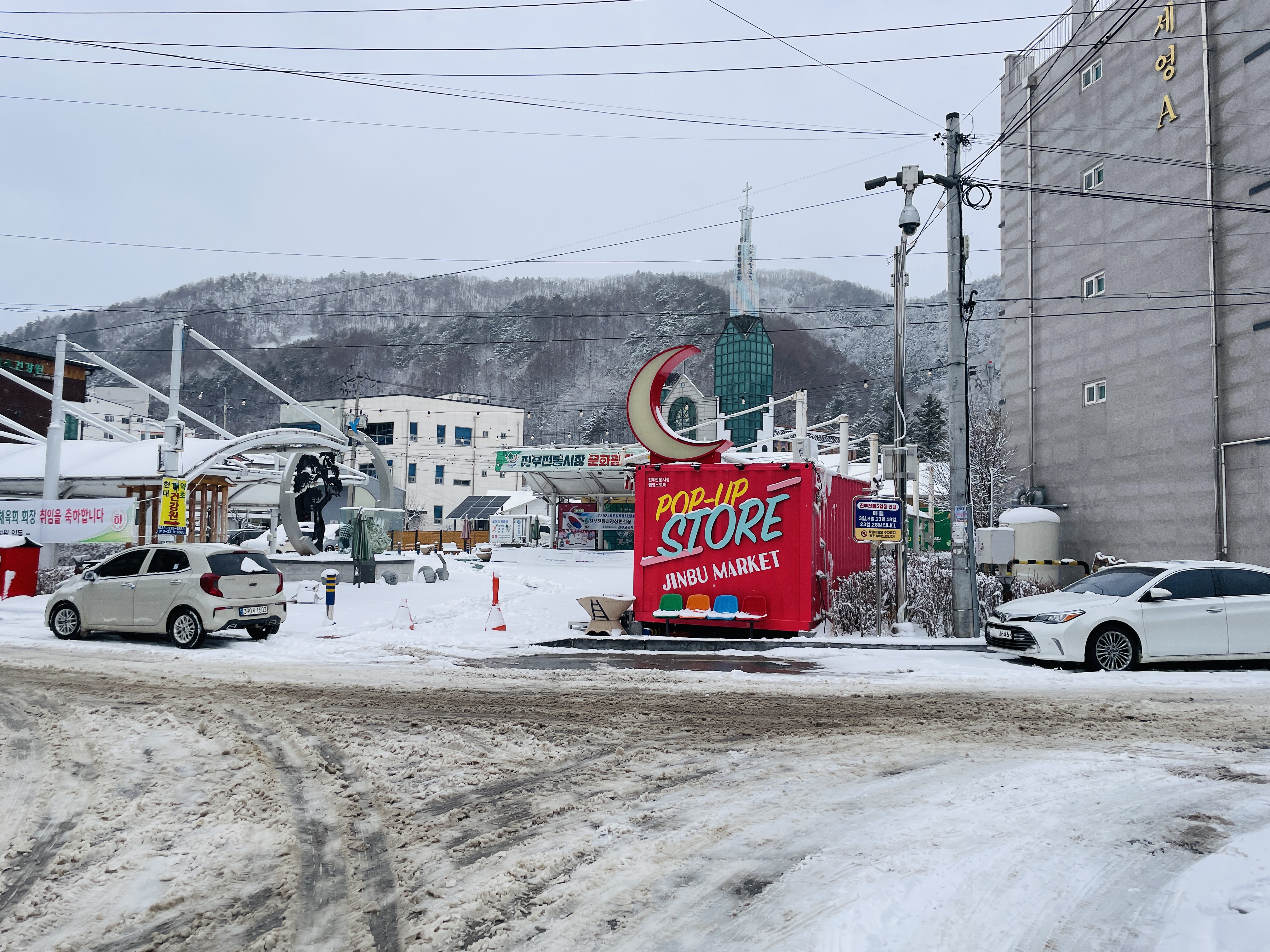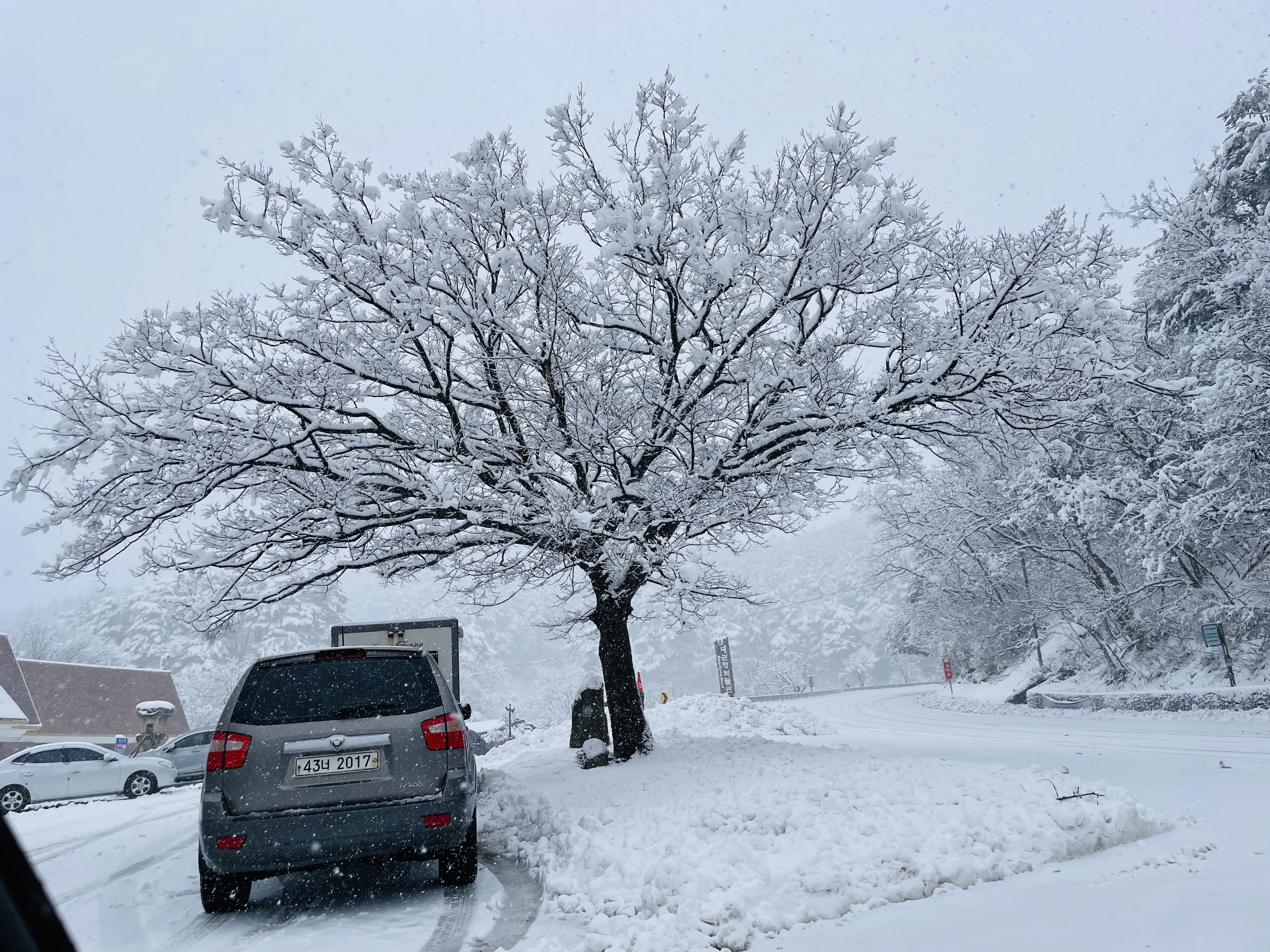 제설이 시작되기 전이라 도로에도 눈이 쌓이기 시작했다