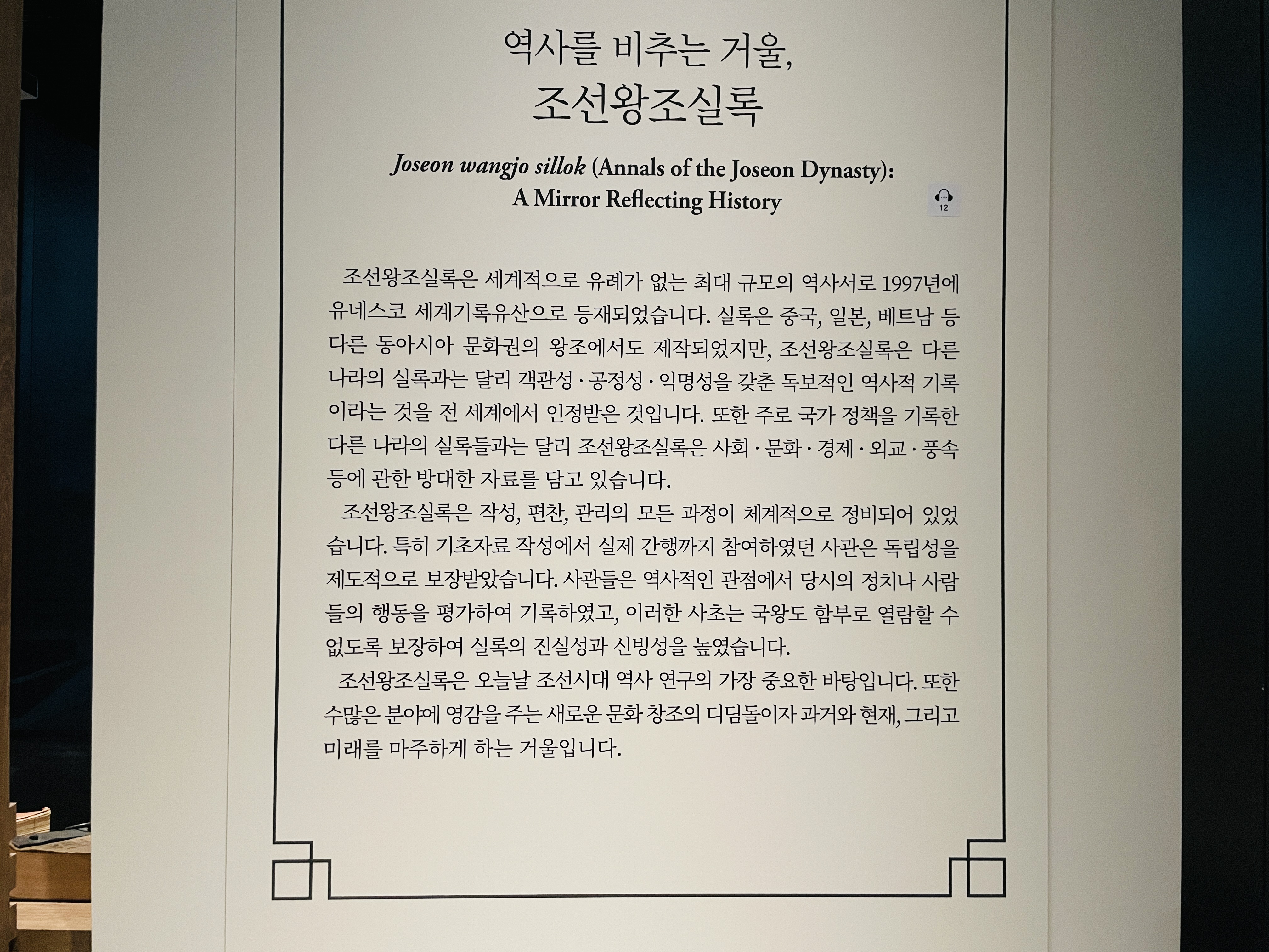 전시관 끝에는 이렇게 역사의 중요성을 강조하는 말들이 흘러나오고 있었다