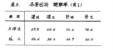 [7] 김해옥, “읽기 難易性에 關한 硏究 : 한글專用과 漢字混用.” (이화여자대학교 대학원, 1971). PP.32-39参照