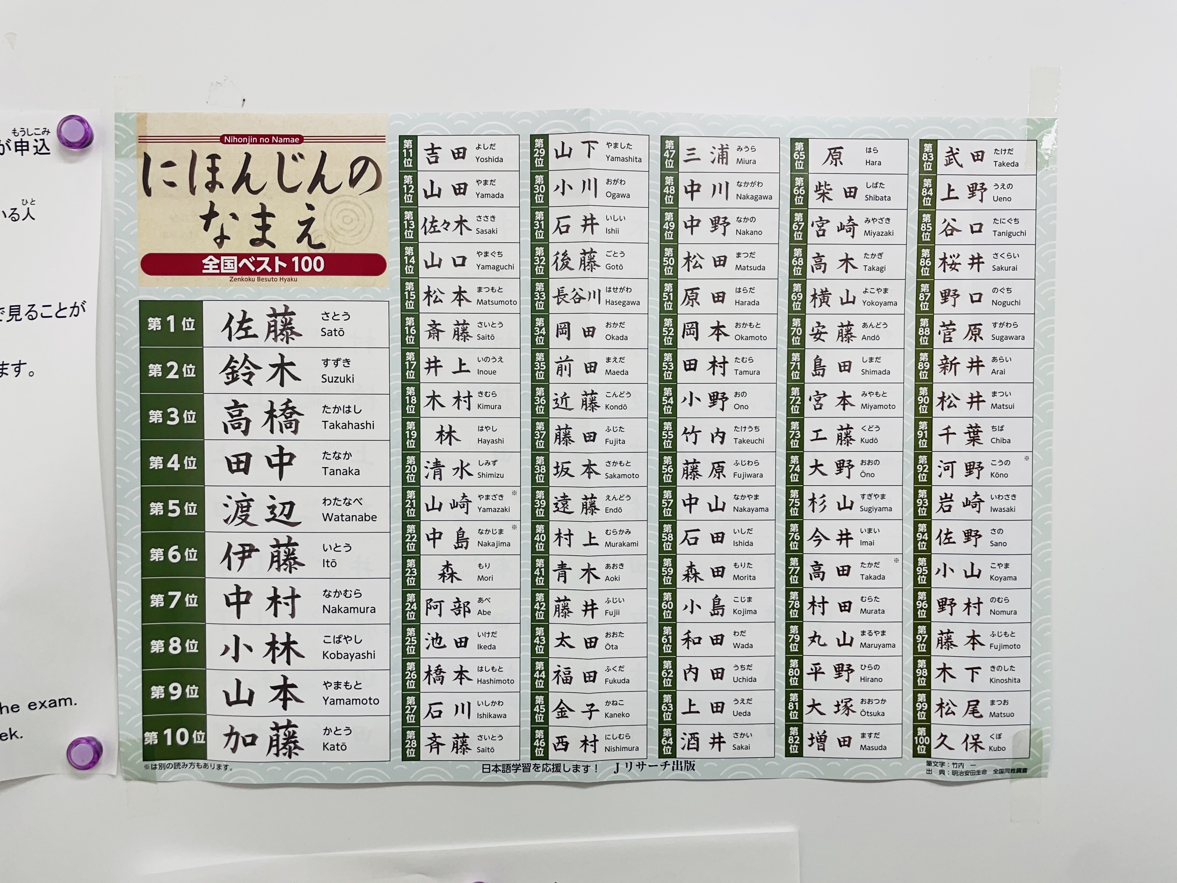 학교에 붙어있던 일본인 성씨 베스트 100