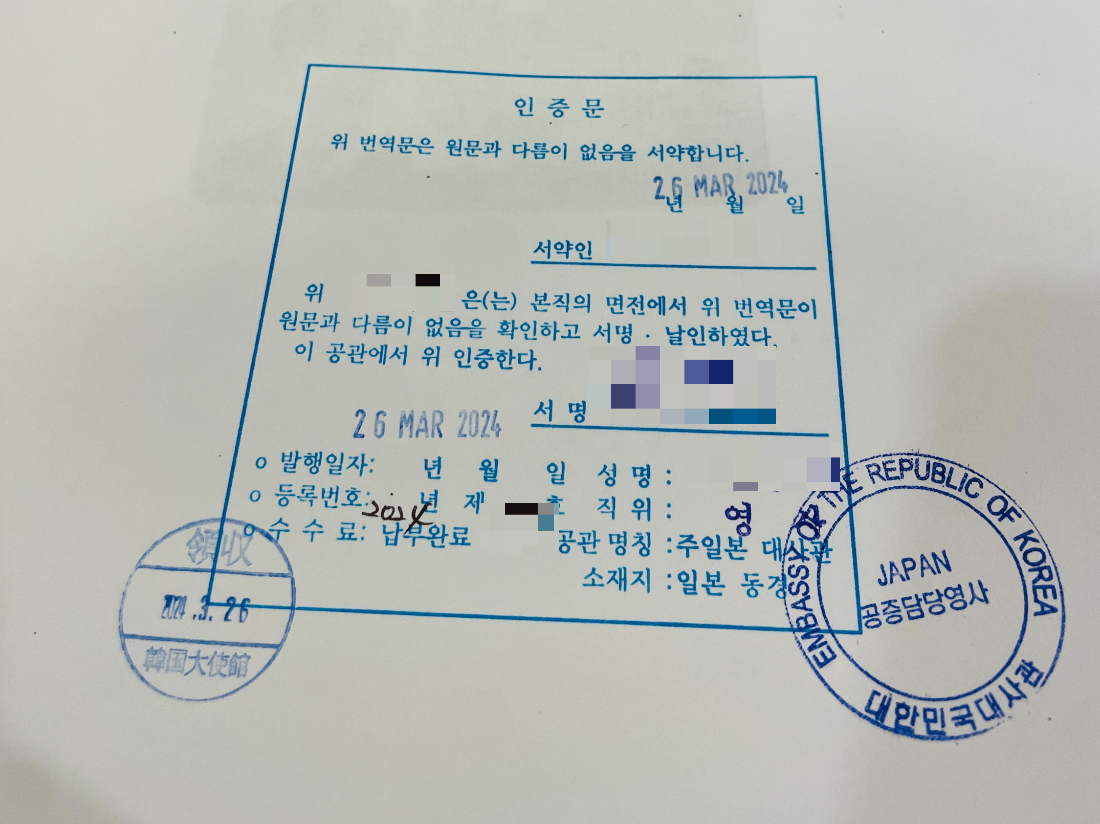 원문이 다름이 없다고 서약을 할 뿐 대사관에서는 내가 적은 내용이 맞는지 체크하지 않는다