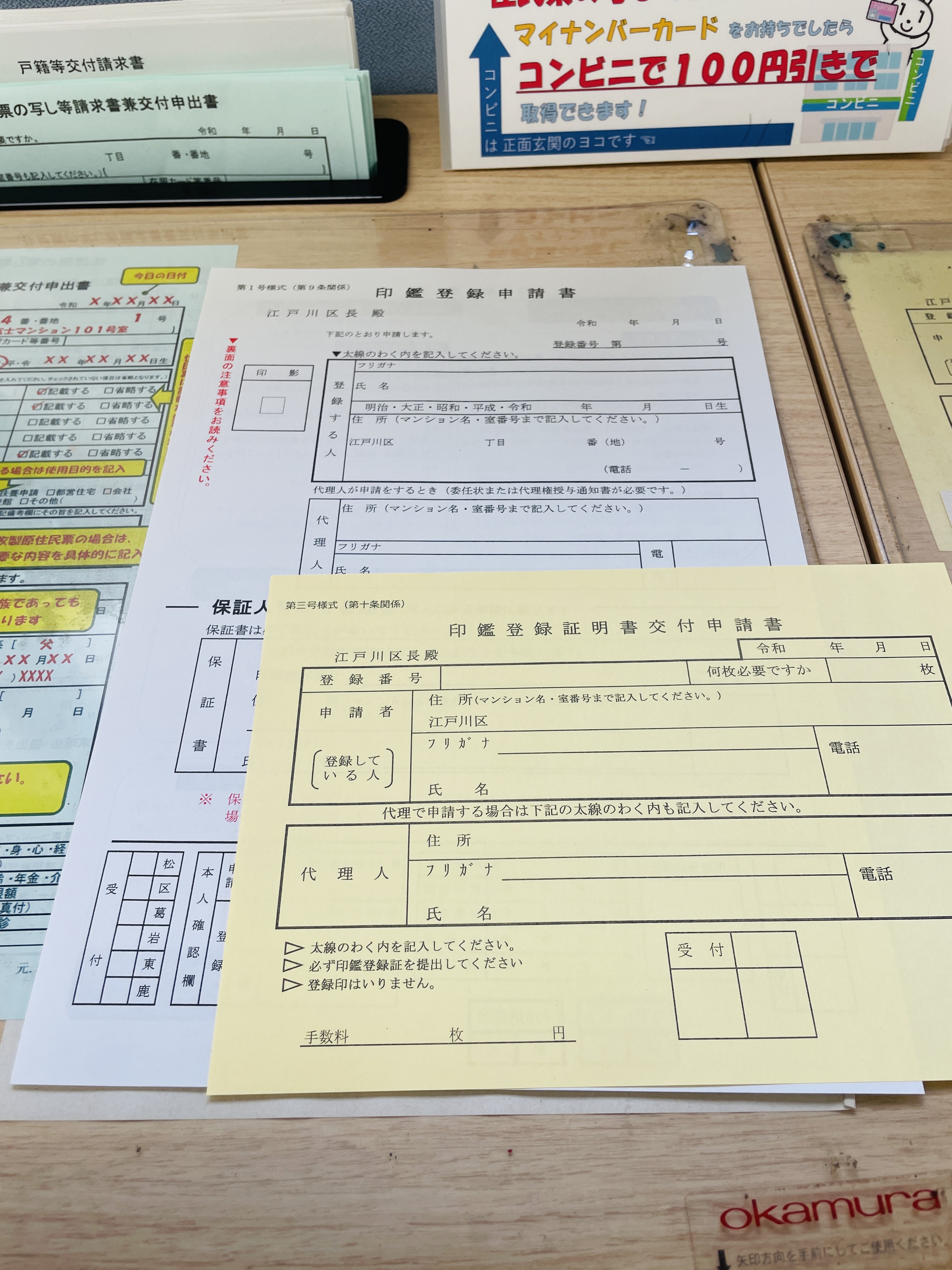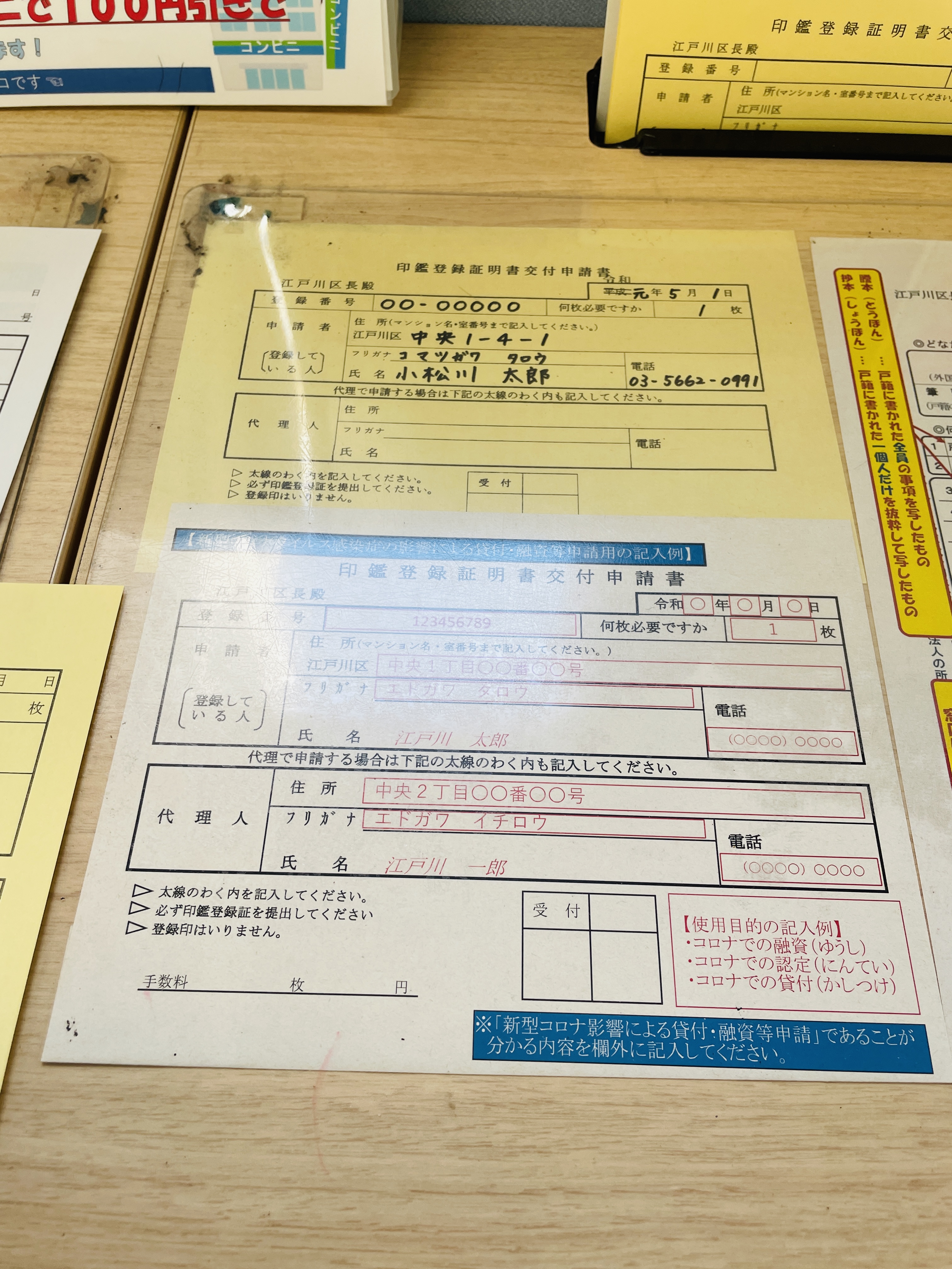 인감등록도 하고 인감등록증명서도 발급 받으려고 해서 서류를 두 장 적었다
