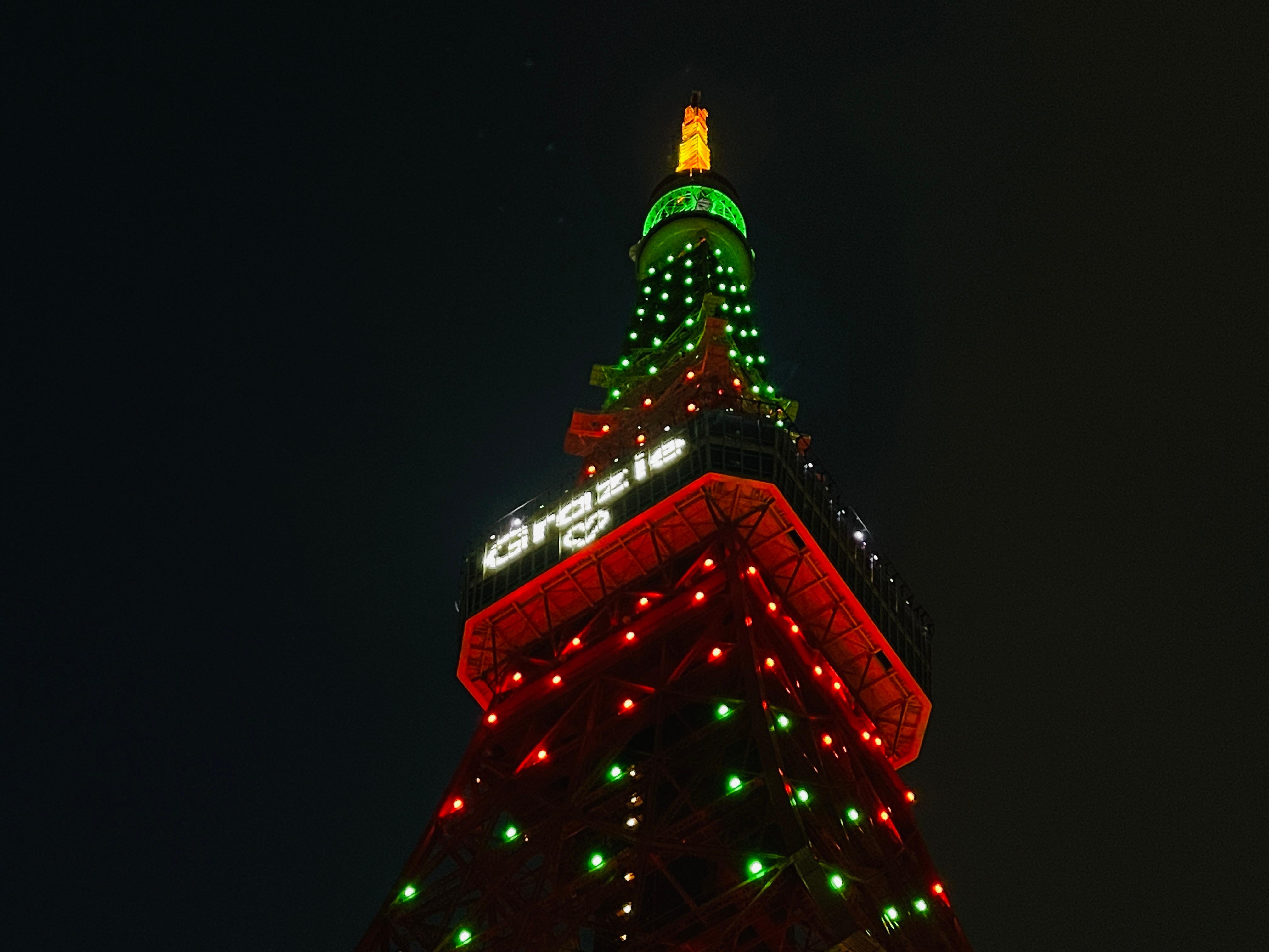이탈리아 수교를 기념한건지 이탈리아 국기 색깔로 조명이 밝혀져있고 Grazie라고 적혀있었다