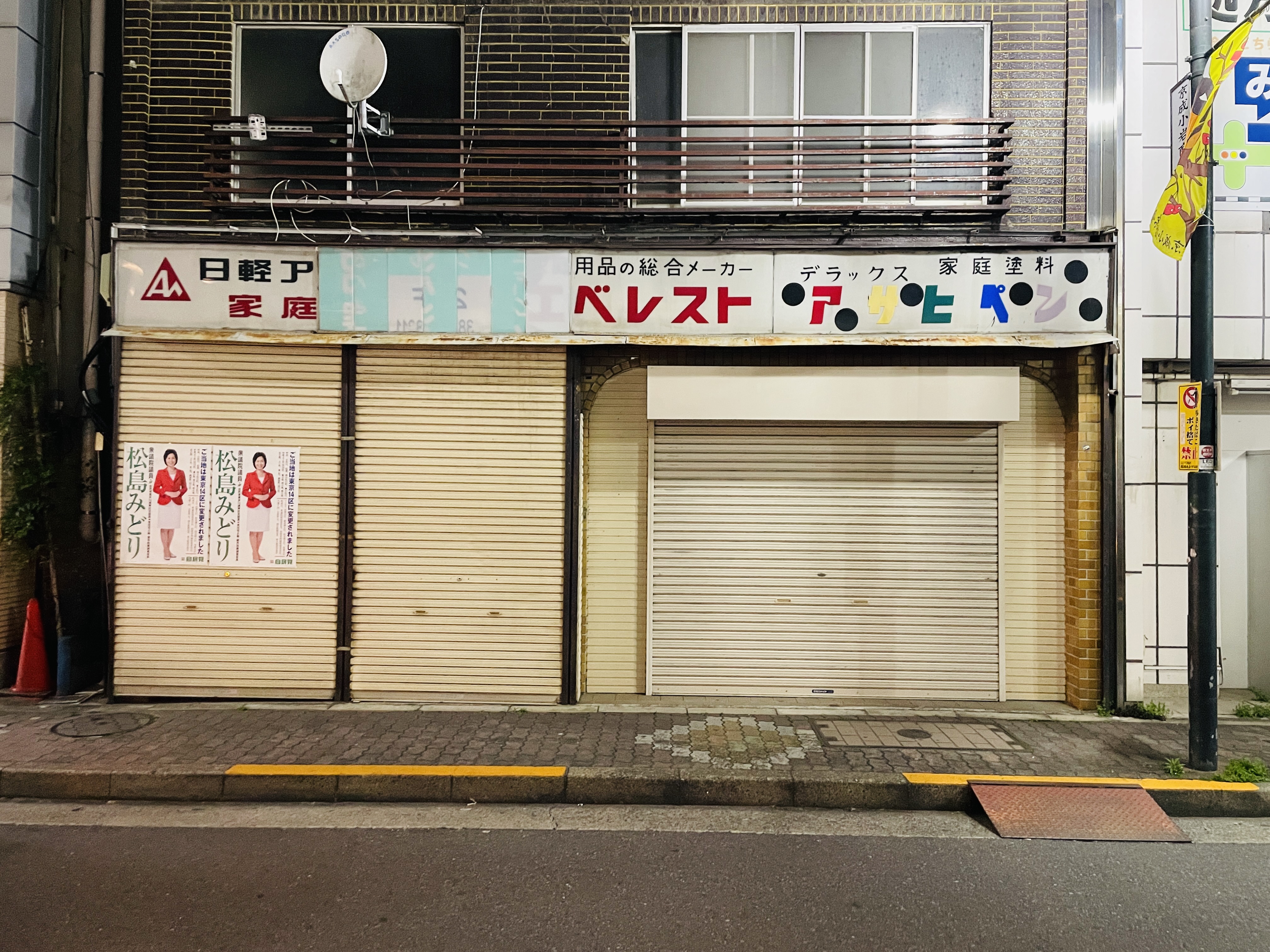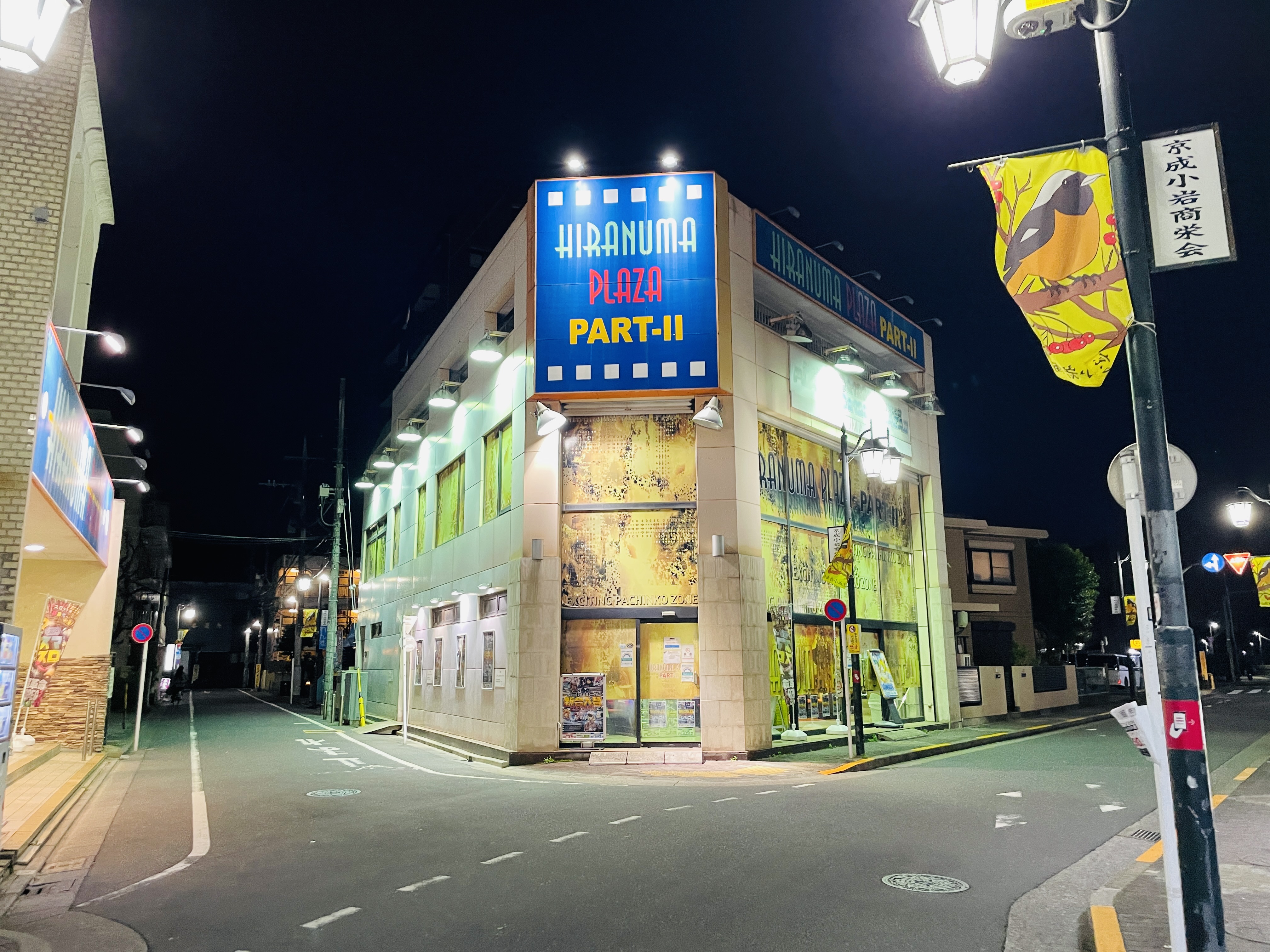 어두운 길에 홀로 반짝반짝 빛나는 파칭코 건물