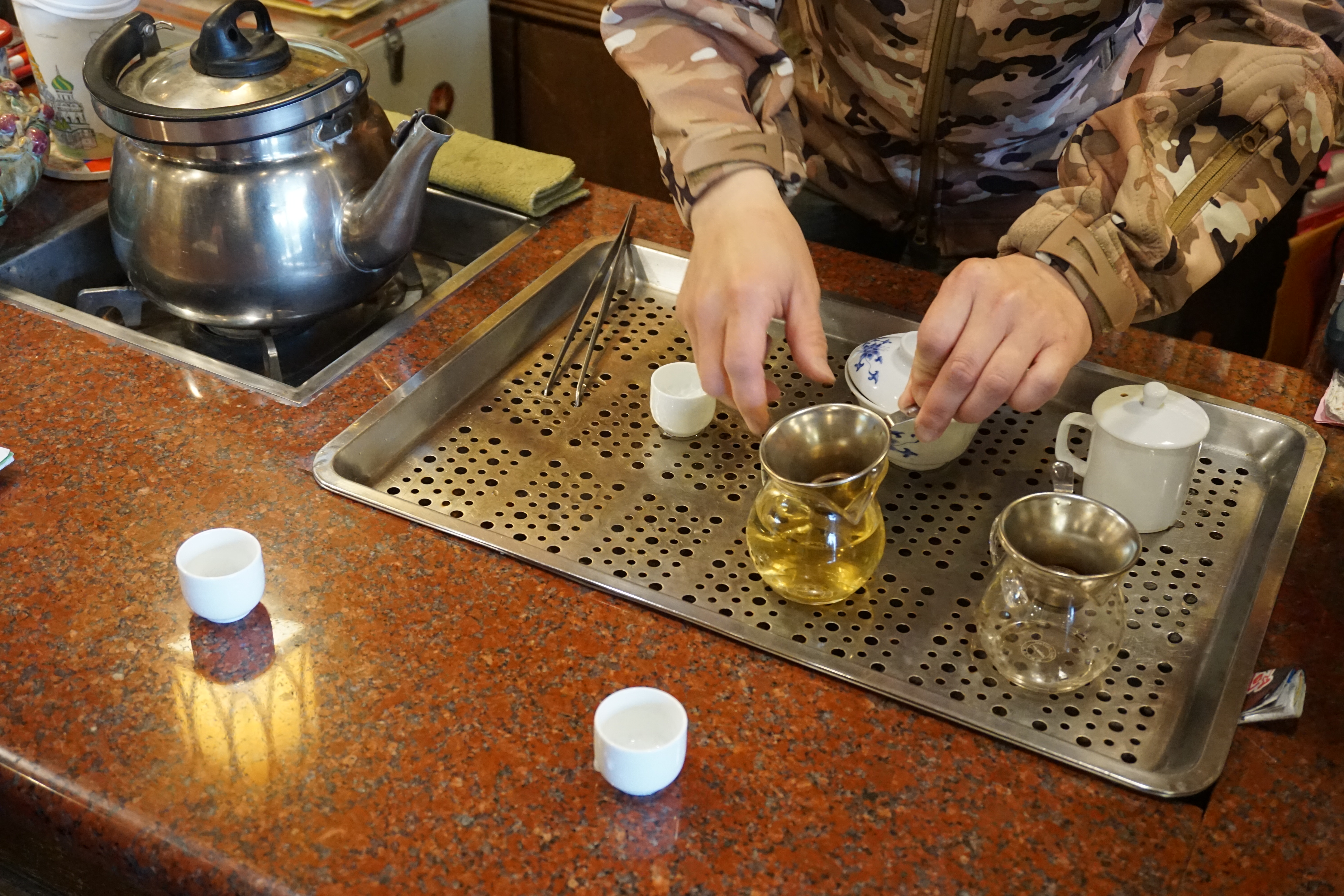 문 근처에서 파룬궁을 하고 계신다