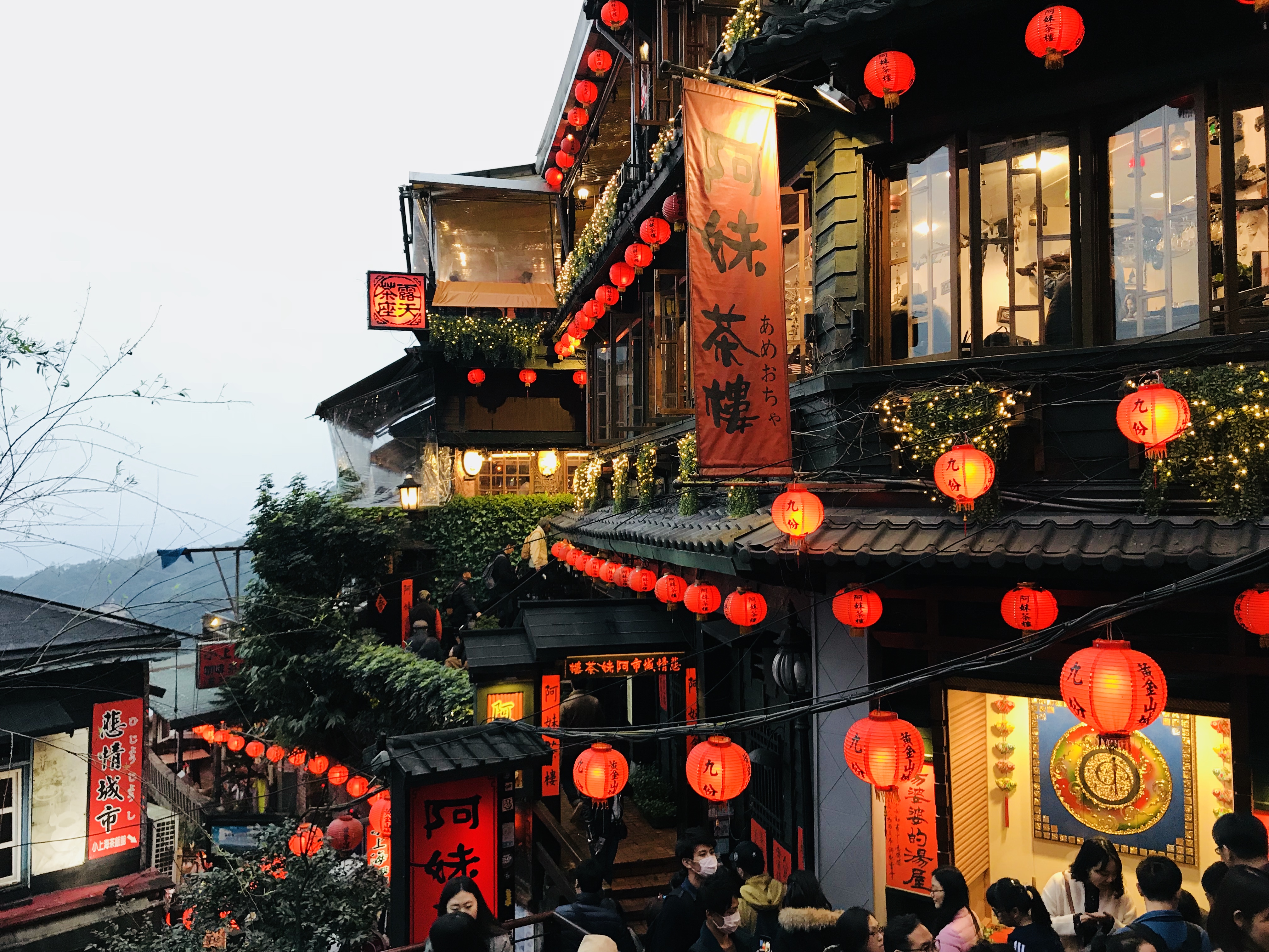 체크인카운터에 이렇게 등불이 대롱대롱 달려 있다