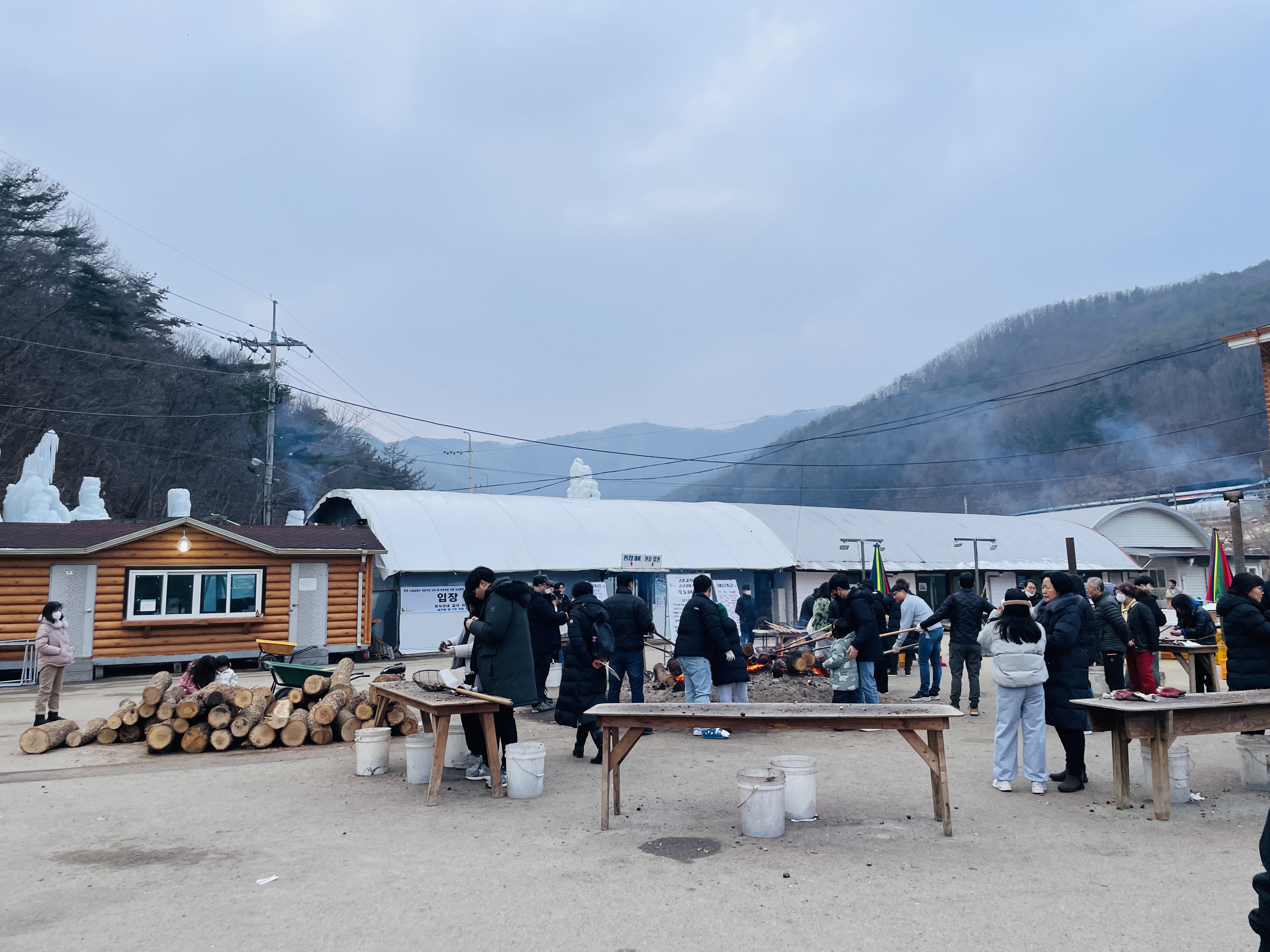 바깥은 추워서 이렇게 난로가 있는 실내에 잠시 꽁쳐있었다