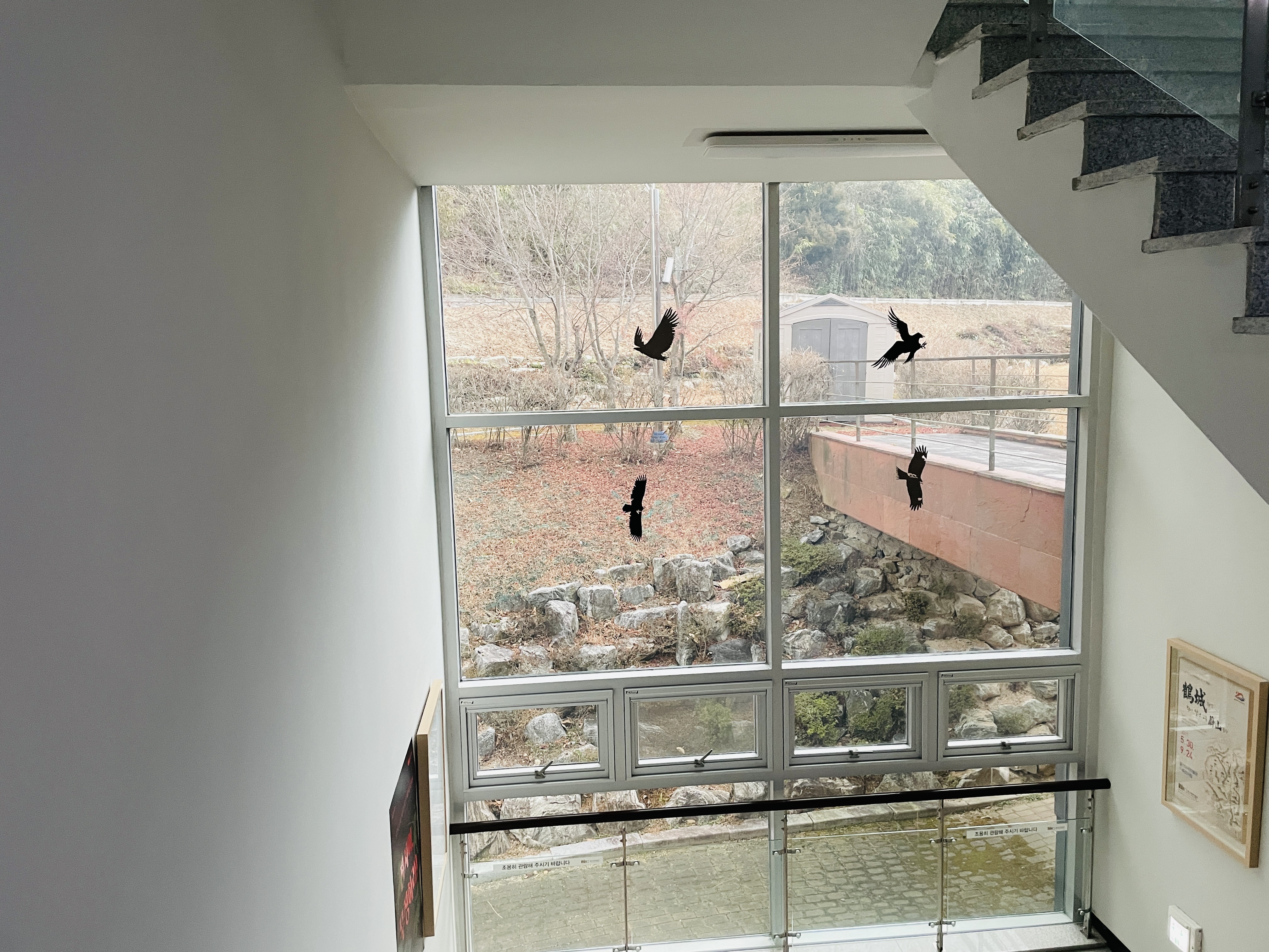 새가 부딪히지 않게 붙여놓은 맹금류 스티커