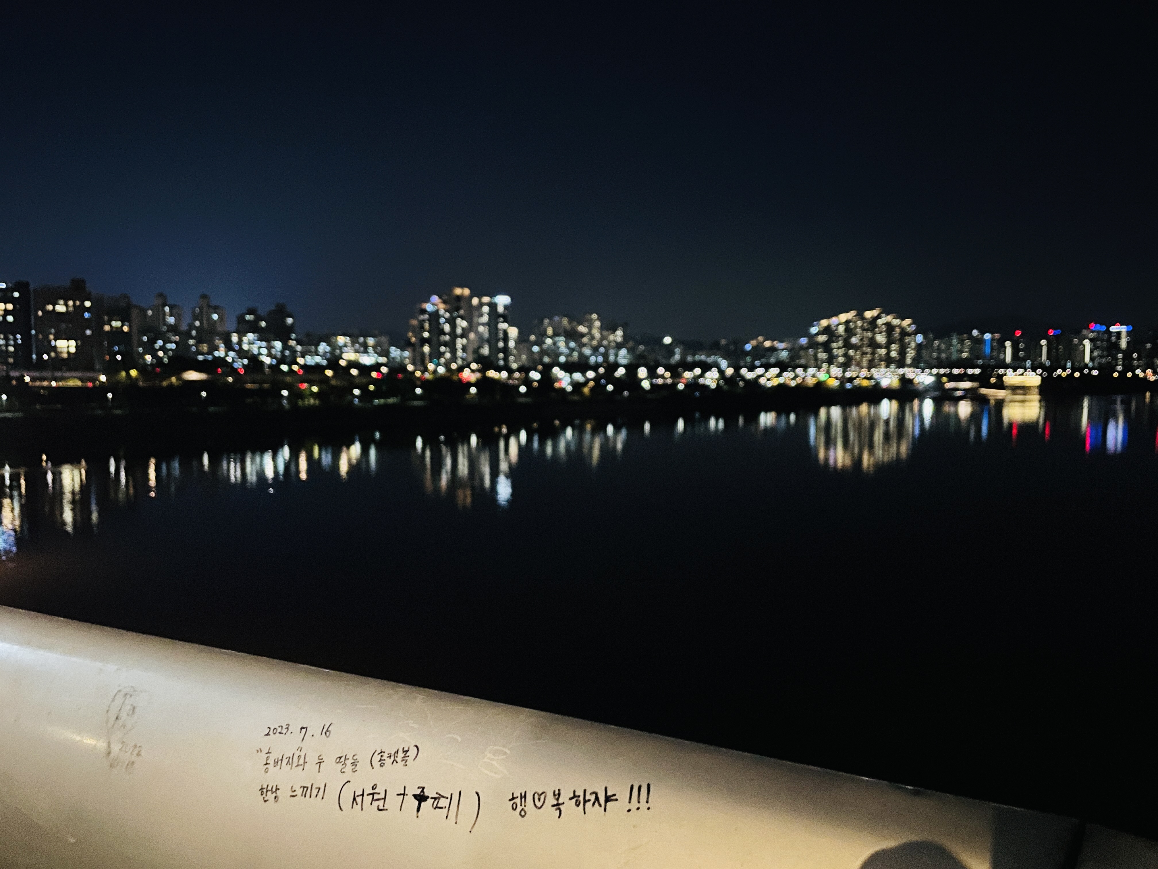 난간에 낙서가 적혀 있다