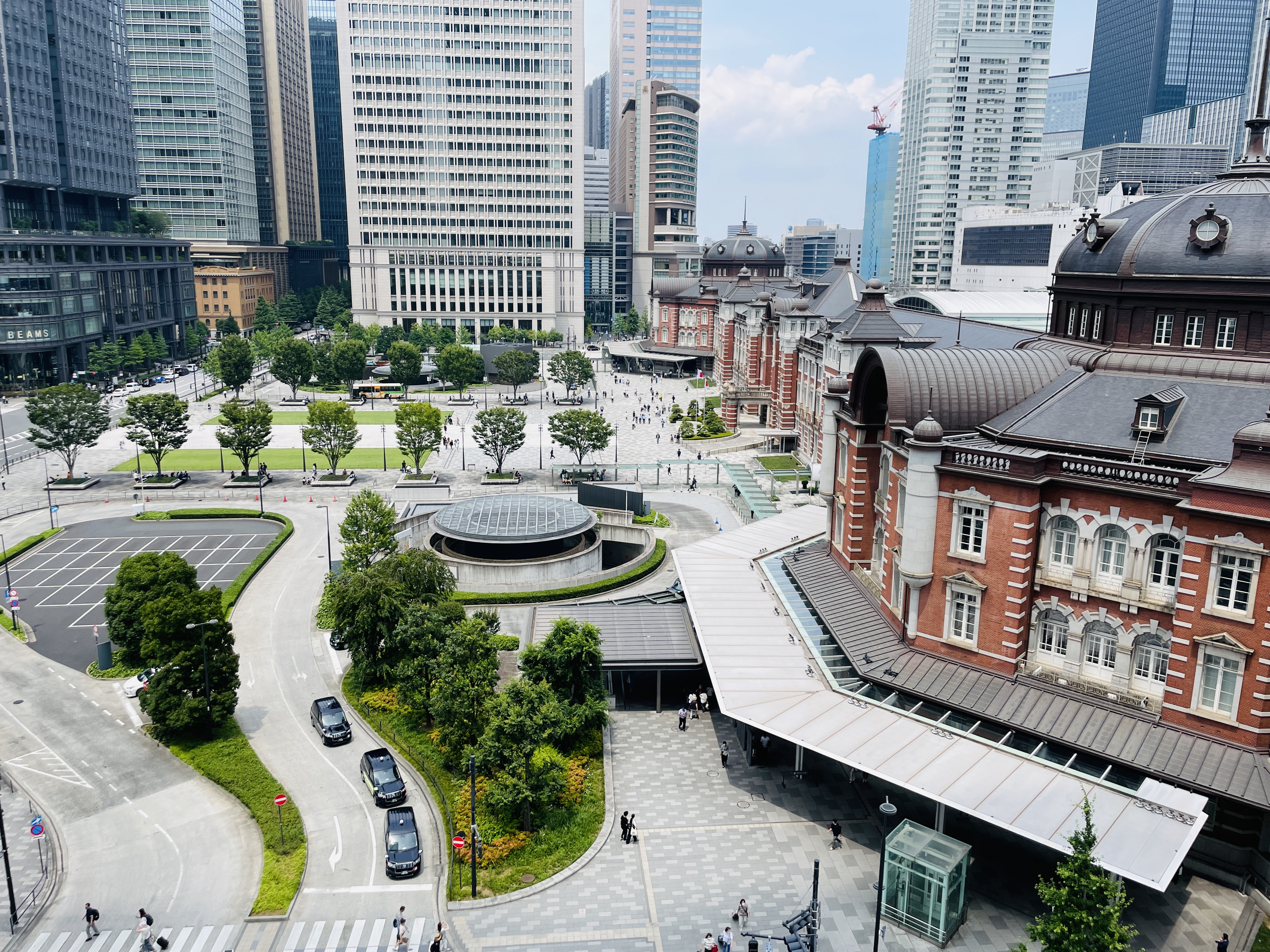 옥상에는 정원이 있어서 도쿄역을 내려다볼 수 있다