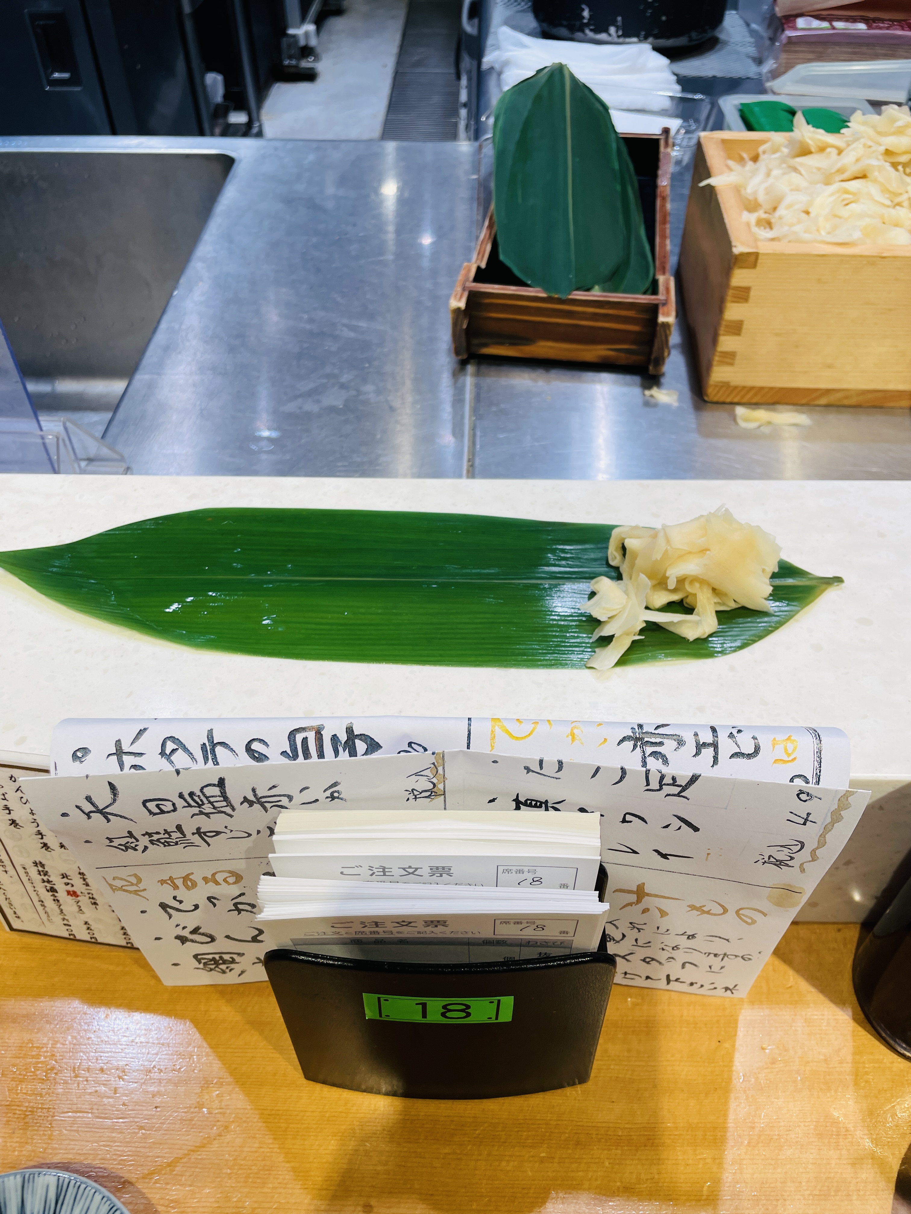 주문도 종이에 적어서 하는 서서 먹는 초밥집이다